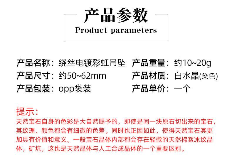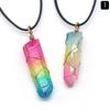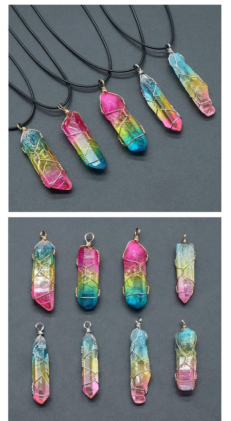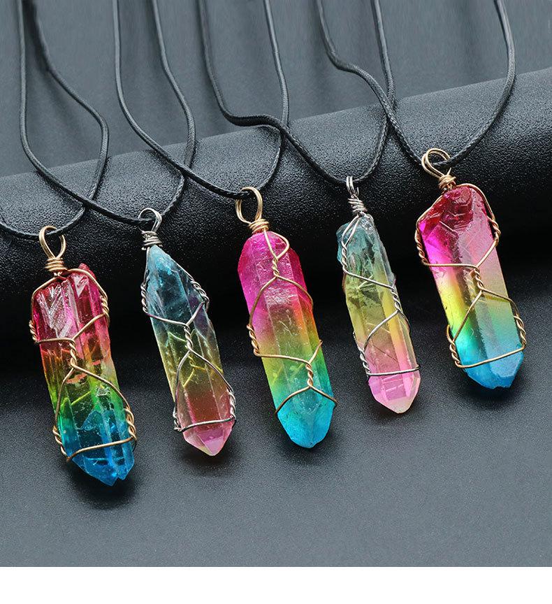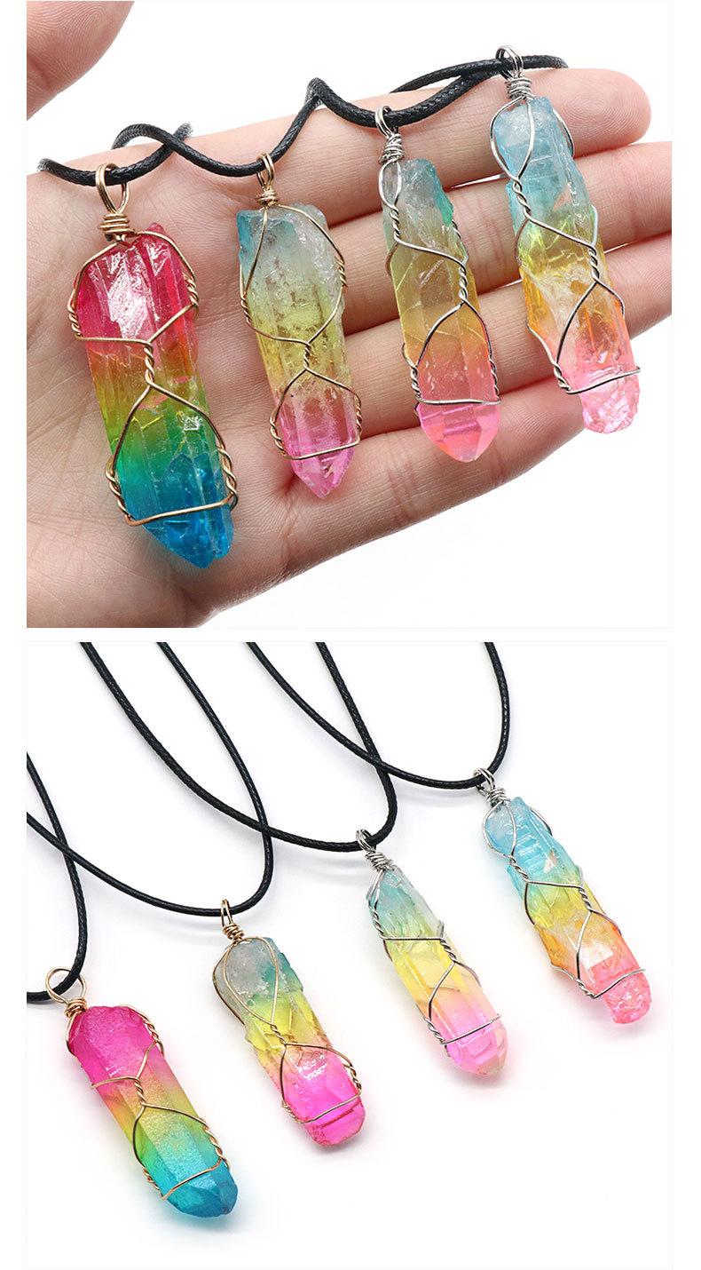 1535-Columna de Cristal de Piedra Bruta Natural Colgante Enrollado Columna de Cristal Arcoíris Electrochapado Colgante Colorido Cristal Irregular