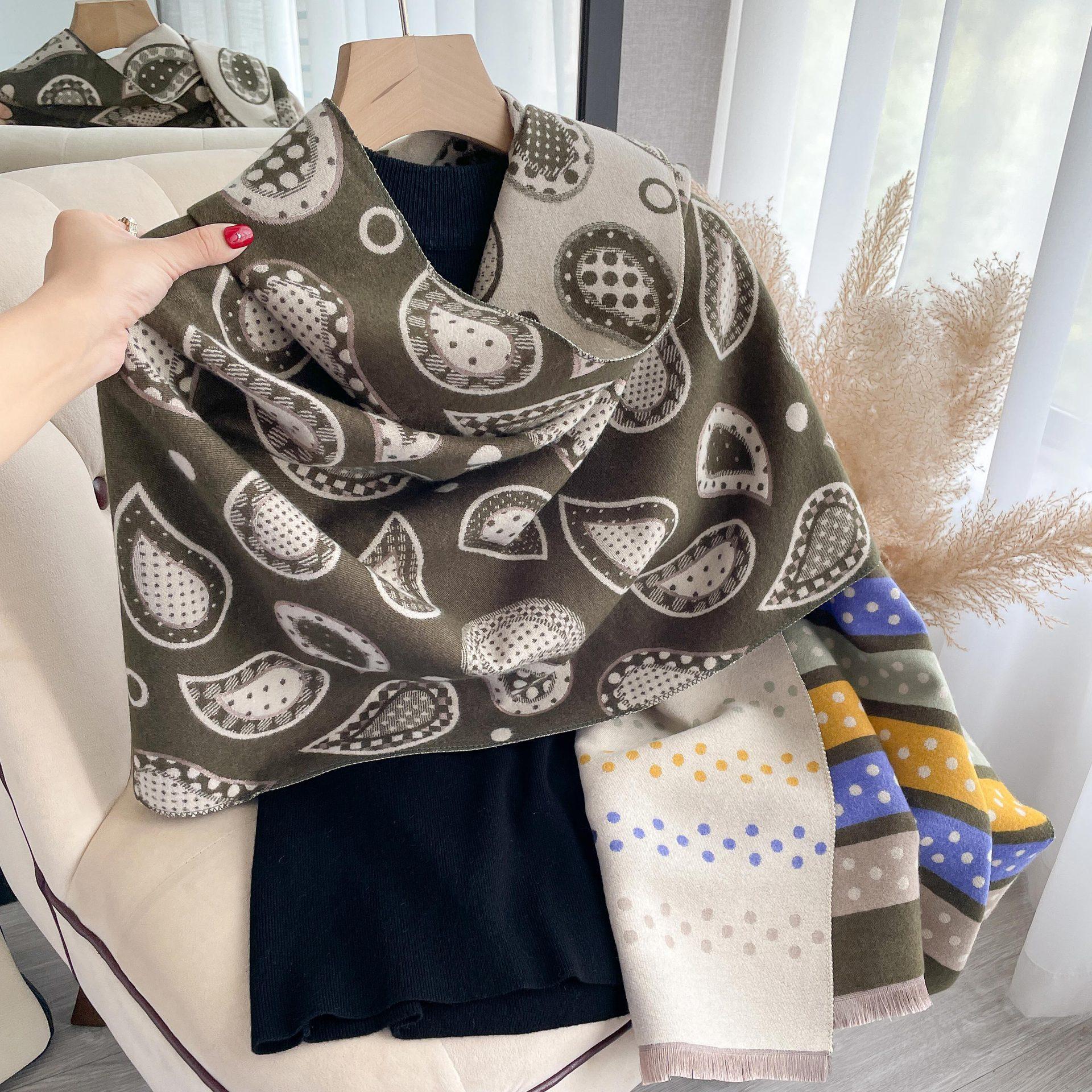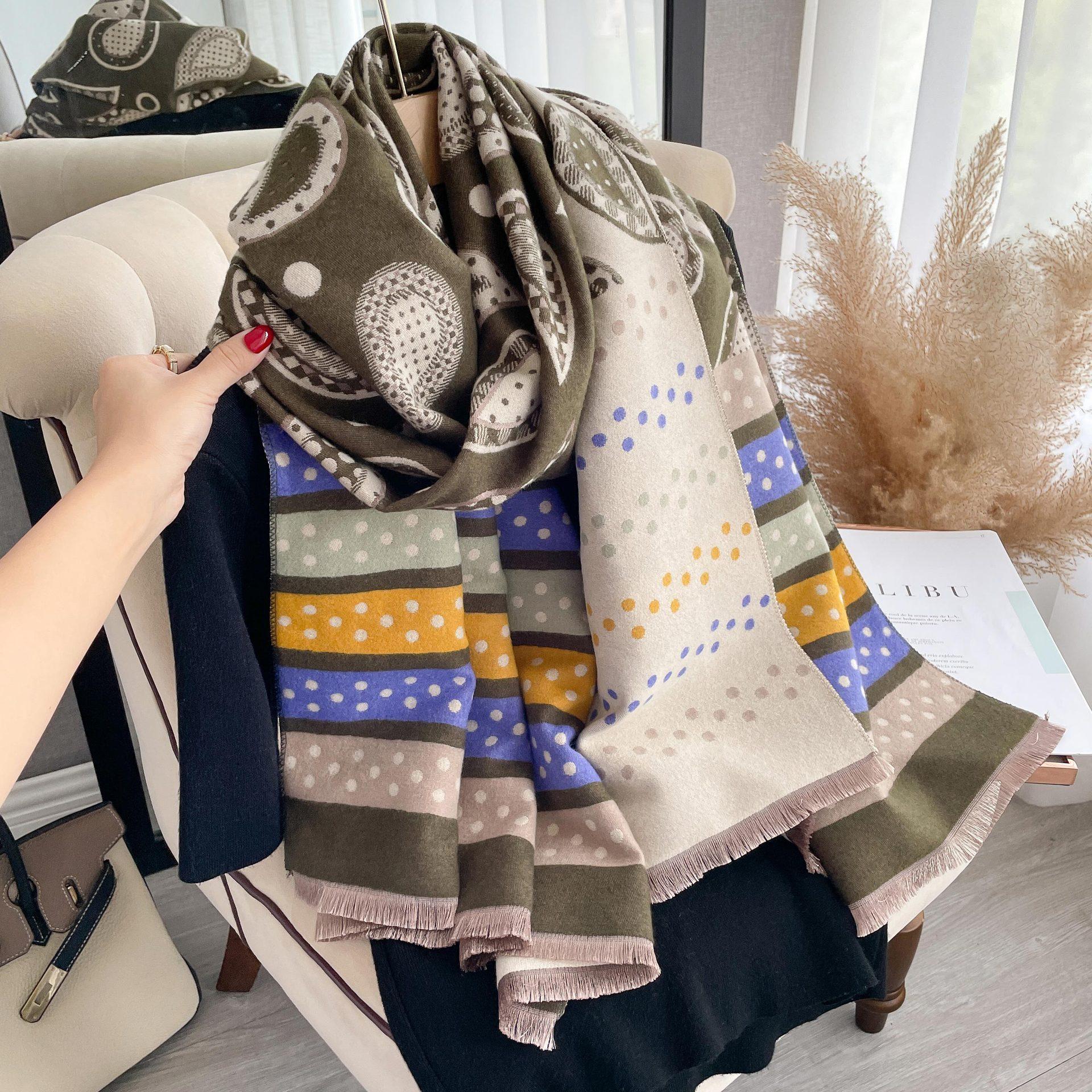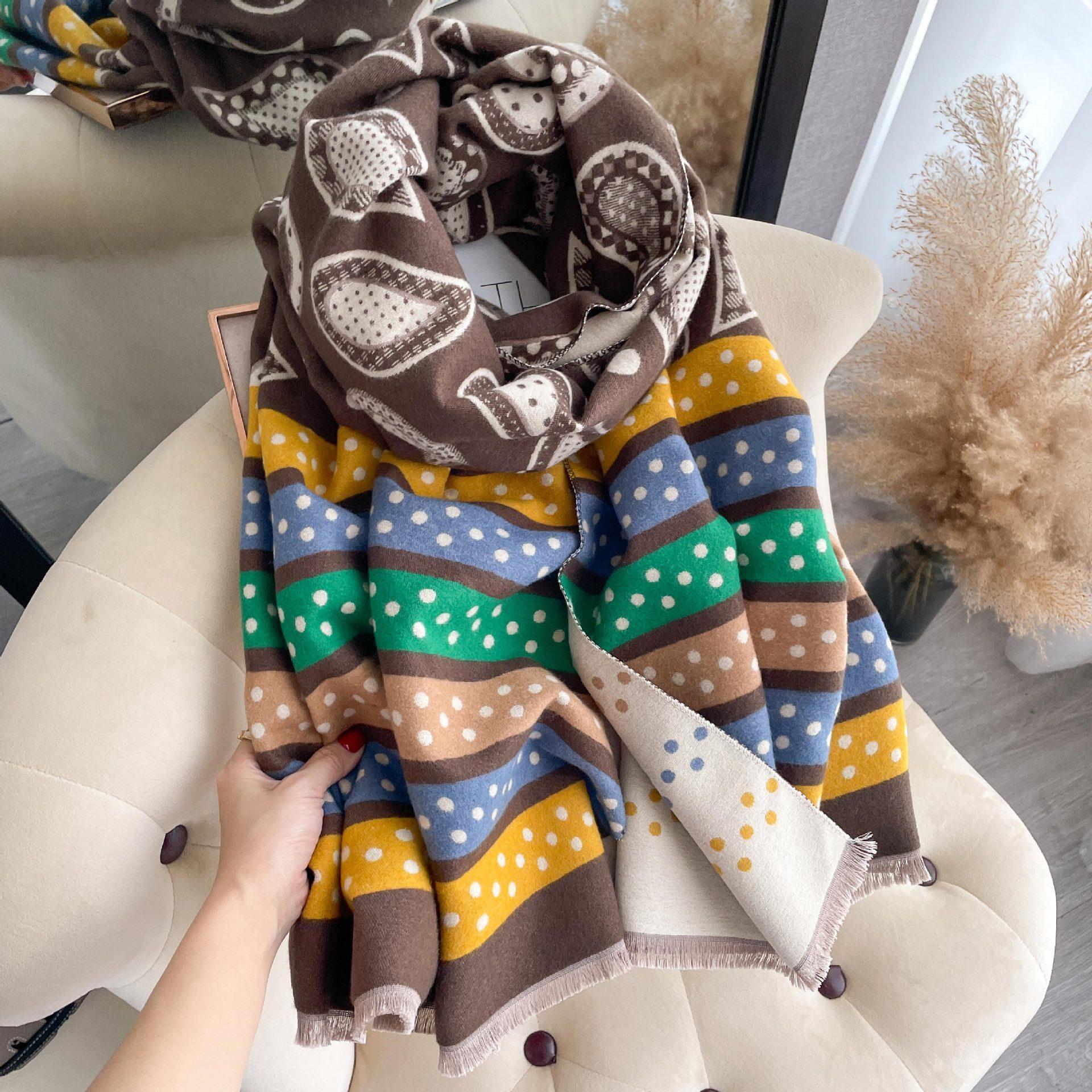 Bufanda de cachemir con estampado de flores de anacardo y lunares de colores para otoño e invierno, chal grueso y cálido de doble cara para mujer.