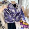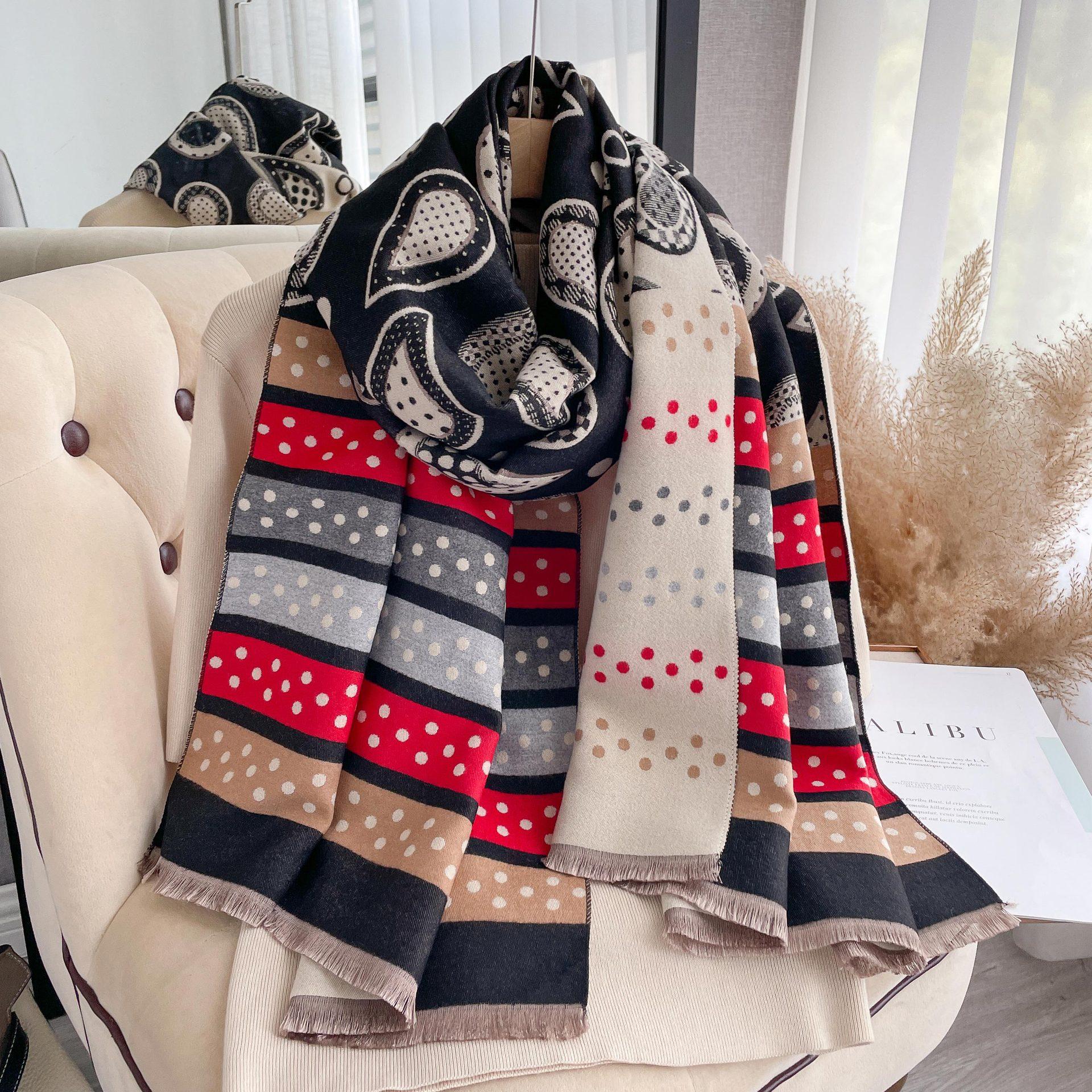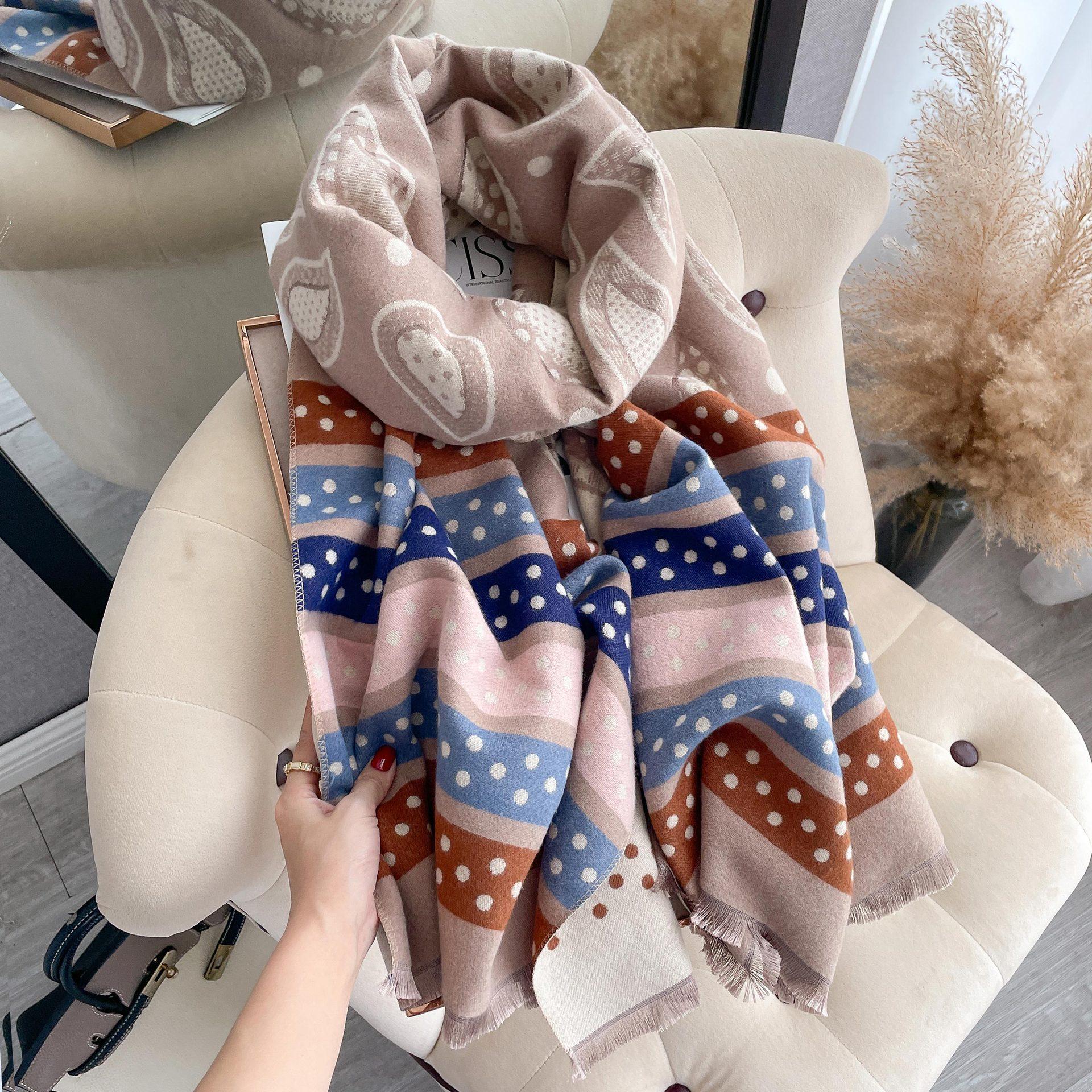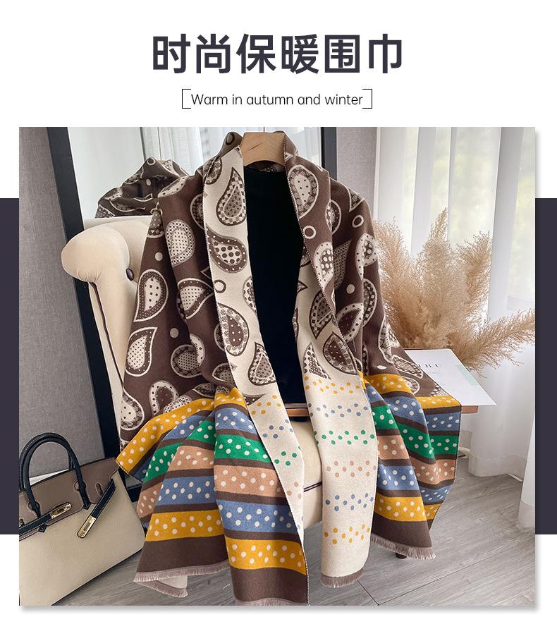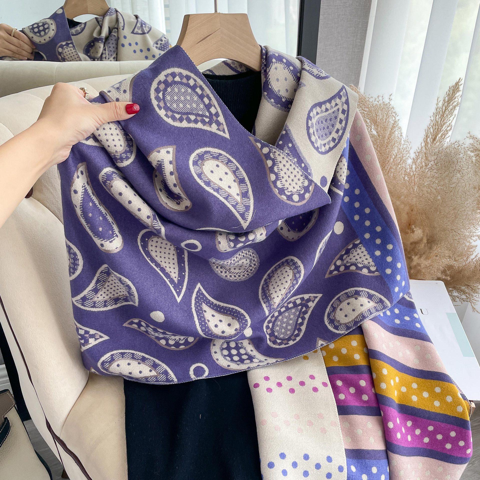 Bufanda de cachemir con estampado de flores de anacardo y lunares de colores para otoño e invierno, chal grueso y cálido de doble cara para mujer.