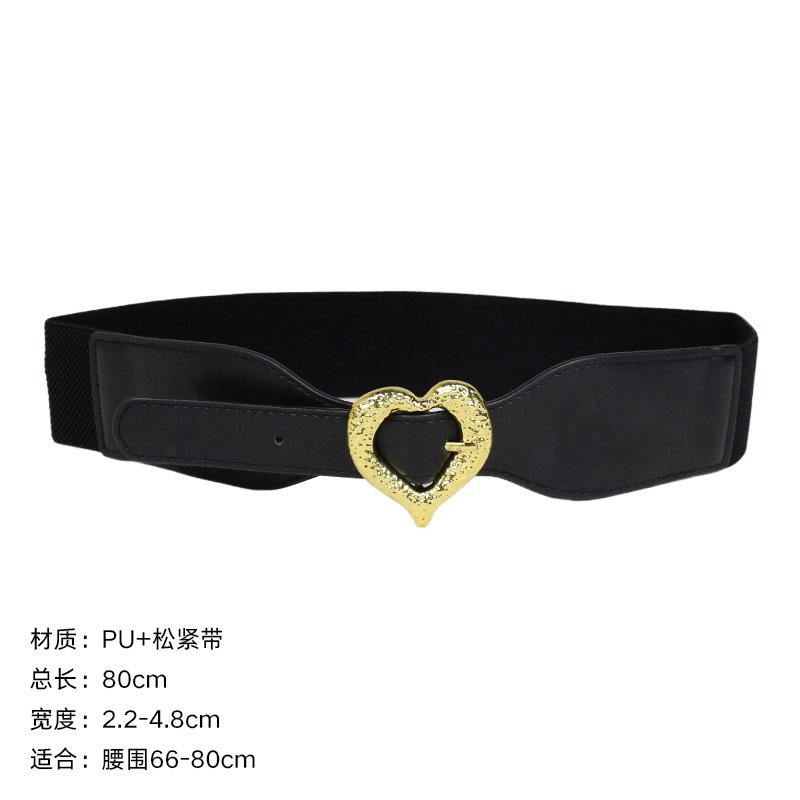 Compra Cinturón ancho para mujer, decorativo, a juego, con hebilla en forma de corazón, elástico negro, con cierre de cintura, cinturón exterior, combina con todo. al por mayor en Joom.pro