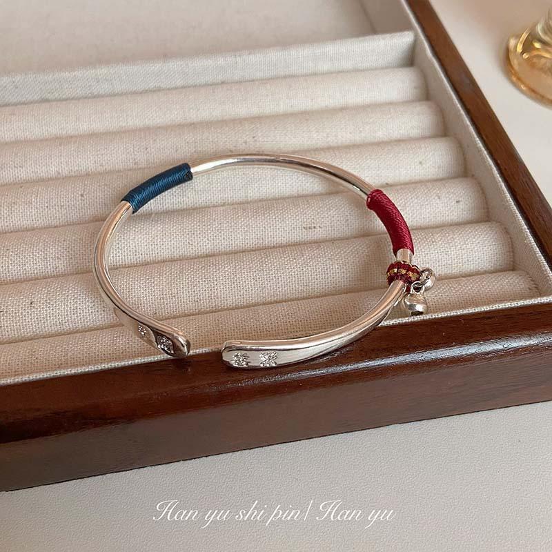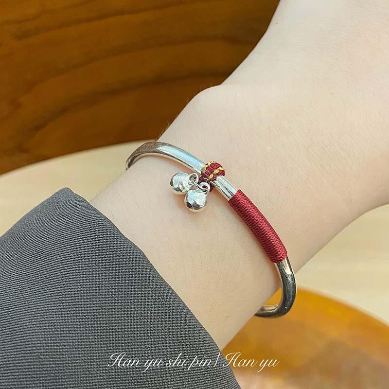 Pulsera tejida estilo chino de paz y alegría, moderna retro, pulsera sólida abierta, estilo antiguo, nueva pulsera de campana china