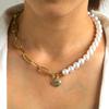 Collar de perlas con forma de corazón para mujer, moda transfronteriza entre Europa y Estados Unidos, tendencia de costura creativa, cadena de cuello corto al por mayor