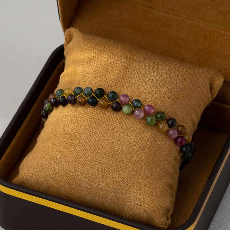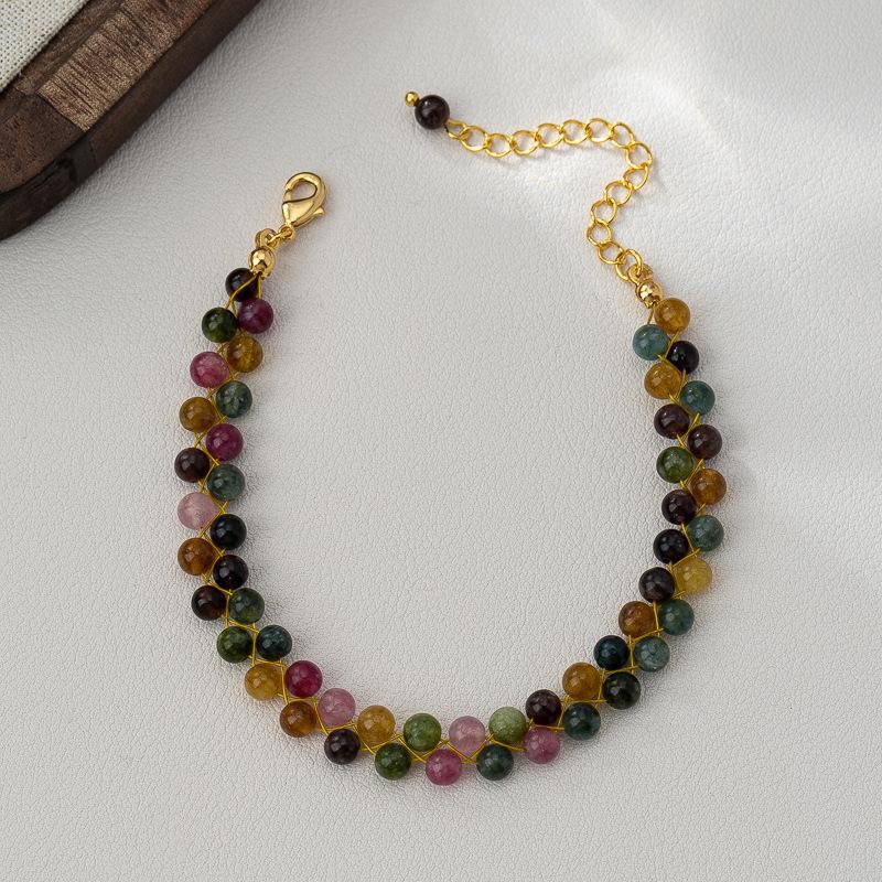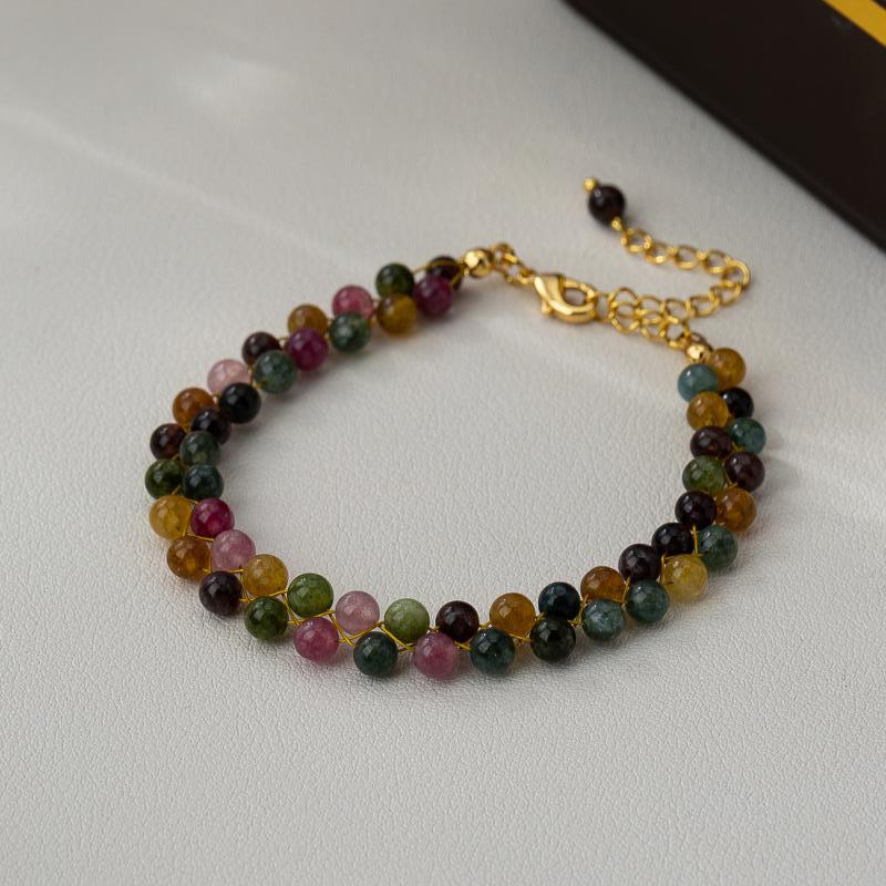 Pulsera de Cuentas Tejida a Mano de Turmalina Natural Pulsera Artística Vintage Versátil Elegante Nicho Color Caramelo Joyería de Mano