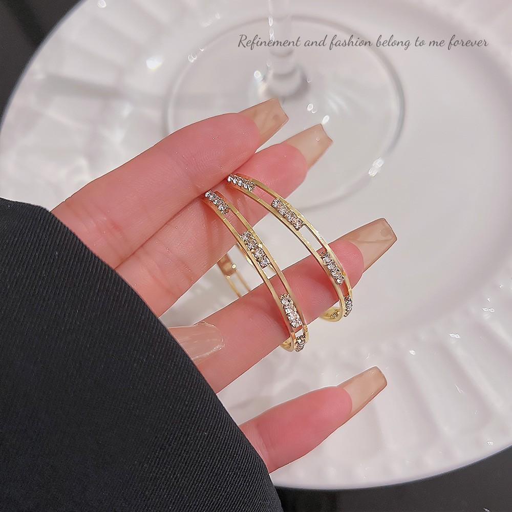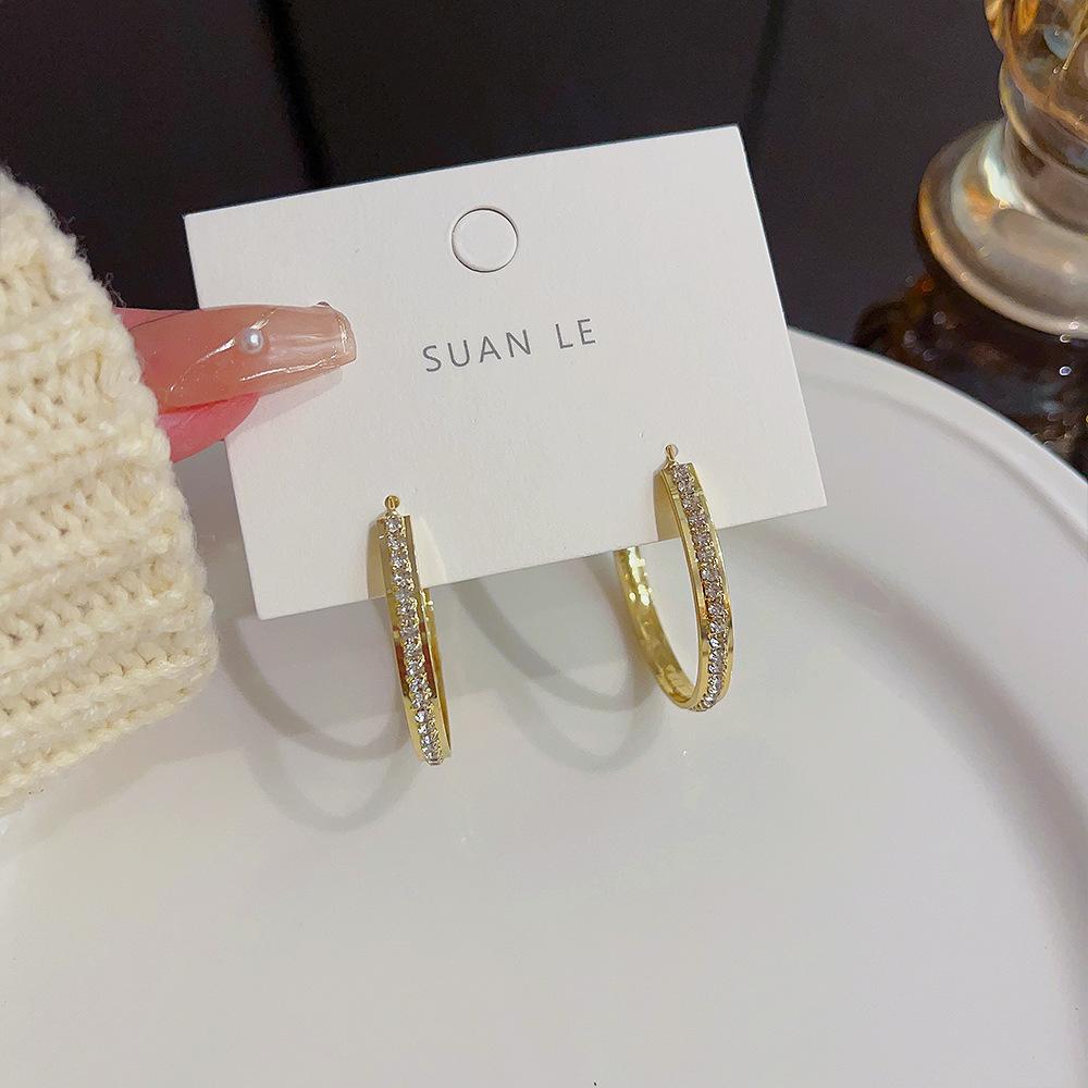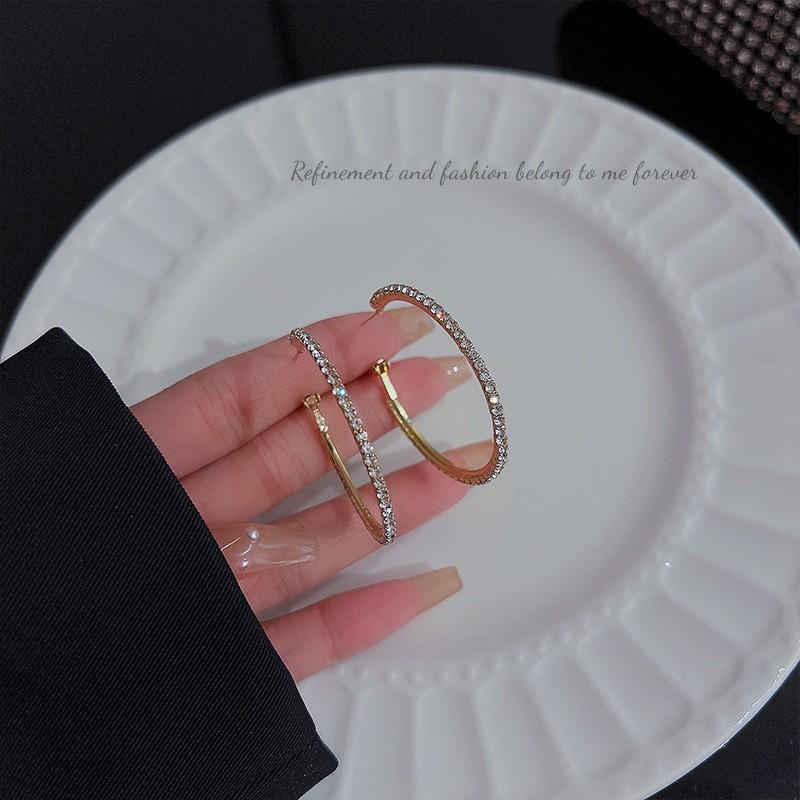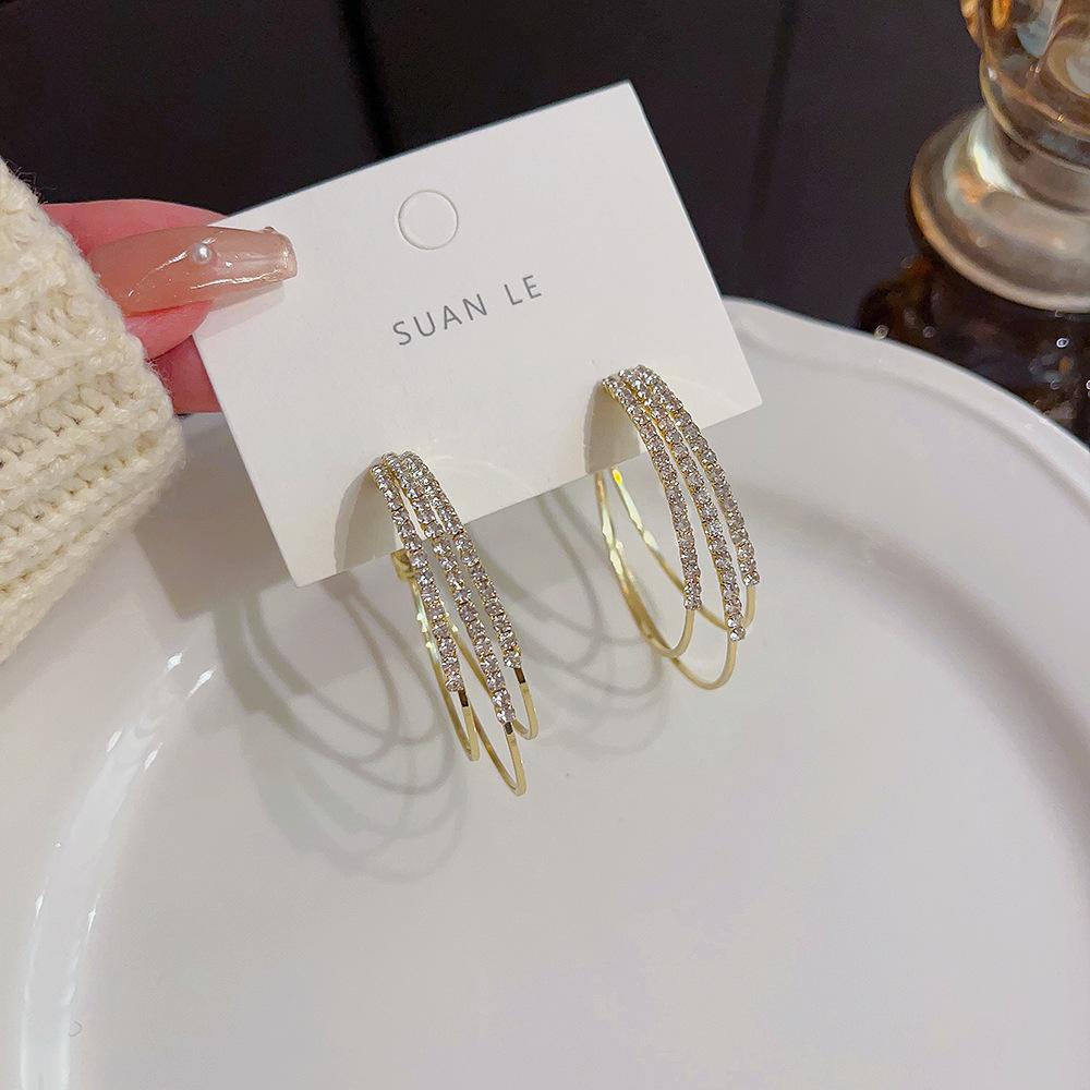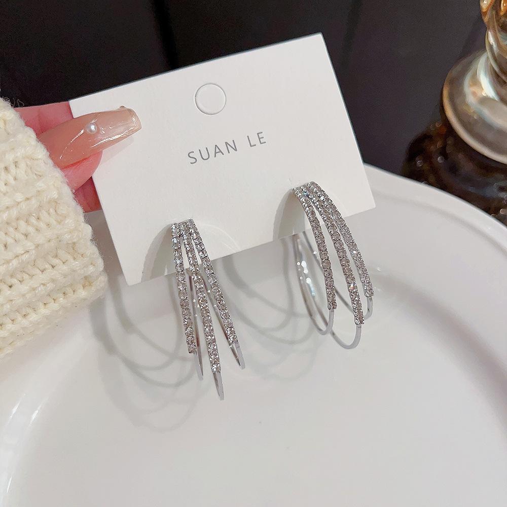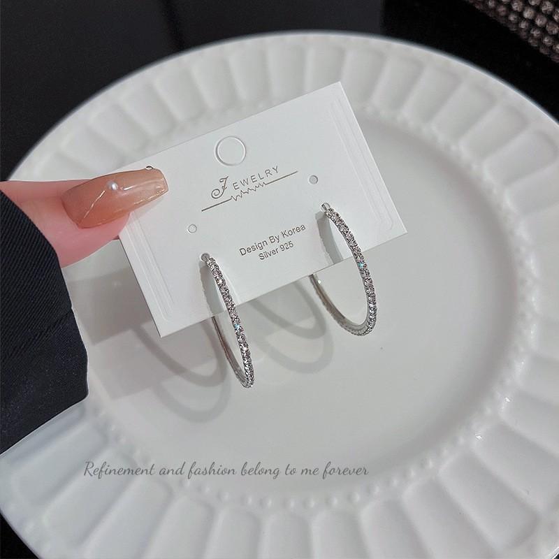 Pendientes de aro con diamantes de imitación de diseño japonés y coreano con aguja de plata S925 para mujer, diseño simple, pendientes de viento frío al por mayor