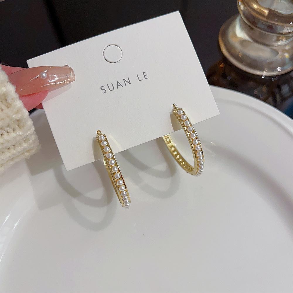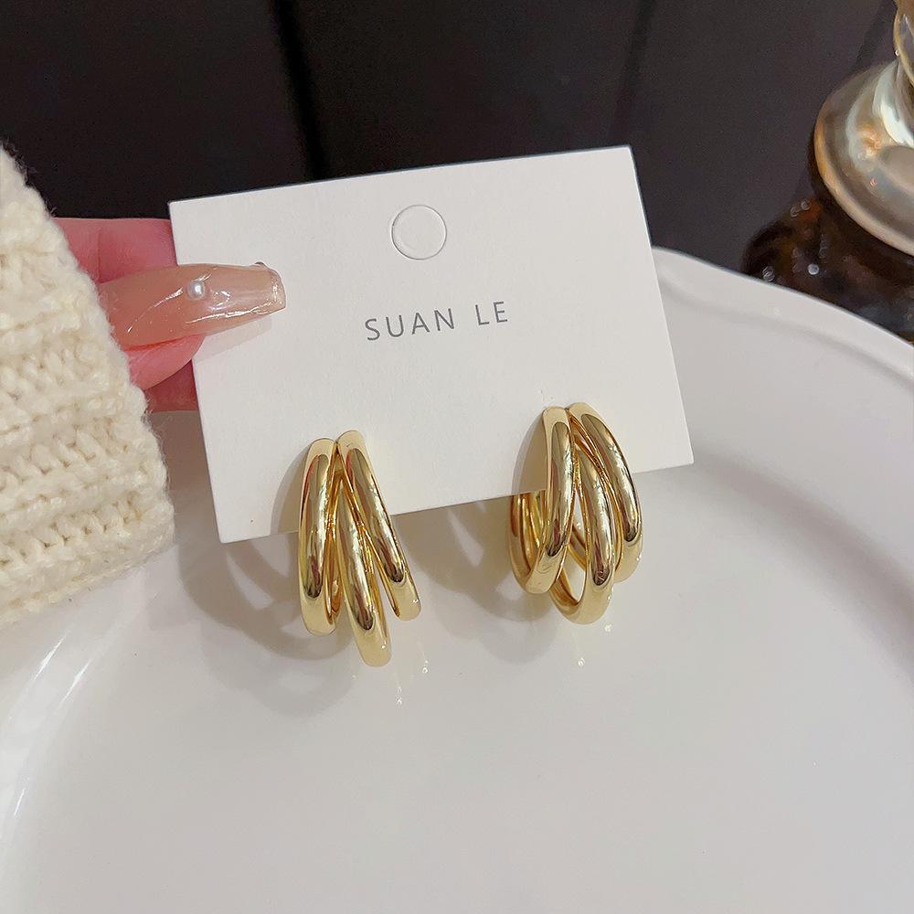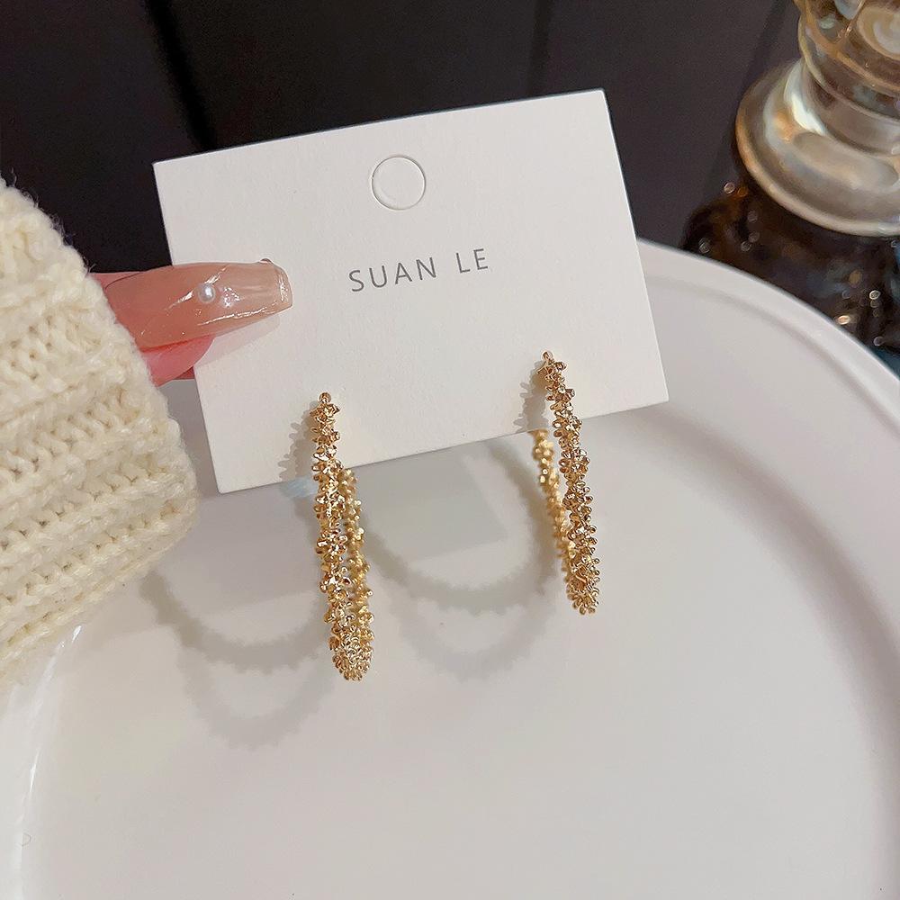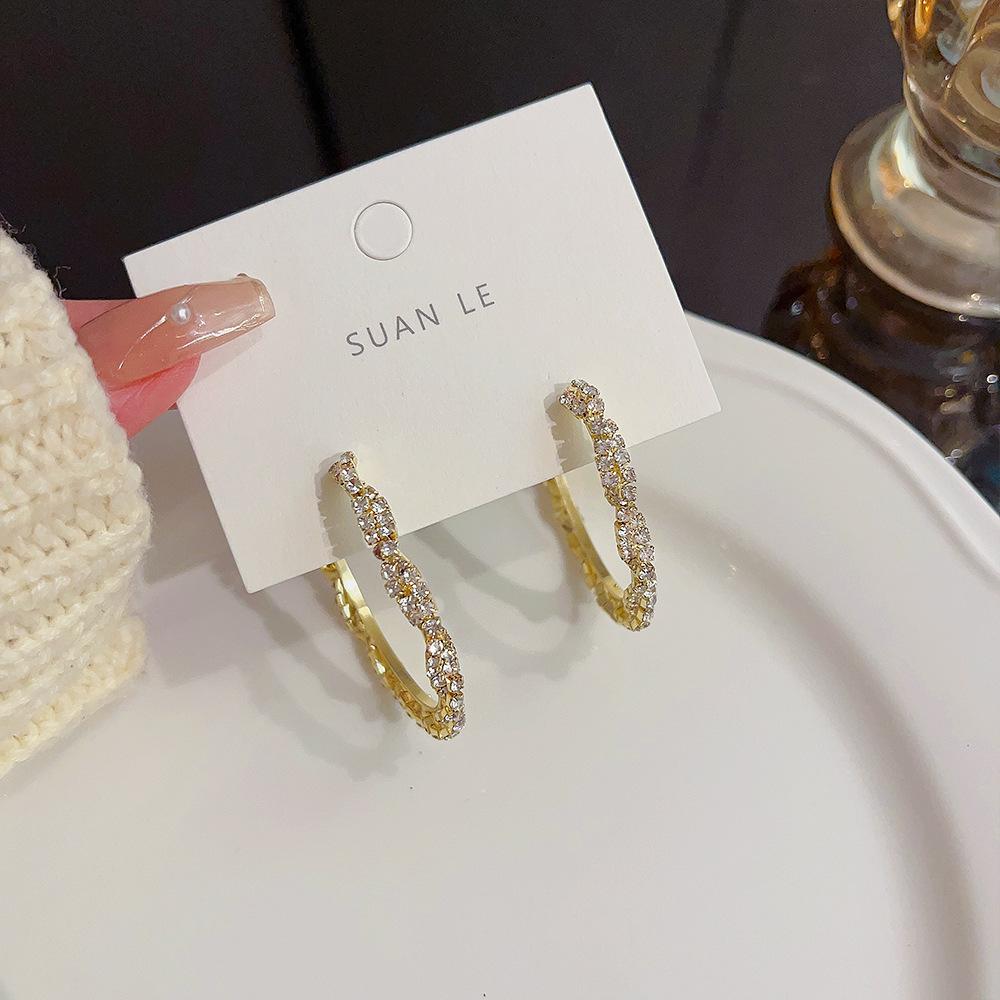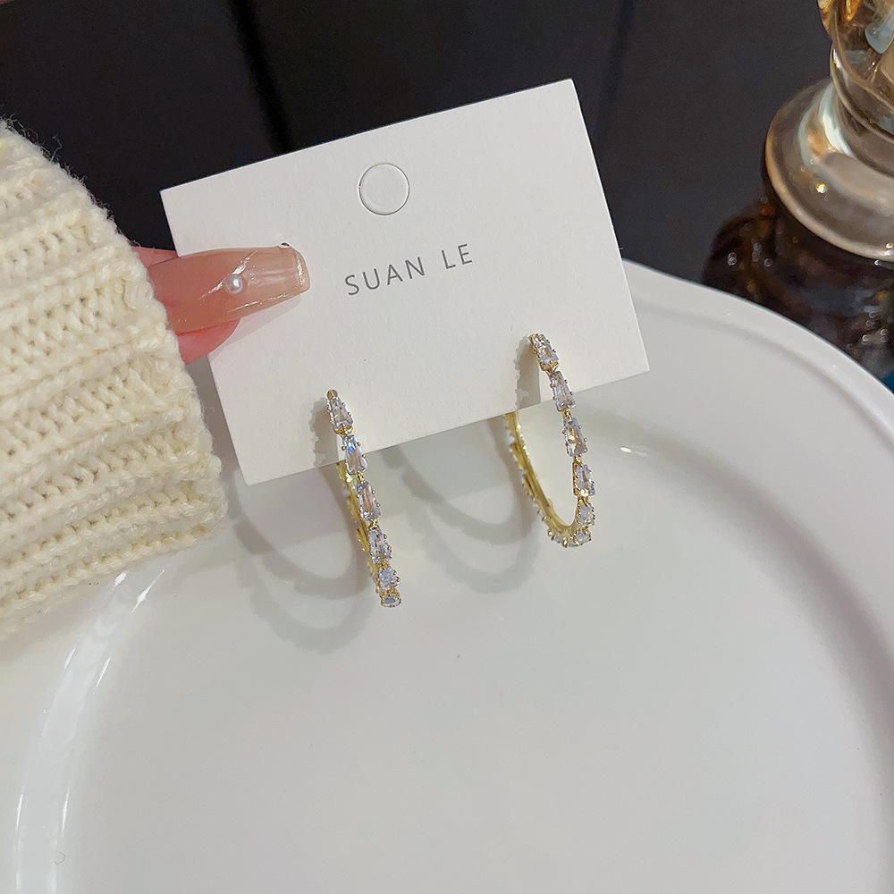 Pendientes de aro con diamantes de imitación de diseño japonés y coreano con aguja de plata S925 para mujer, diseño simple, pendientes de viento frío al por mayor