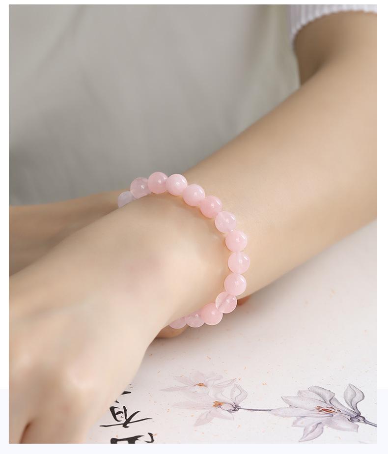 Pulsera de Cristal Rosa Natural Pulsera para Regalo de Novia Cristal Rosa Cuentas Redondas Joyería para Estudiantes Venta al por Mayor de Fábrica