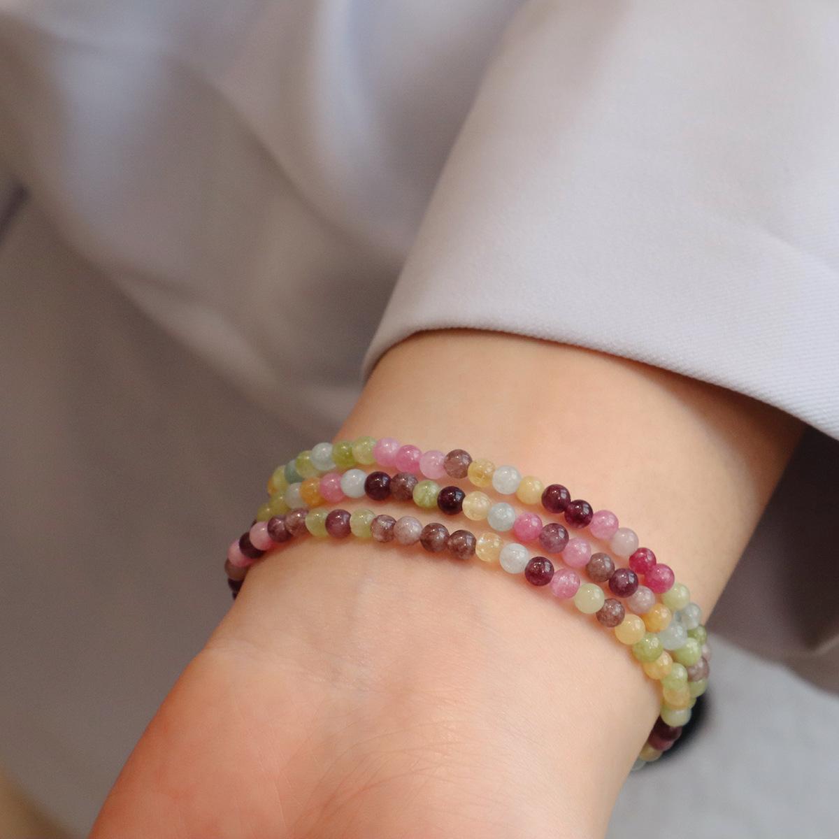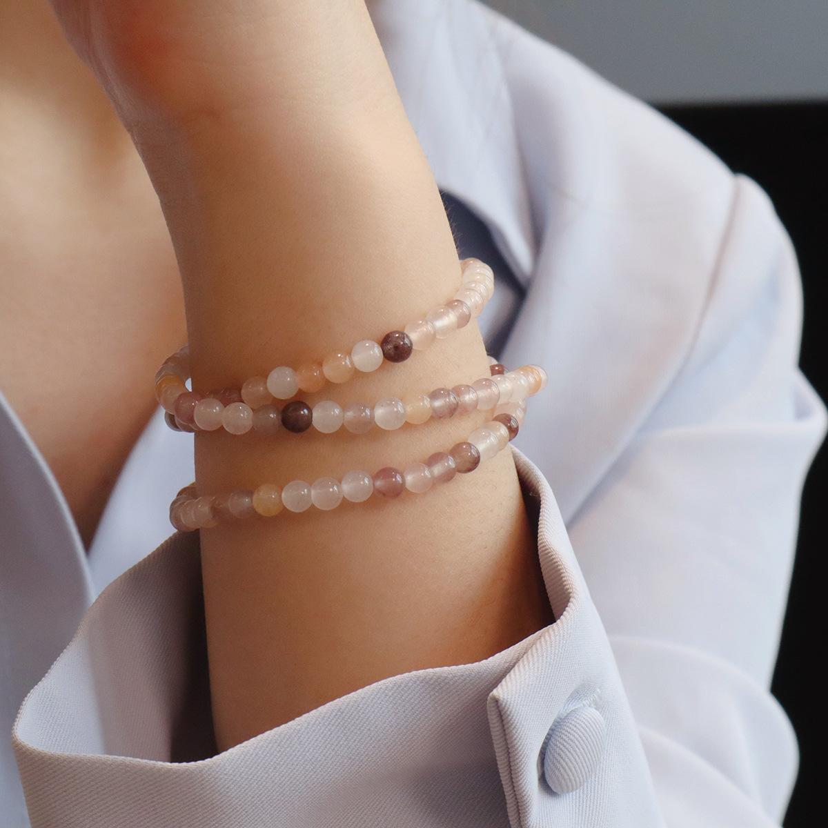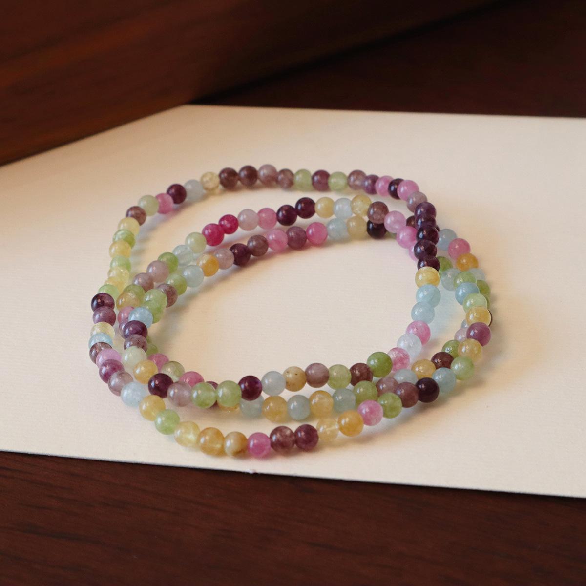 4MM natural floating flower agate three ring bracelet, 4.5MM Natural Violet Crystal Triple Ring Bracelet, 4.5M...