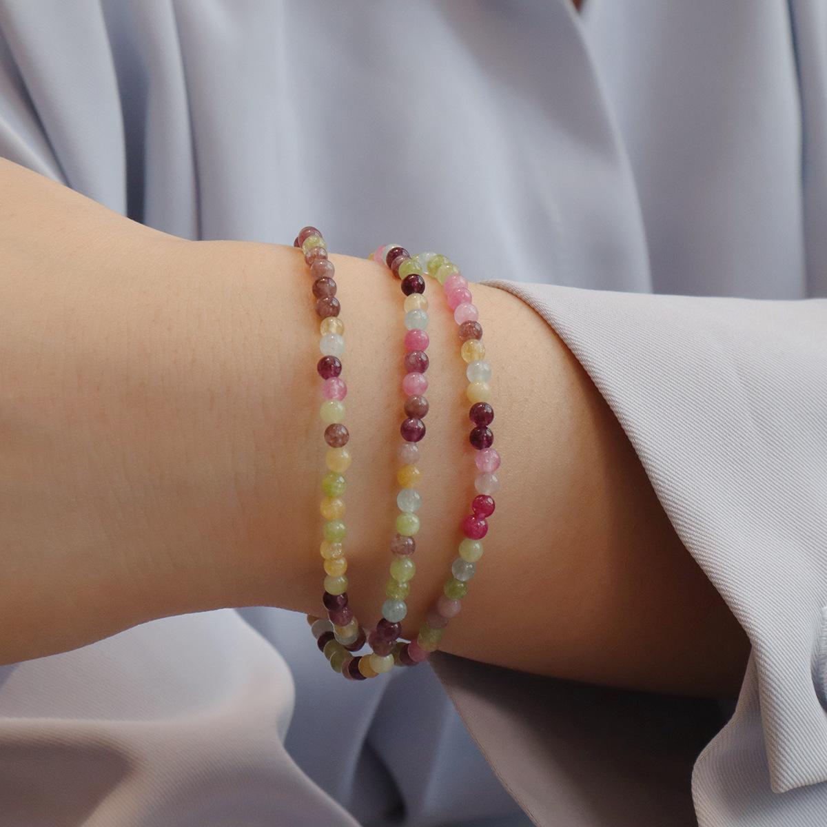 Pulsera de Cristal Natural Pulsera de Cuentas Colorida Joyería para Mujer Pulsera de Cuentas Simple Apilada Ágata Violeta de Venta Caliente