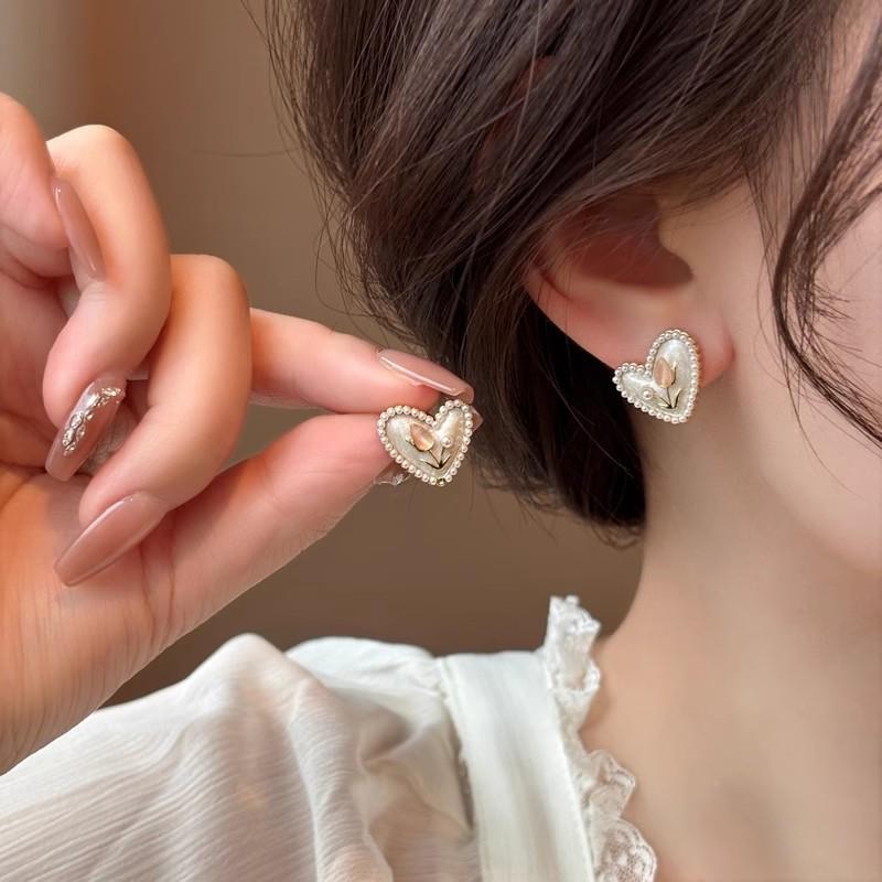 Pendientes de plata con forma de gota de aceite y amor de Corea del Sur, ligeros, de lujo, nuevos pendientes retro de alta gama para mujer, venta al por mayor