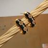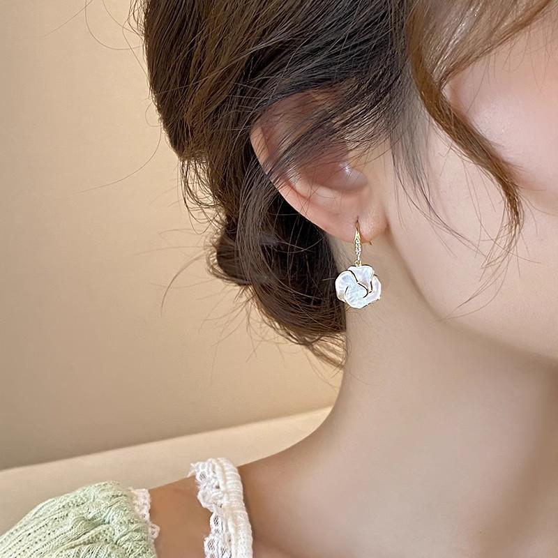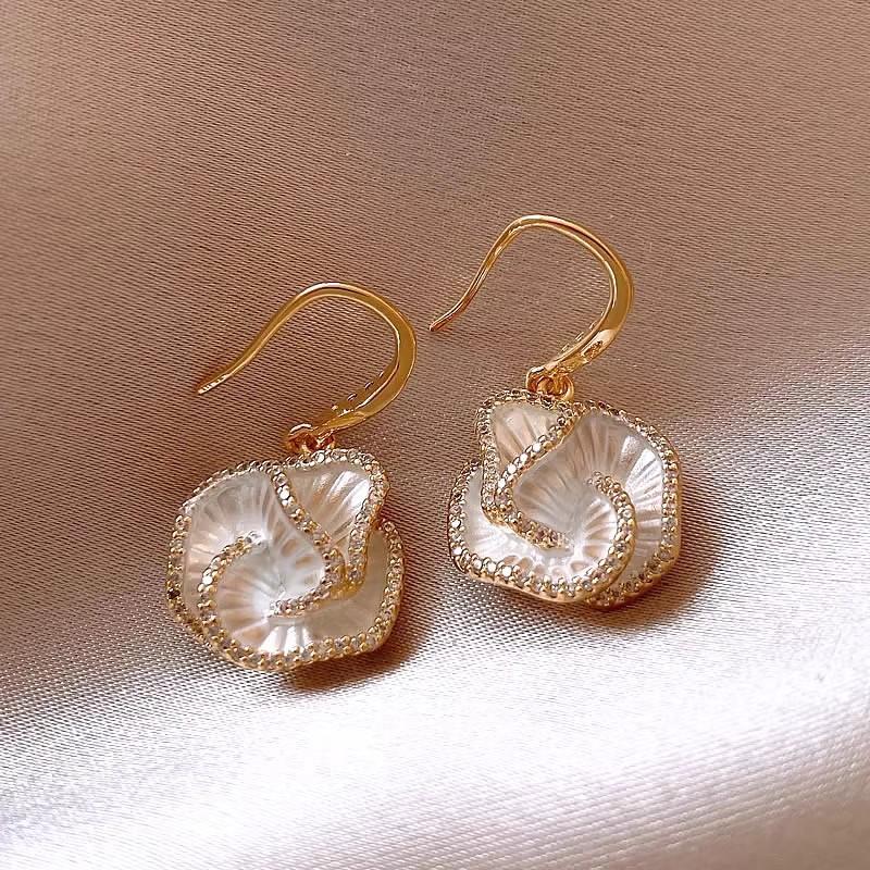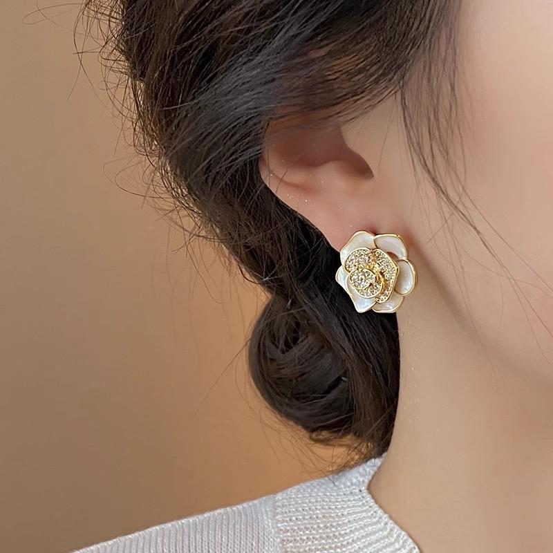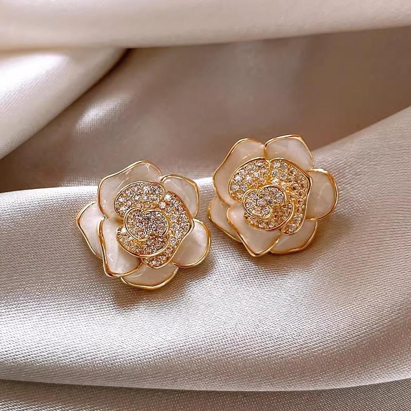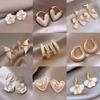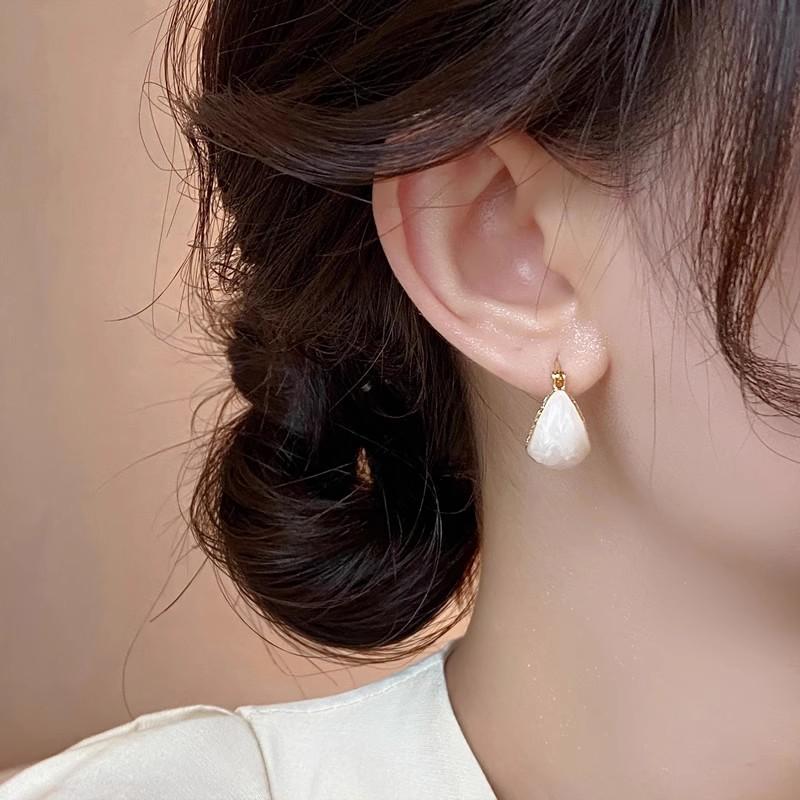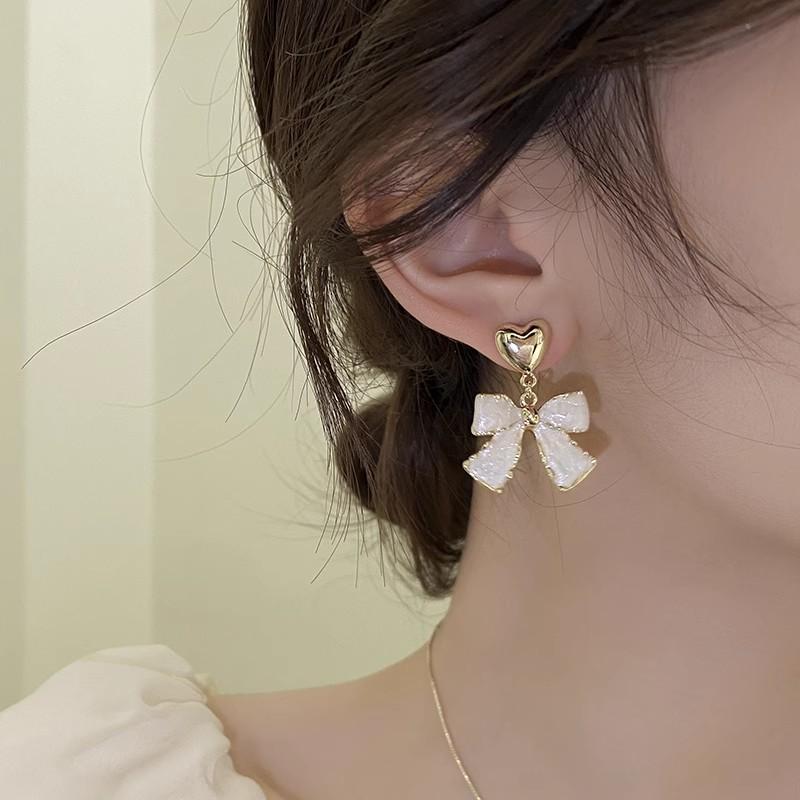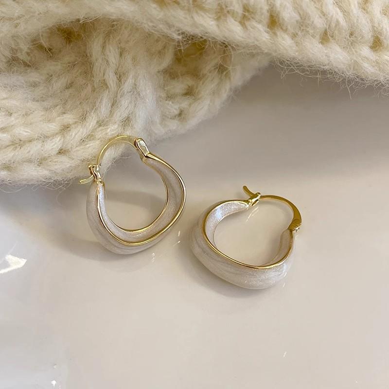 White diamond oval [oil dripping] ear buckle, White butterfly [Zircon] earrings, Golden geometry [925 silver n...