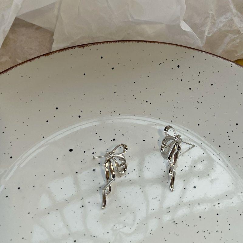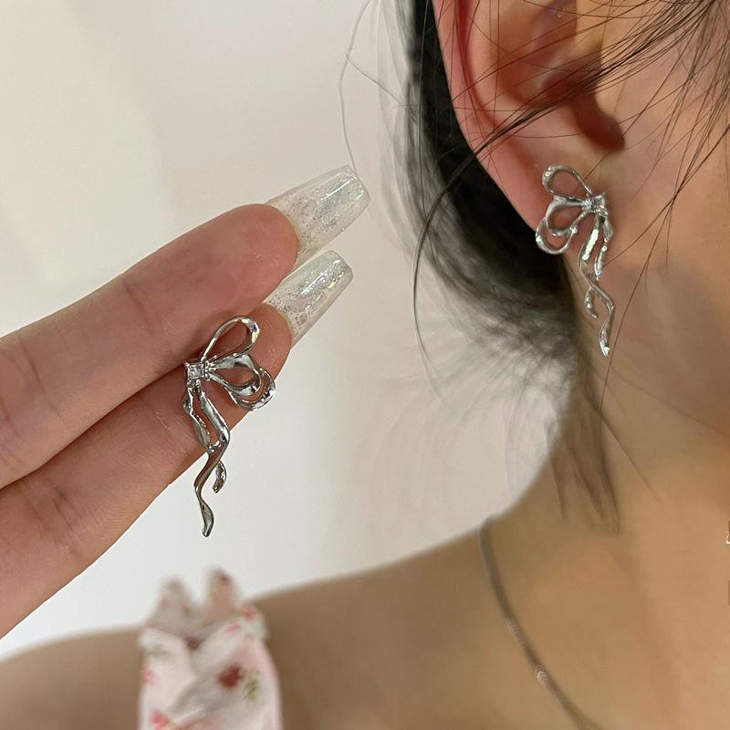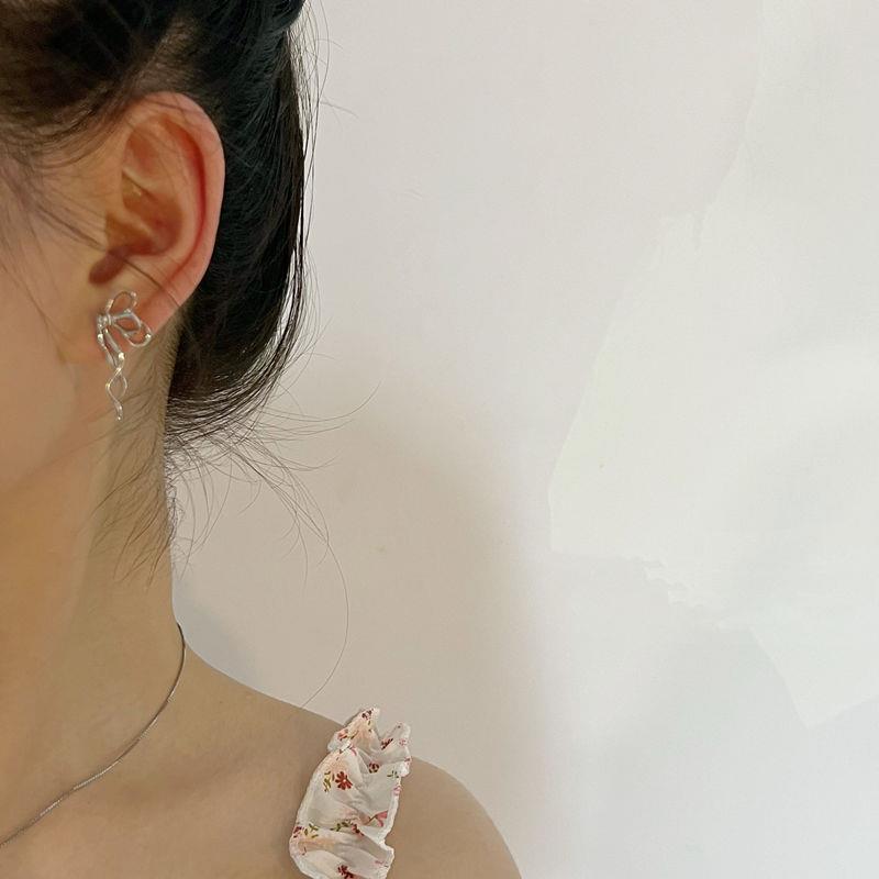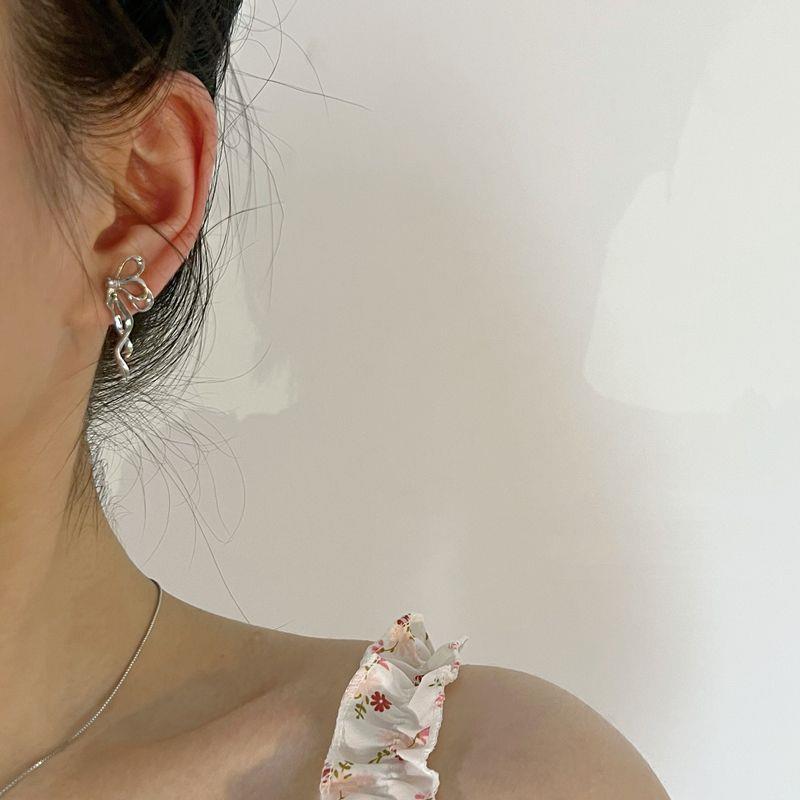 Pendientes de plata de ley 925 con diseño de lazo creativo y aguja, versátiles, sencillos y modernos para uso diario, con clip para las orejas para mujer.