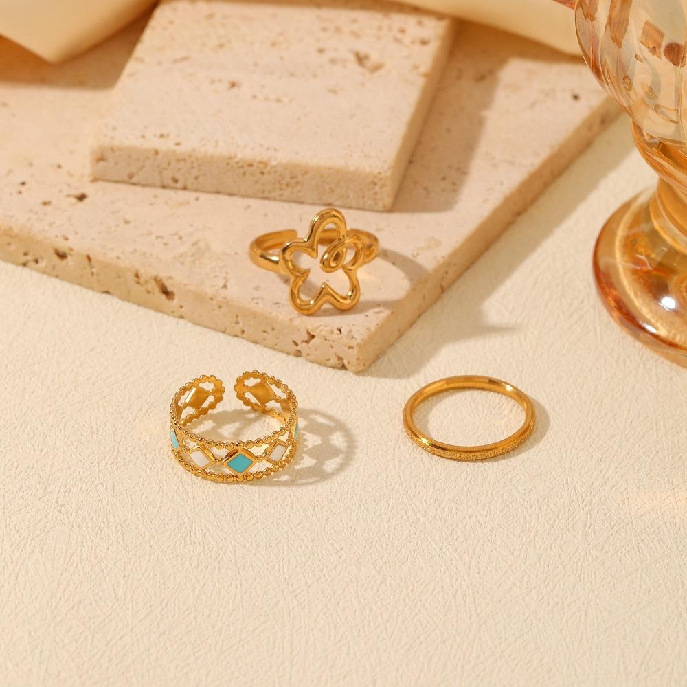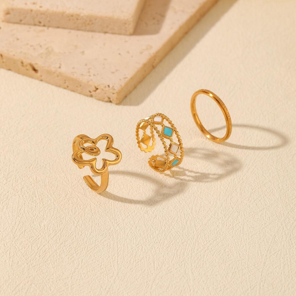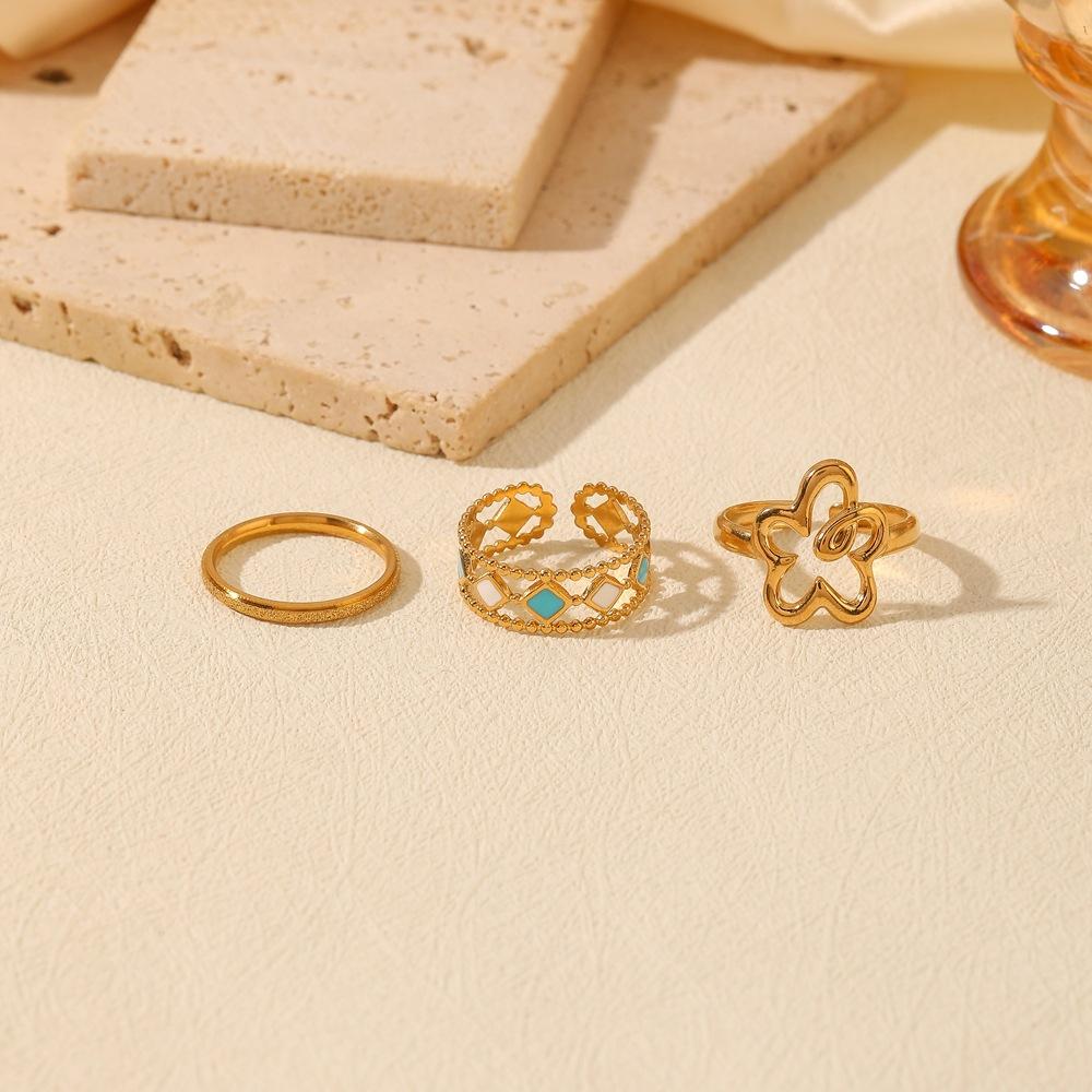 Compra Nuevo y versátil anillo hueco de flor ajustable con apertura dorada de acero inoxidable personalizado a la moda, conjunto de tres piezas al por mayor al por mayor en Joom.pro