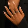 Nuevo y versátil anillo hueco de flor ajustable con apertura dorada de acero inoxidable personalizado a la moda, conjunto de tres piezas al por mayor
