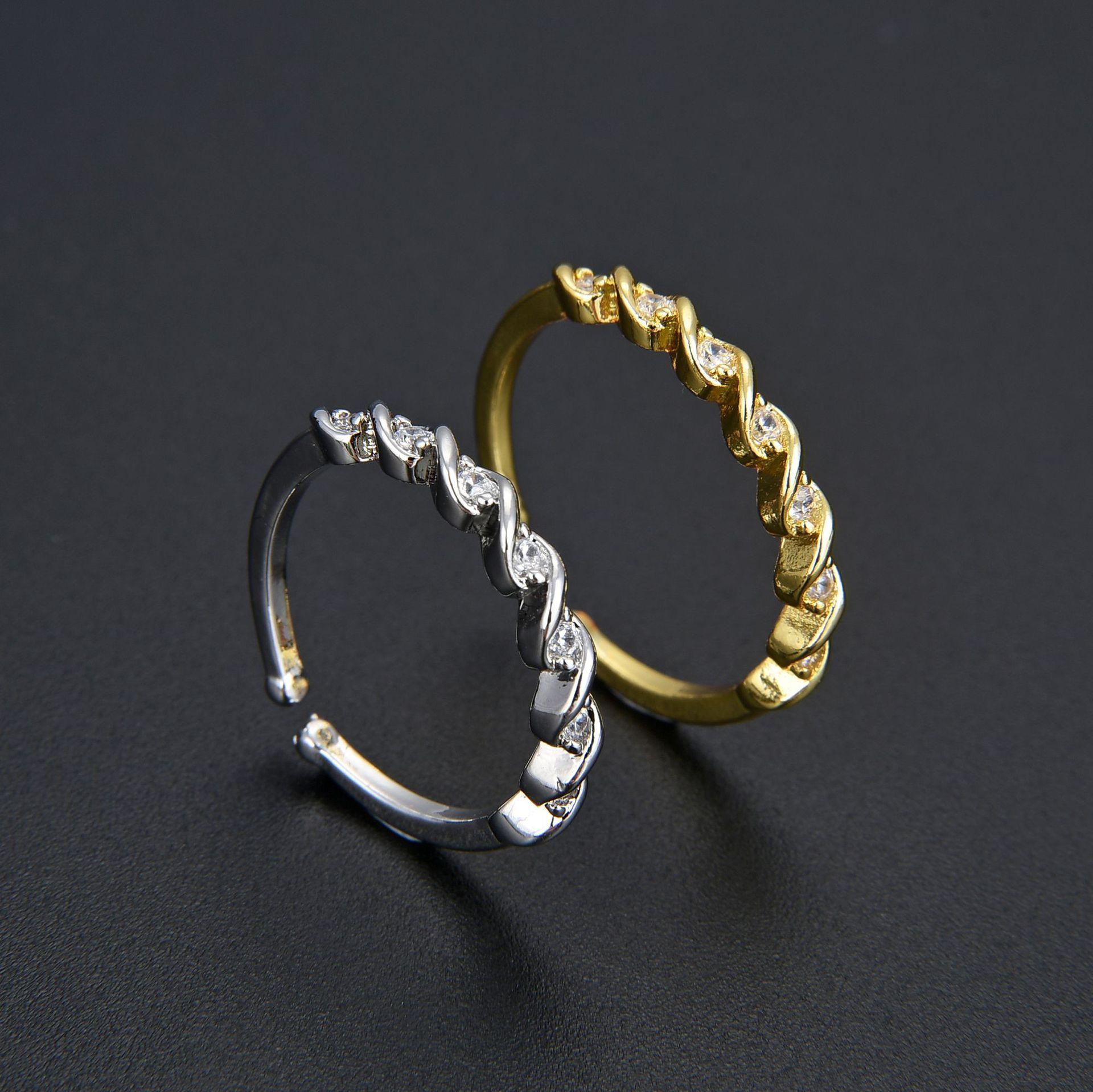 Compra Anillo abierto trenzado con incrustaciones de diamantes para mujer, diseño de nicho de lujo ligero, versátil, simple, estilo frío, anillo para dedo índice. al por mayor en Joom.pro