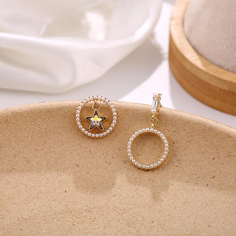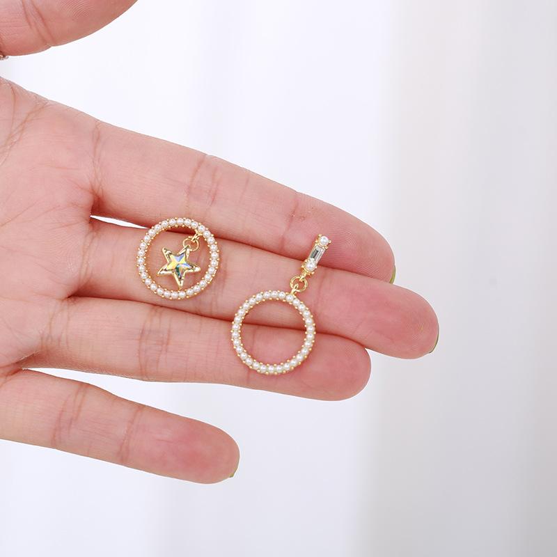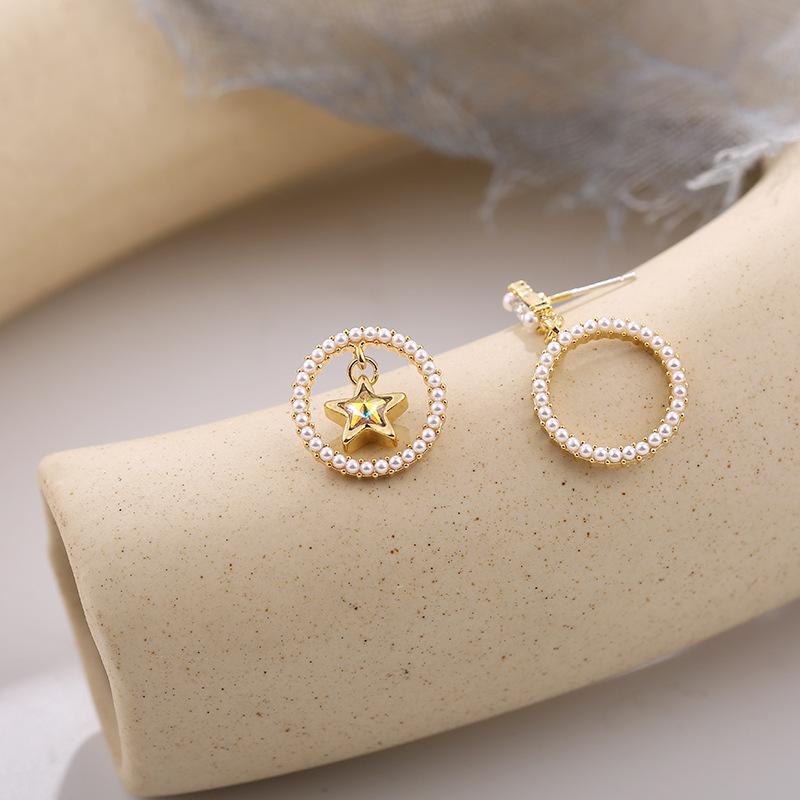 Pendientes nuevos japoneses y coreanos 2020 de plata 925 para niñas, pendientes de perlas irregulares con personalidad, pendientes de estrella de cinco puntas con diamantes de colores