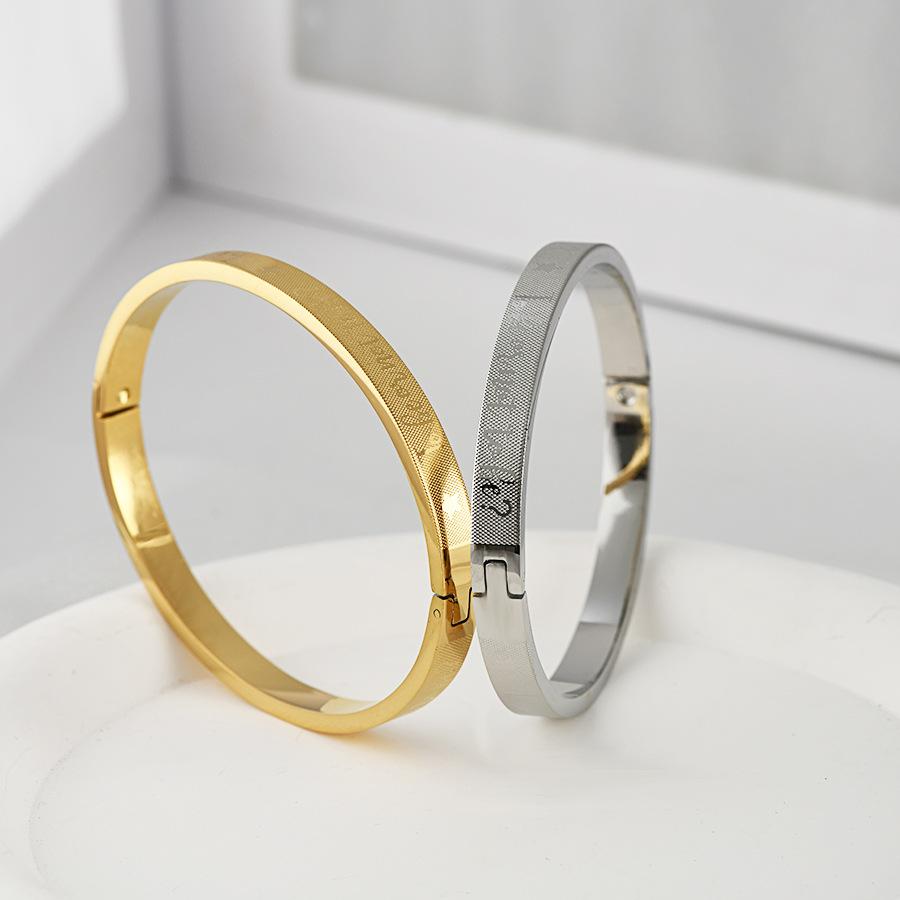 Pulsera transfronteriza nueva de acero de titanio creativa simple corrosión patrón de saludo hebilla pulsera de pareja joyería de acero inoxidable