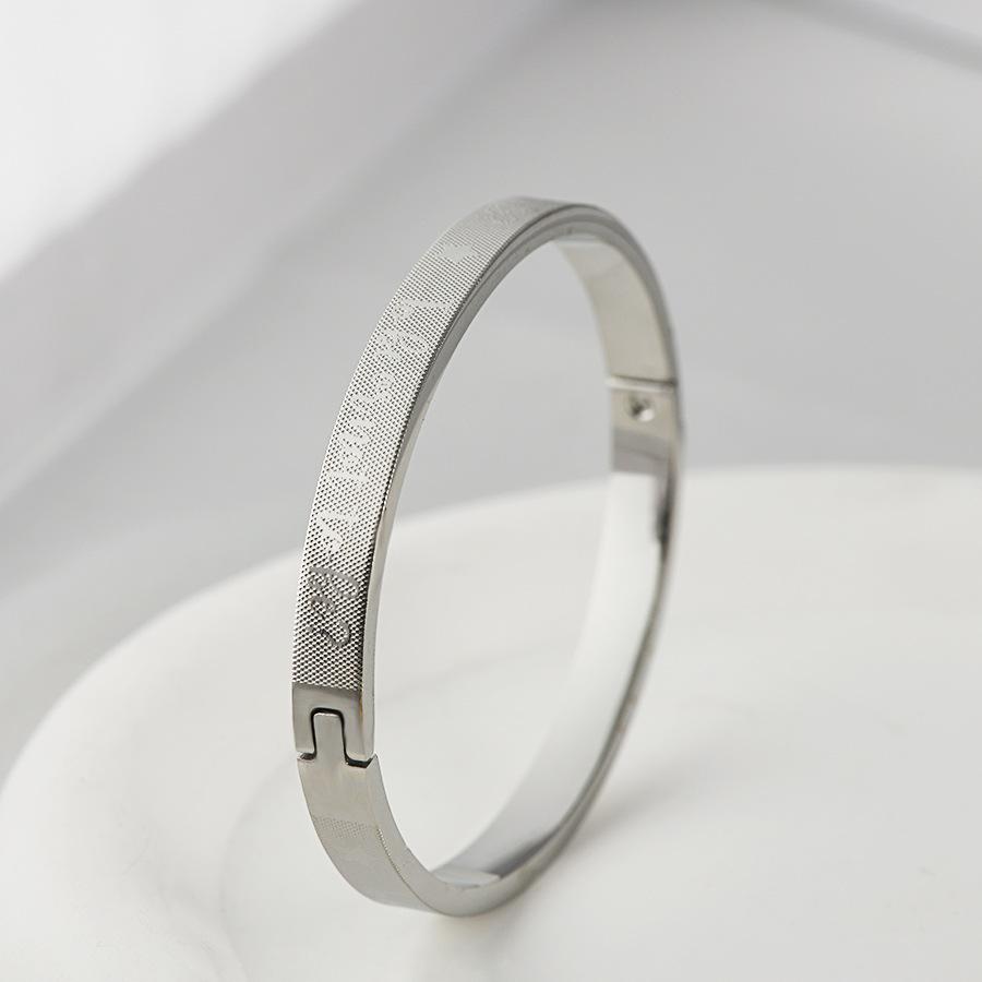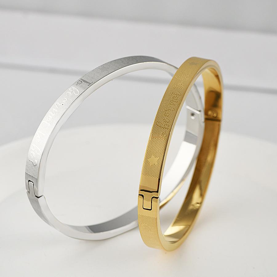 Nueva pulsera de acero de titanio transfronteriza, creativa, simple, con textura de rejilla y hebilla, pulsera de pareja, joyería de acero inoxidable