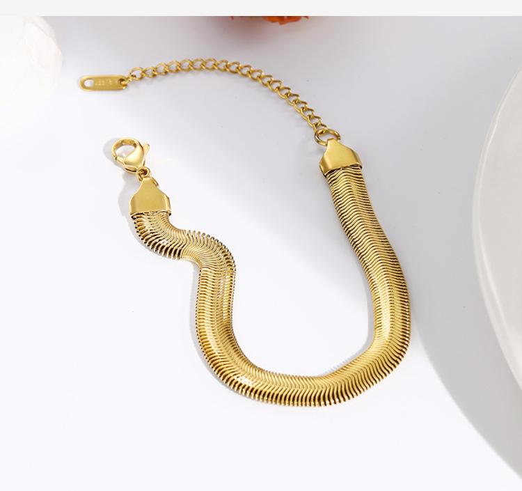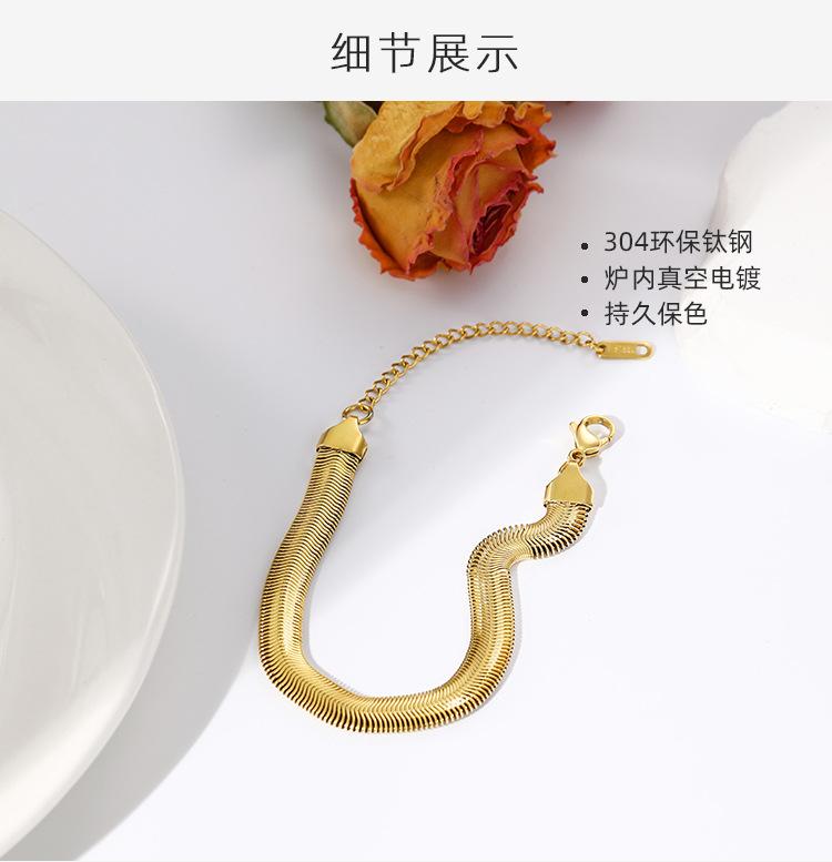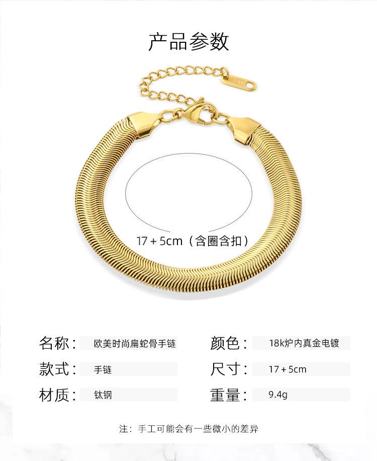 Pulsera de cadena plana de hueso de serpiente de acero de titanio que no se desvanece, moda europea y americana simple con textura metálica, accesorios de cadena de acero inoxidable de alta calidad