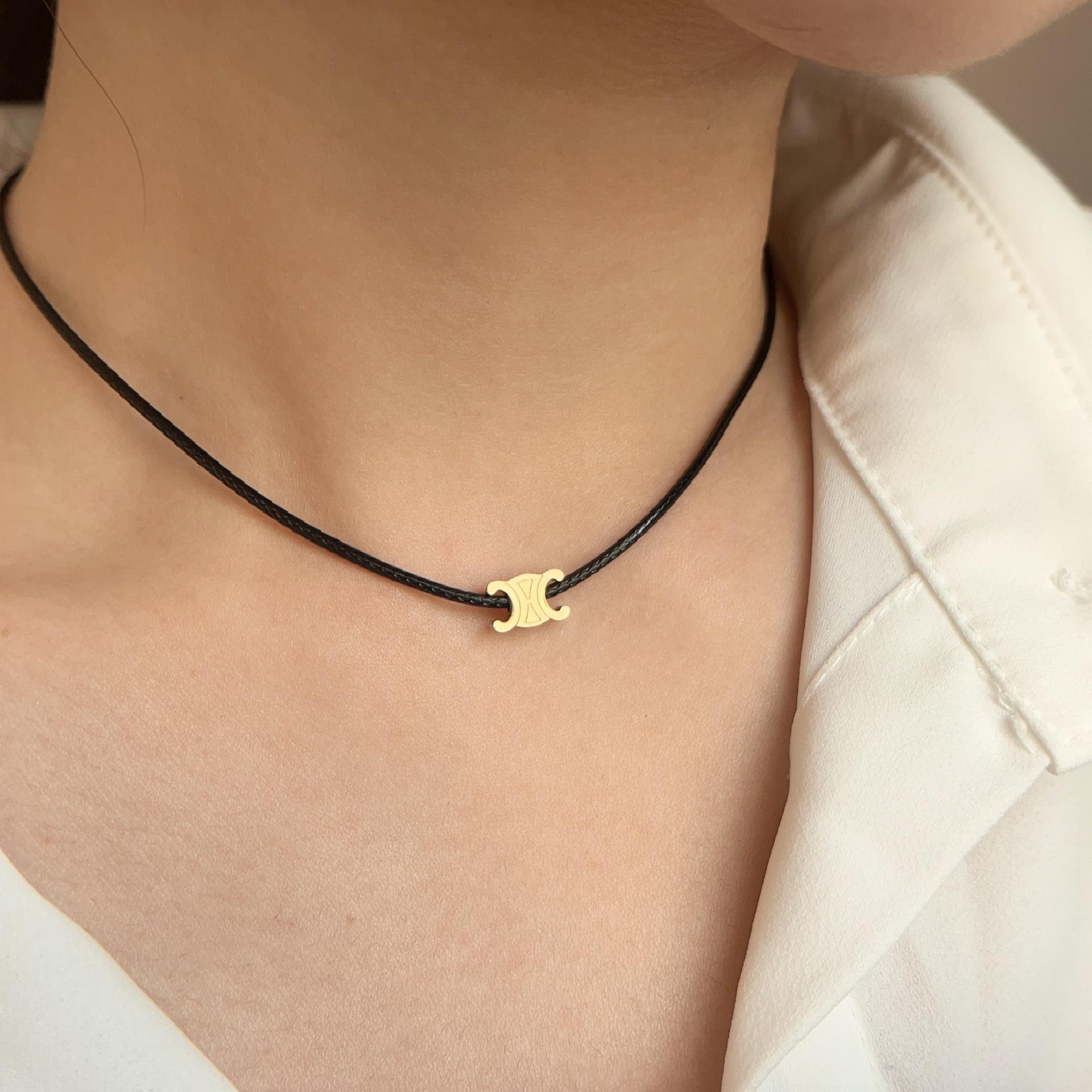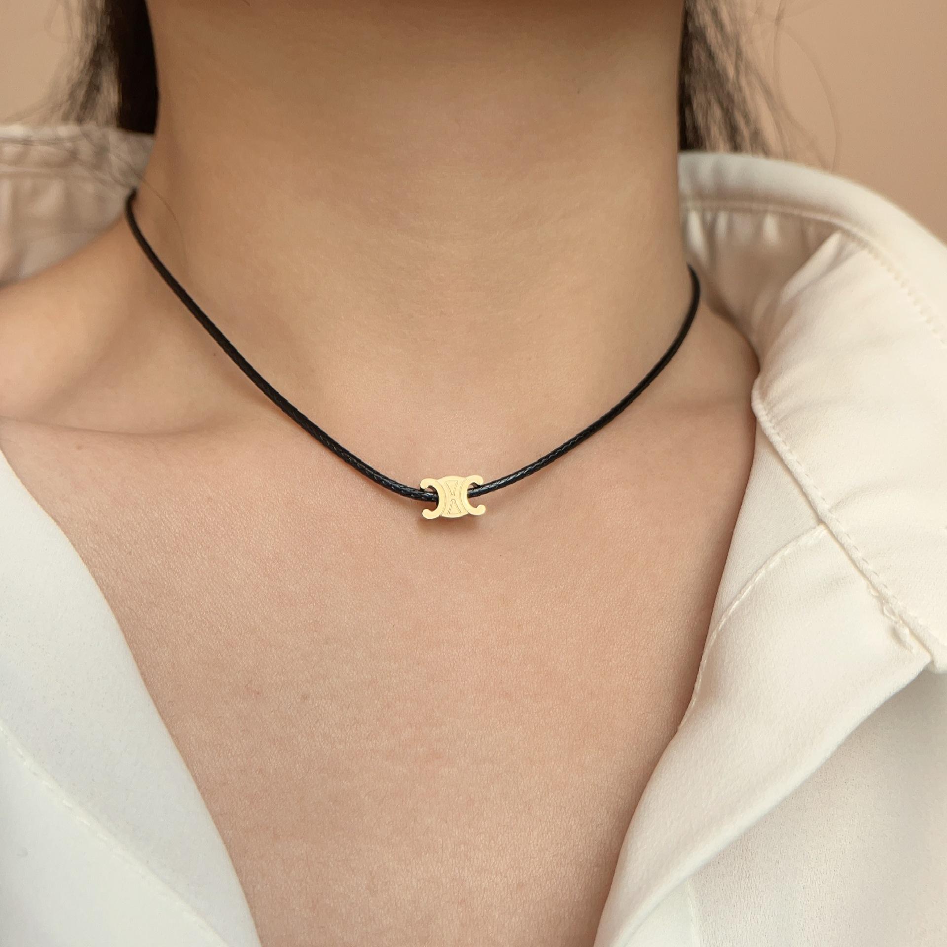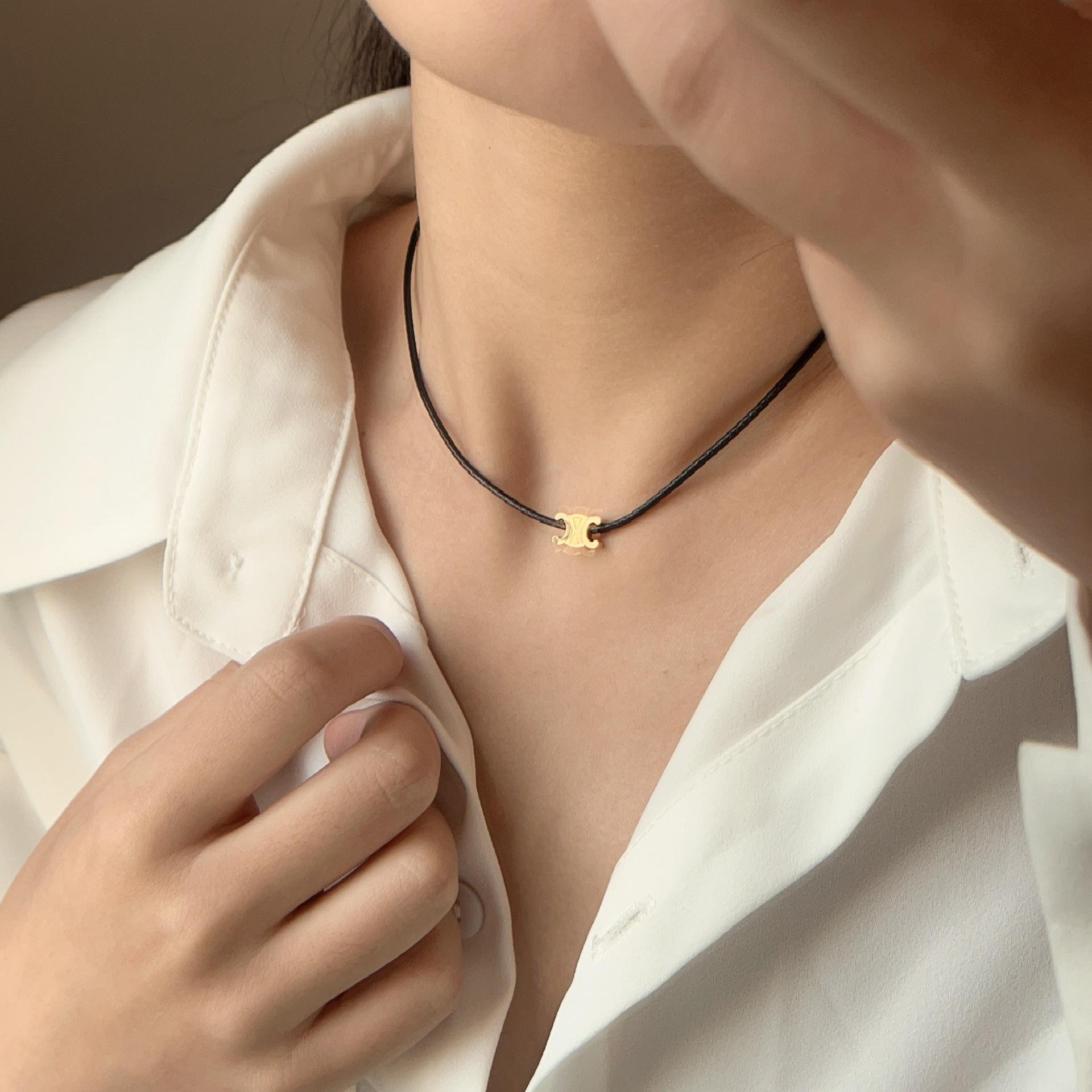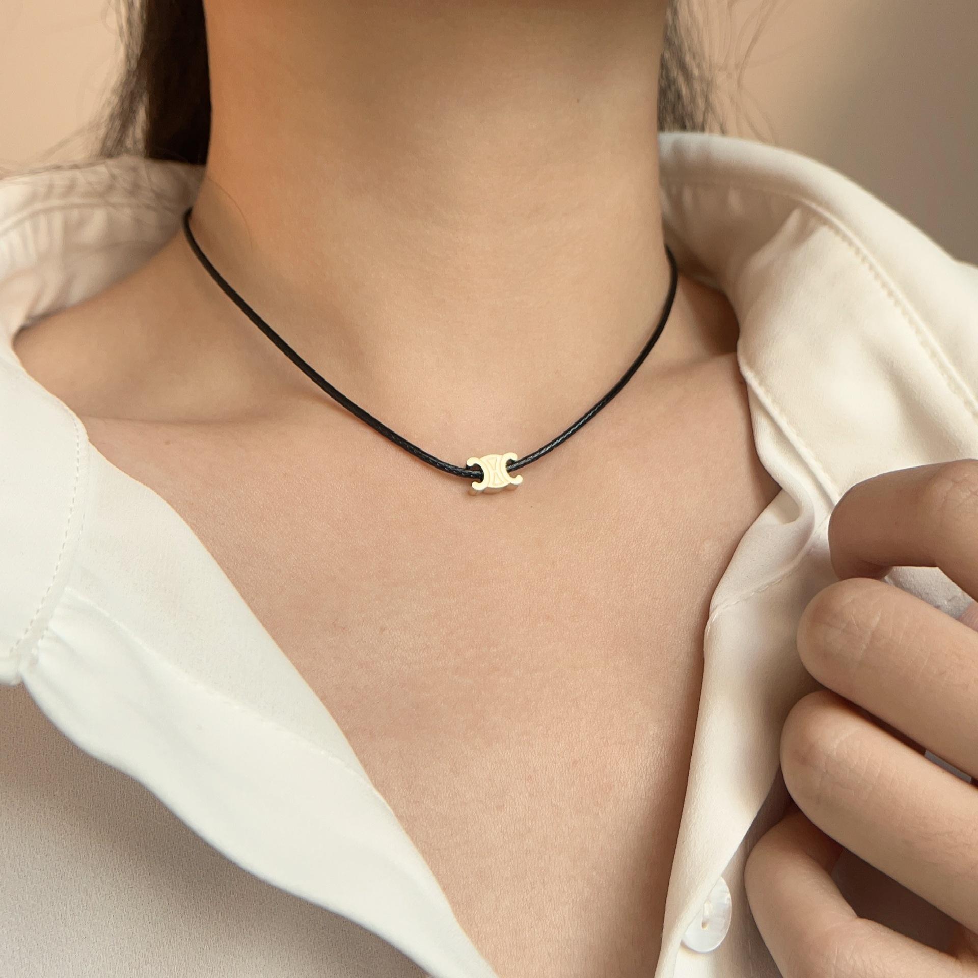 Collar con colgante de doble letra C de acero titanio y cuero combinable, sencillo, diseño de nicho para mujer, collar retro personalizado, cadena de clavícula