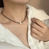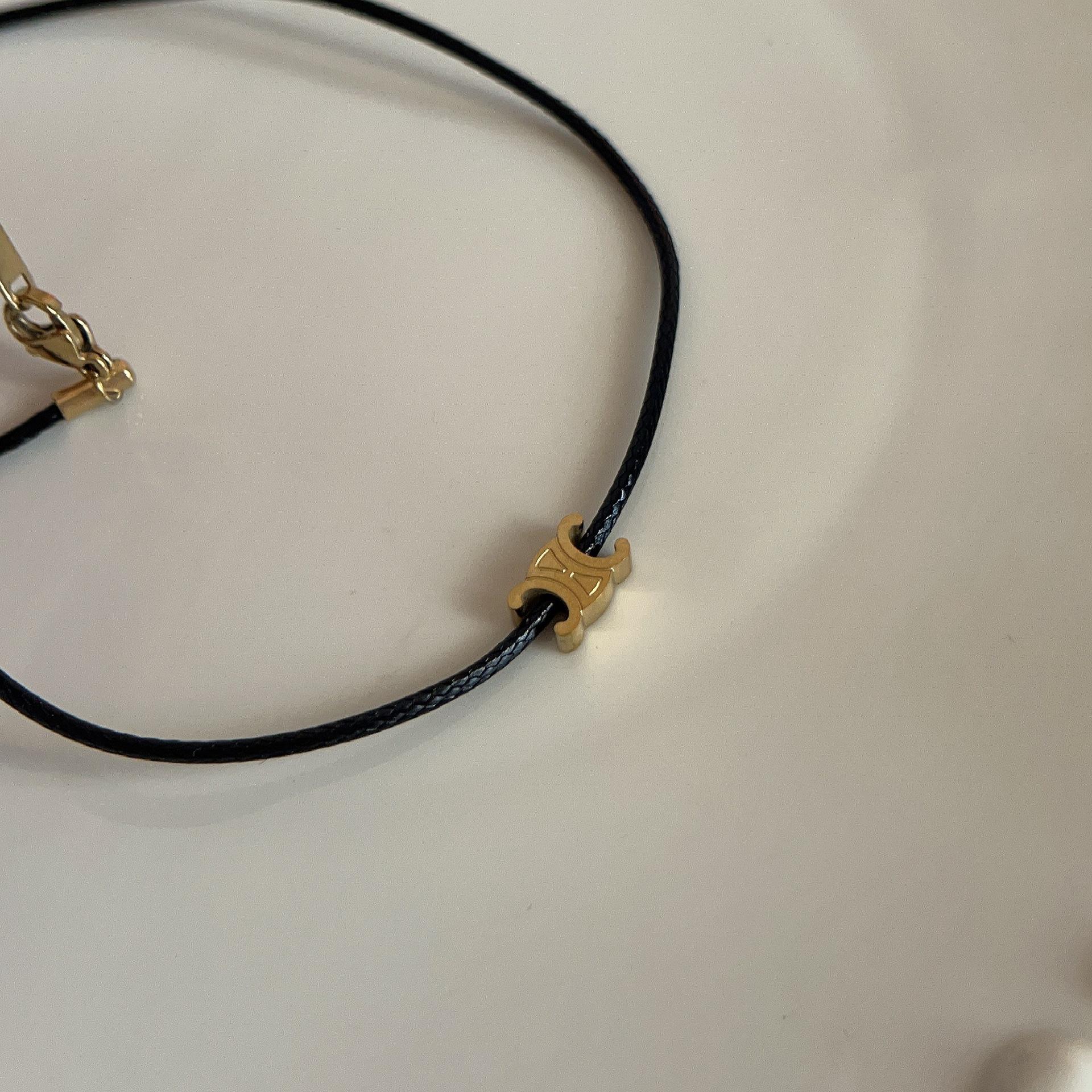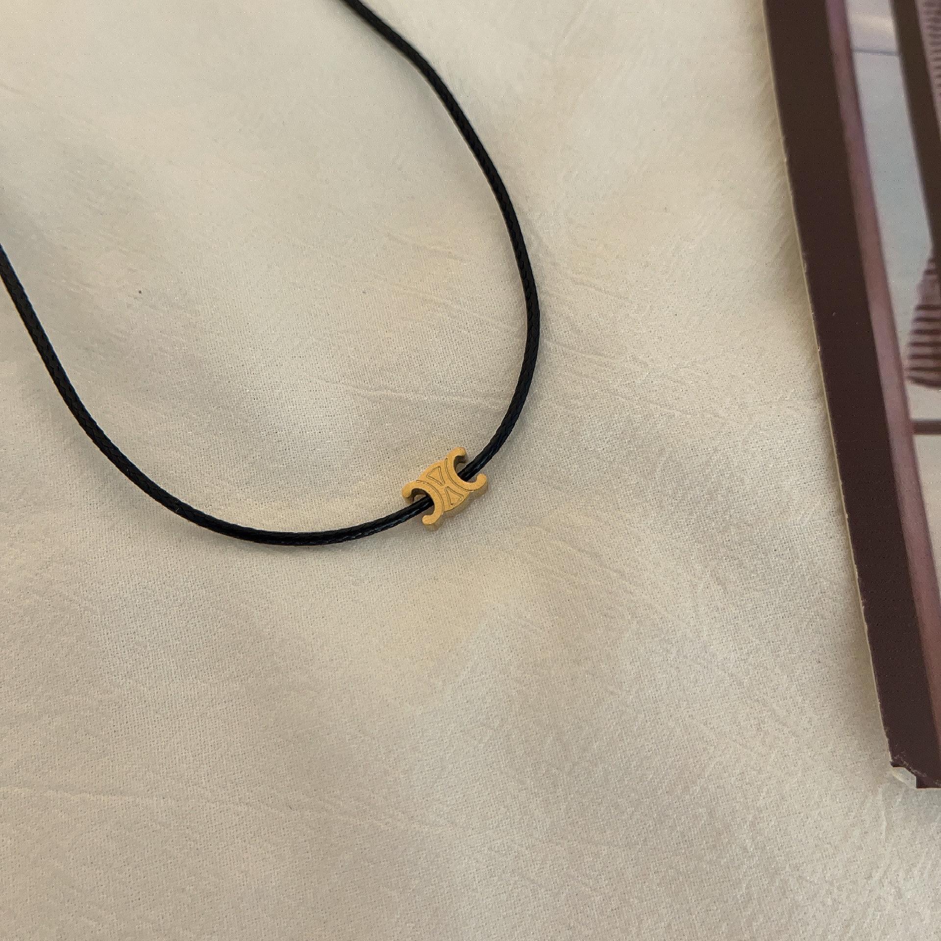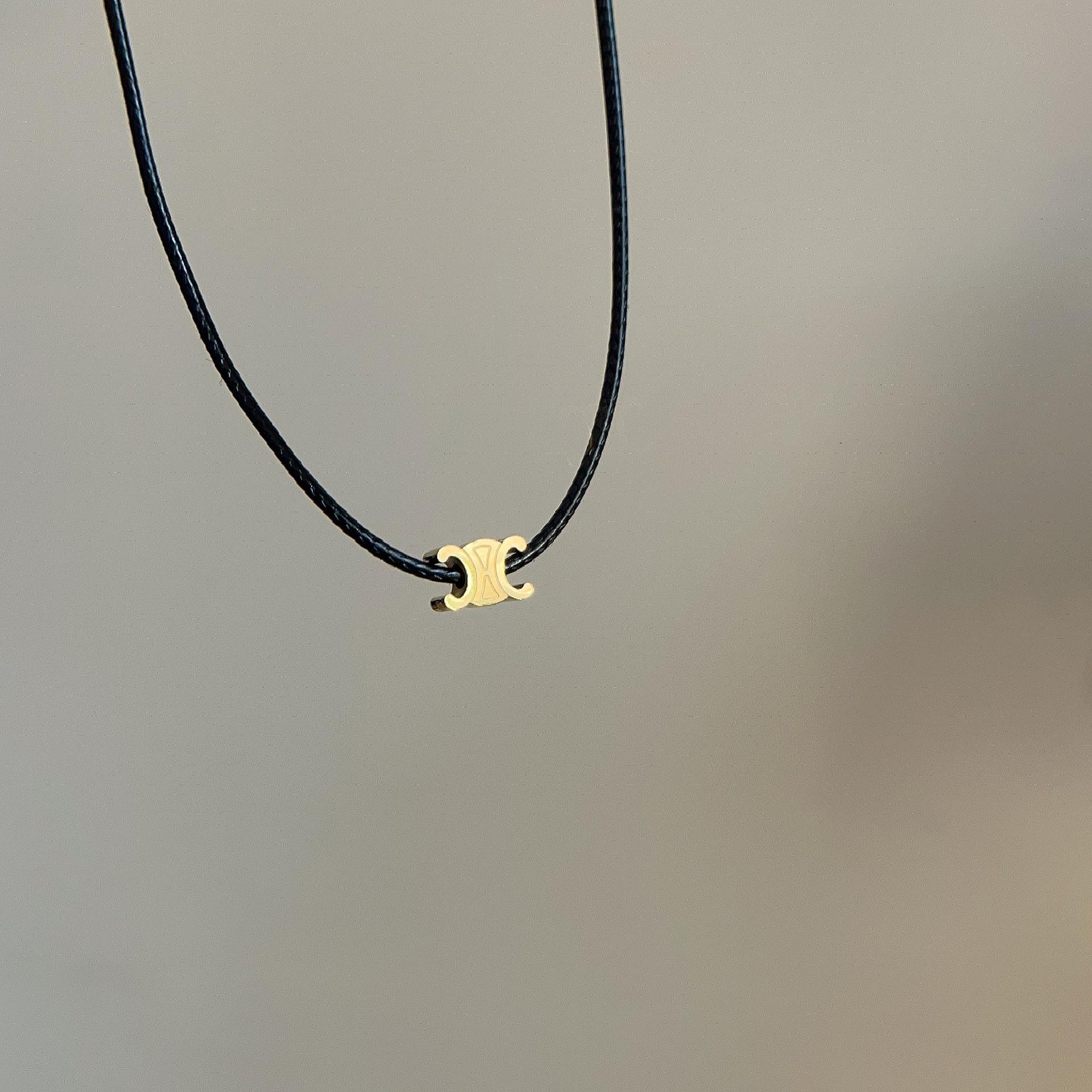 Collar con colgante de doble letra C de acero titanio y cuero combinable, sencillo, diseño de nicho para mujer, collar retro personalizado, cadena de clavícula