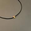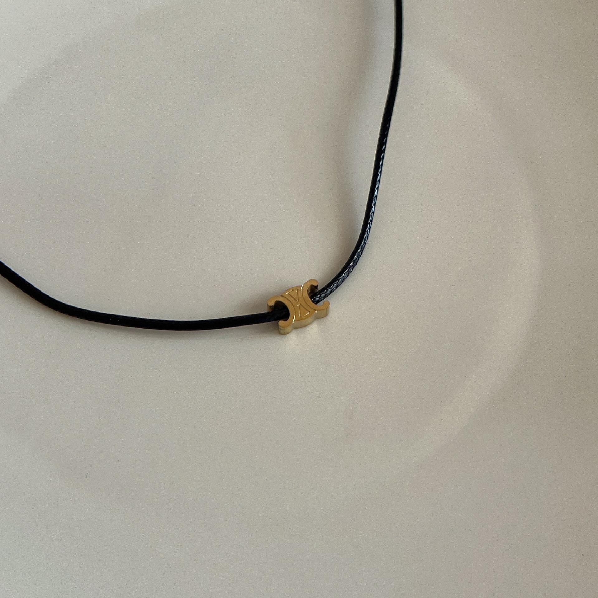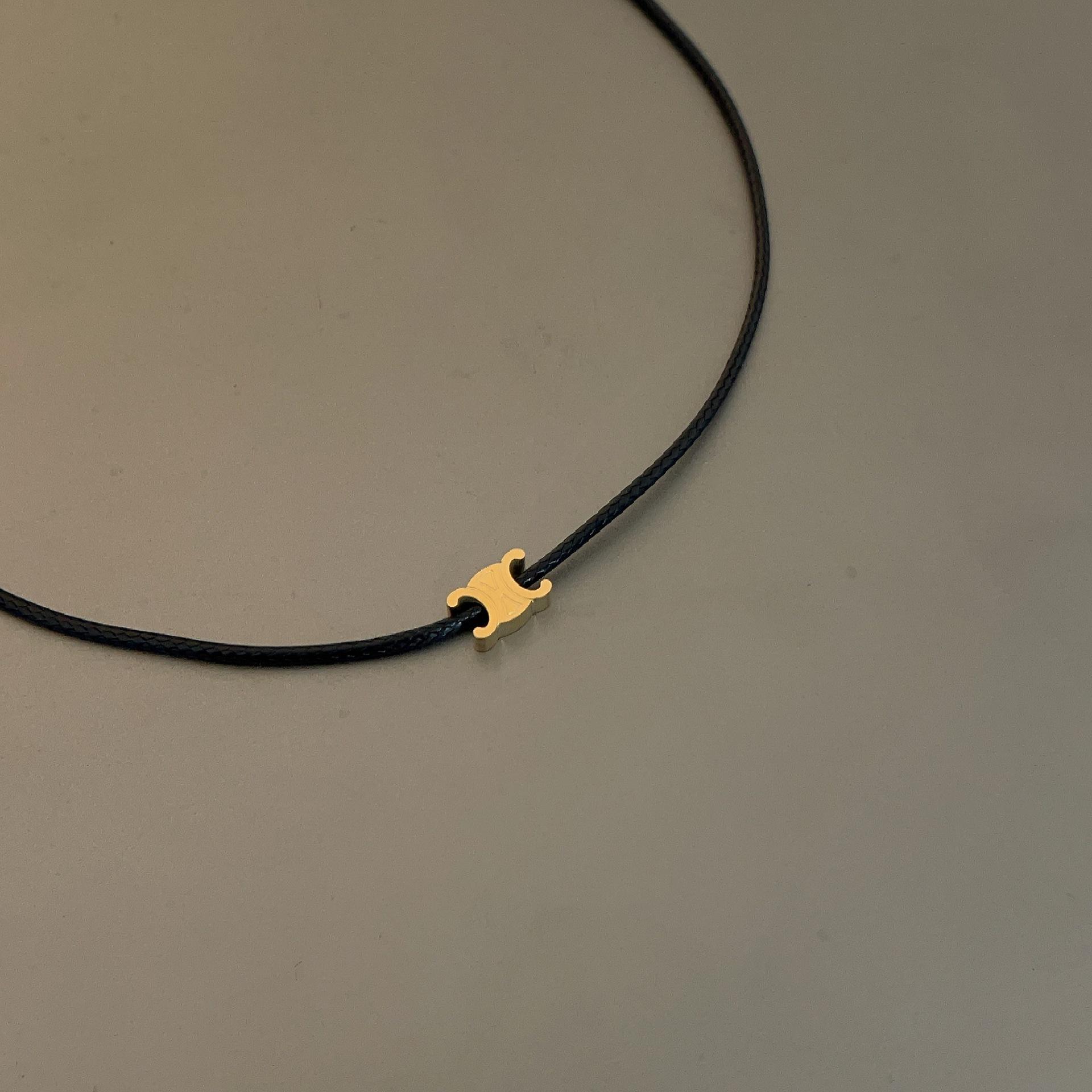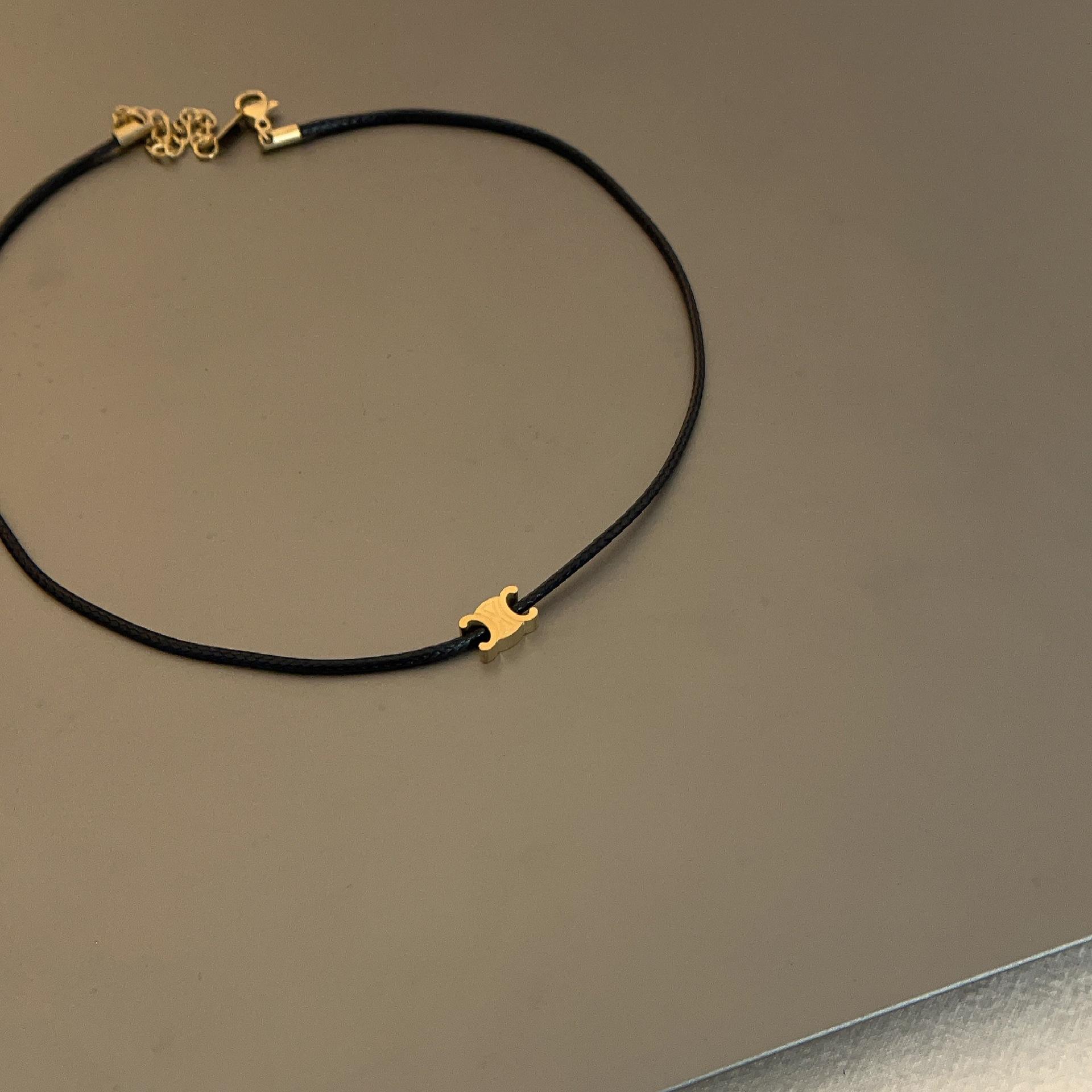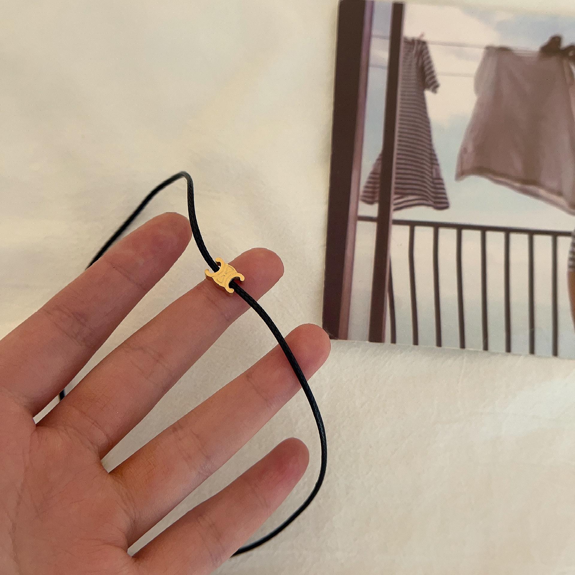 Collar con colgante de doble letra C de acero titanio y cuero combinable, sencillo, diseño de nicho para mujer, collar retro personalizado, cadena de clavícula