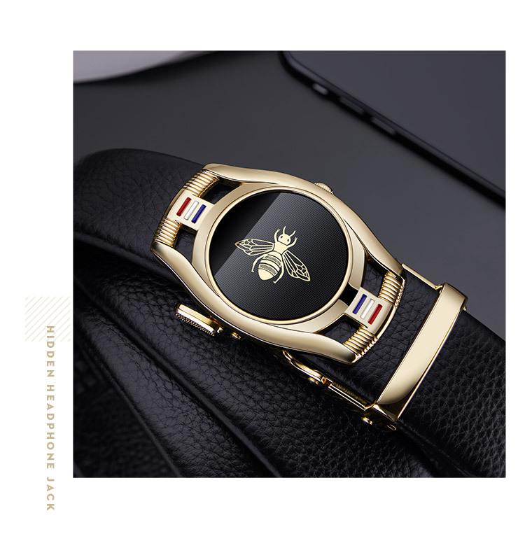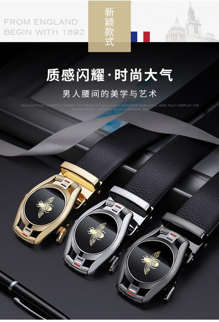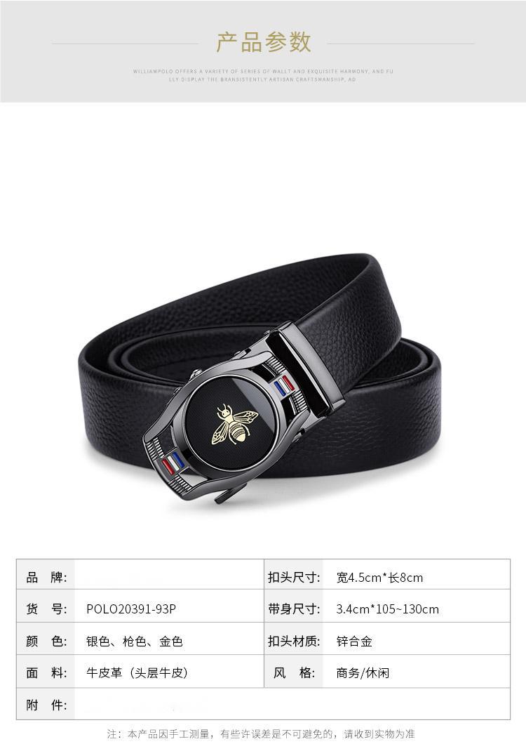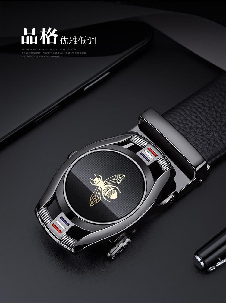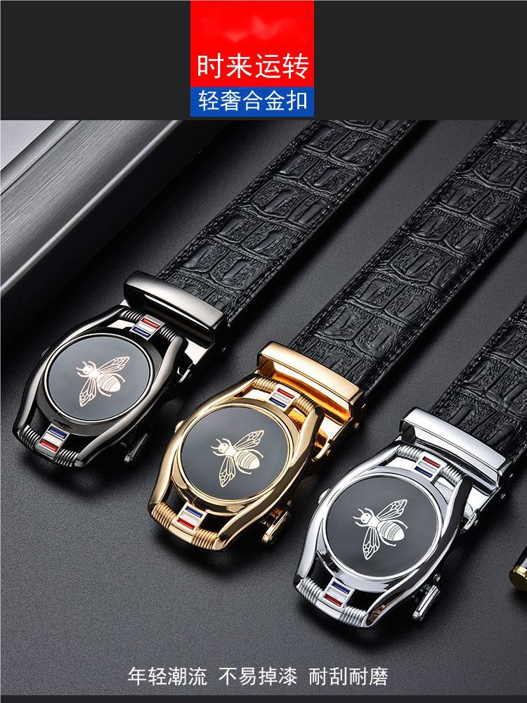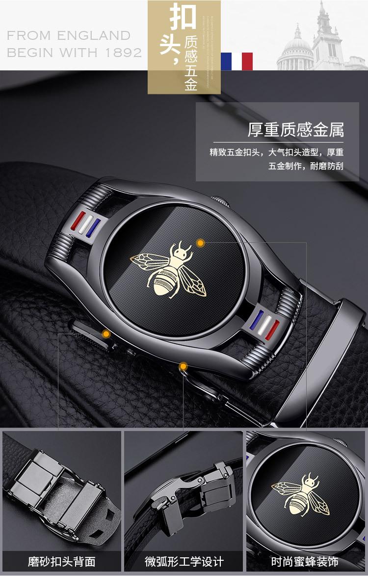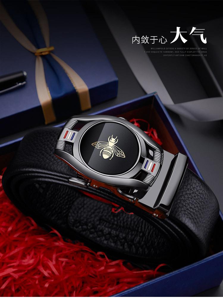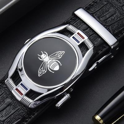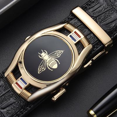 Cinturón de hombre con hebilla automática y capa superior de cuero de vaca, estilo simple, con diseño de abeja, suministro directo de fábrica