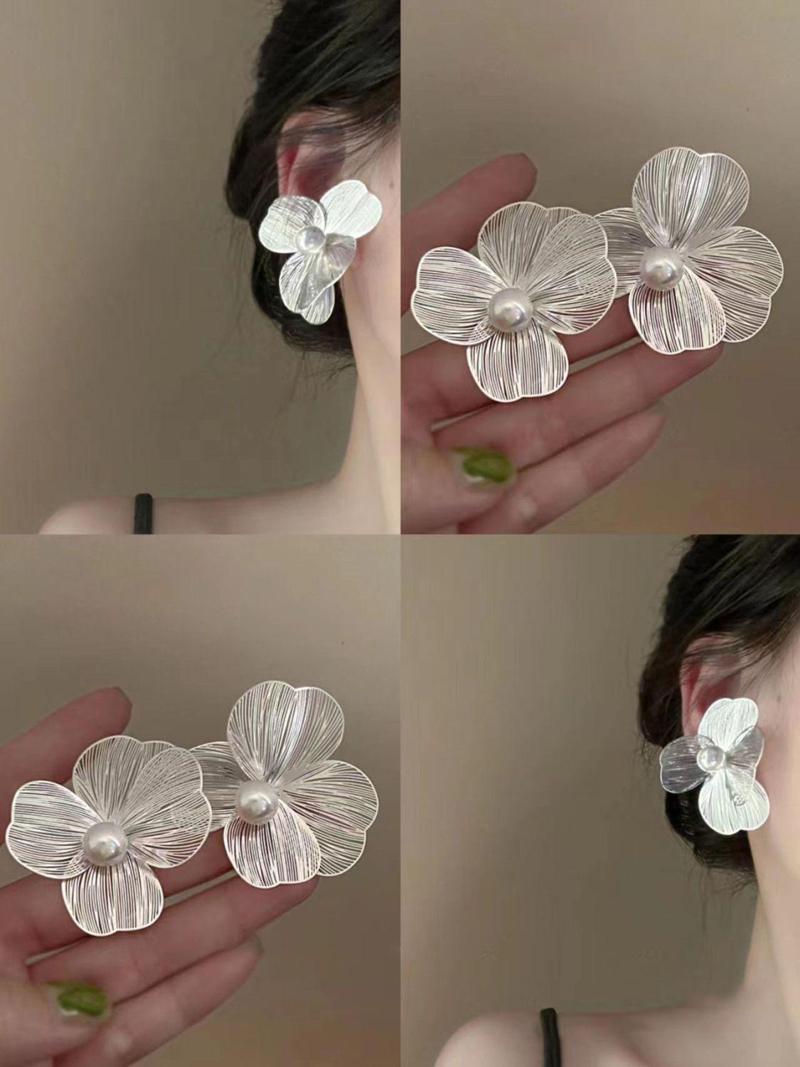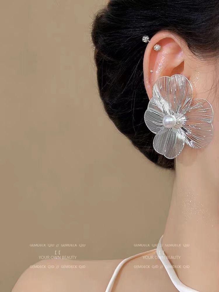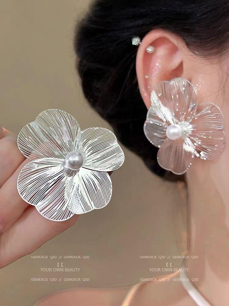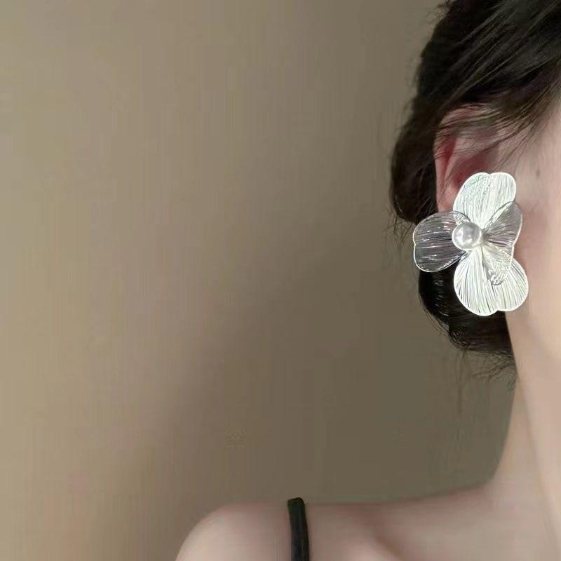 Pendientes de flores de metal francés Super Fairy, ligeros, lujosos, con diseño de nicho, elegantes y sencillos, nuevo estilo.