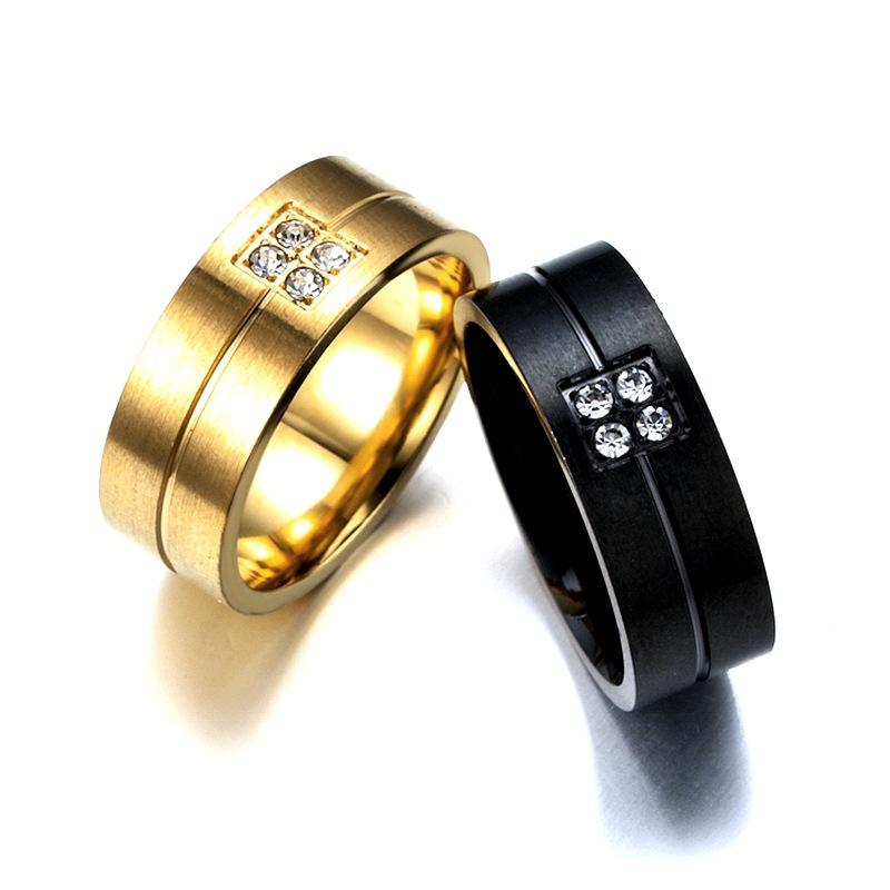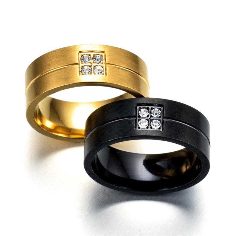Anillo de acero de titanio para hombre europeo y americano negro acero inoxidable diamante amantes anillo de circonita suministro transfronterizo joyería al por mayor