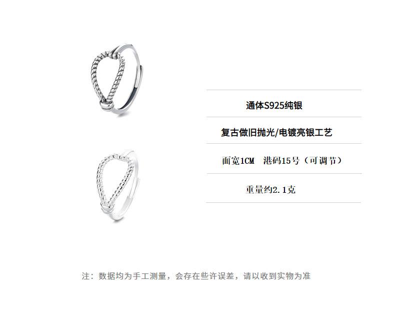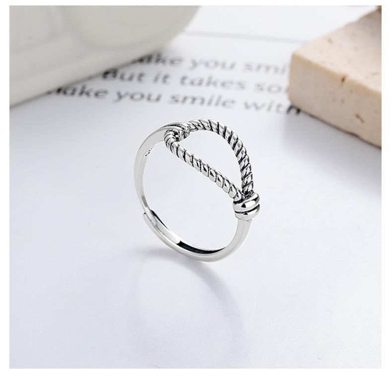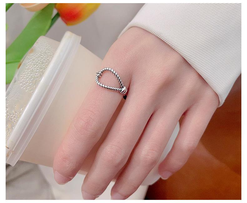 Anillo abierto Yunchaoxuan S925 de plata con diseño geométrico desgastado vintage con cuerda torcida creativa y personalizada de moda