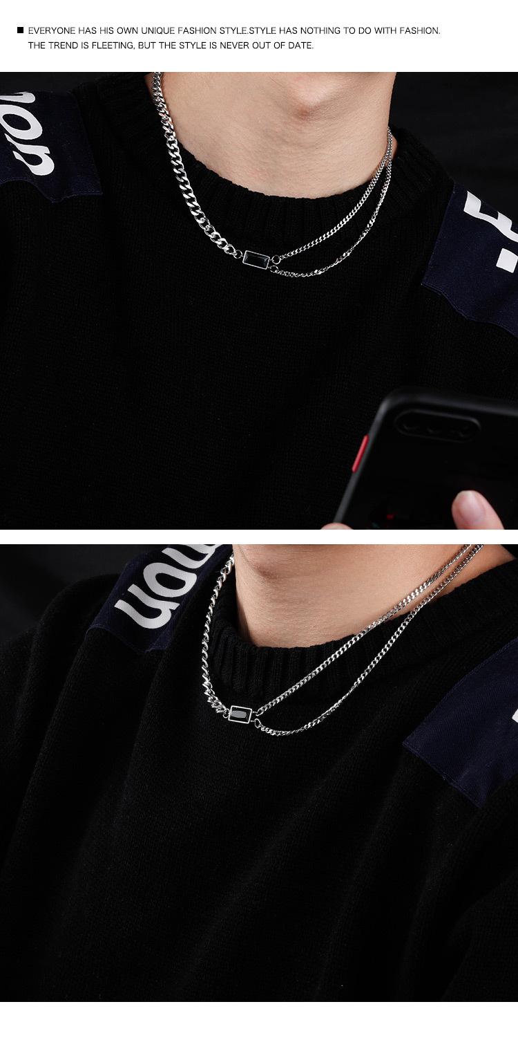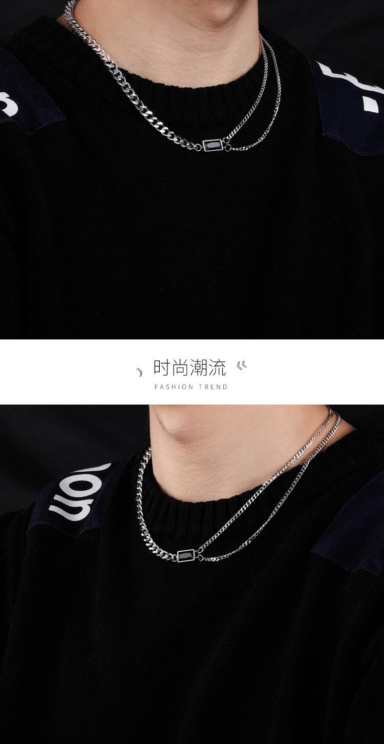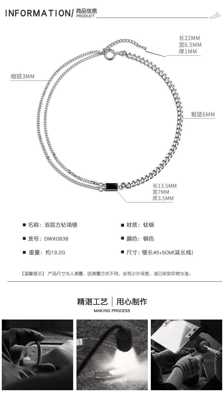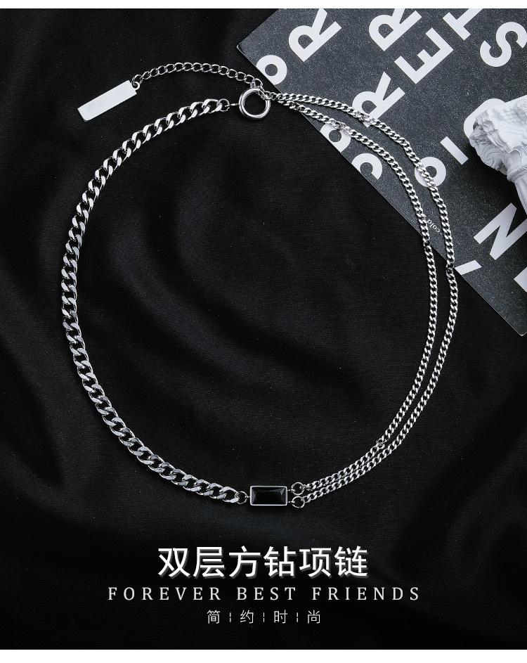 Compra Collar de acero de titanio doble, nuevo, directo de fábrica, con diamantes cuadrados dobles, para hombres y mujeres, cadena de clavícula corta para parejas. al por mayor en Joom.pro