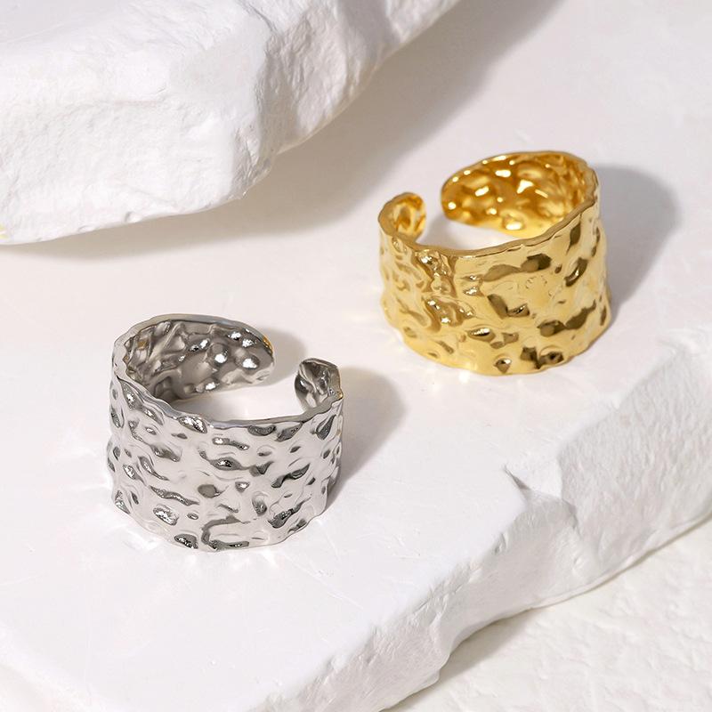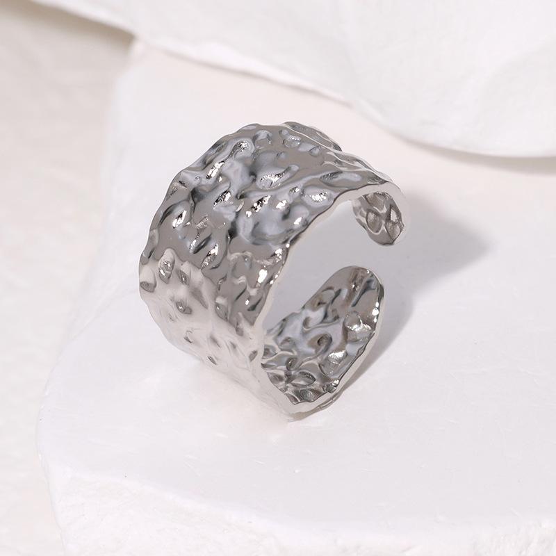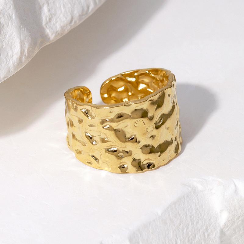 Compra Anillo abierto de acero de titanio estilo europeo y americano para mujer, chapado en oro de 18 quilates, con patrón de martillo irregular, ancho, punk, de acero inoxidable. al por mayor en Joom.pro