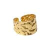 Anillo abierto de acero de titanio estilo europeo y americano para mujer, chapado en oro de 18 quilates, con patrón de martillo irregular, ancho, punk, de acero inoxidable.