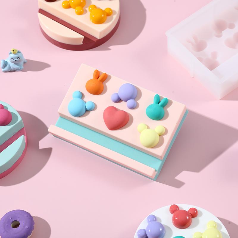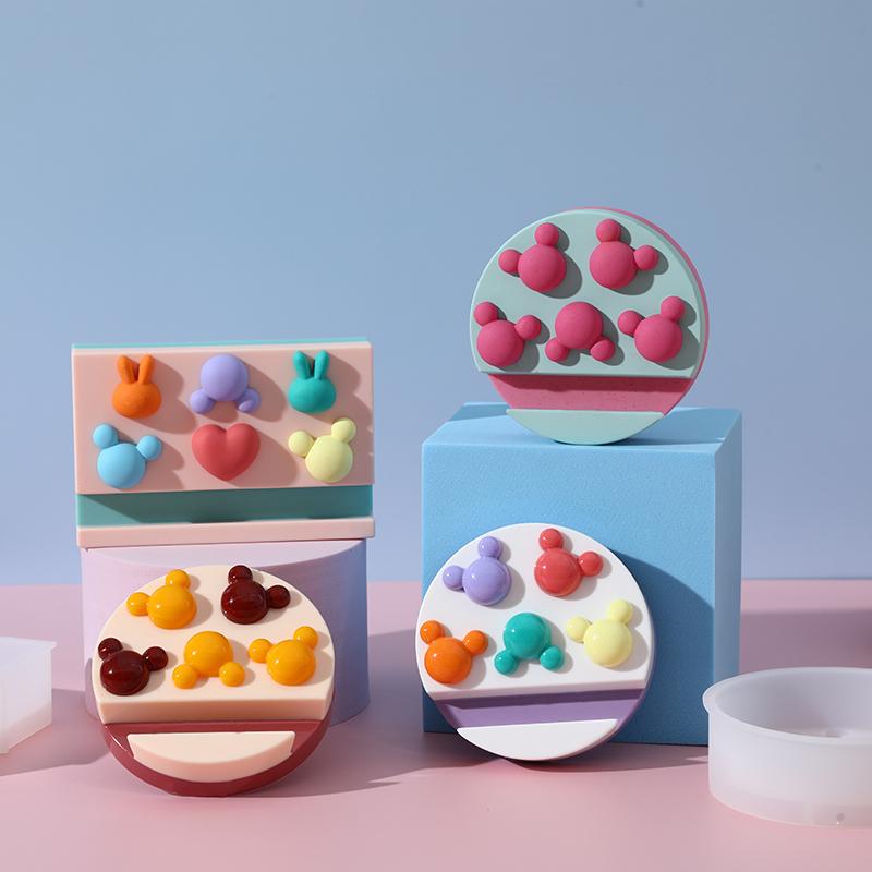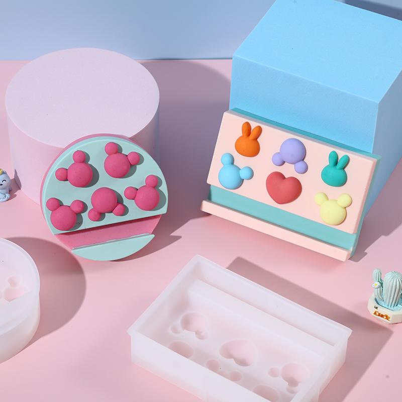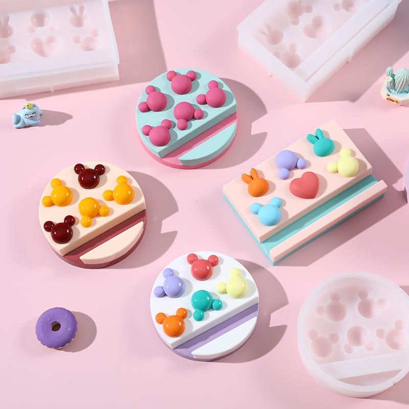 Molde de silicona para decoración de mesa con soporte para teléfono móvil portátil de dibujos animados, hecho a mano, con cristal epoxi