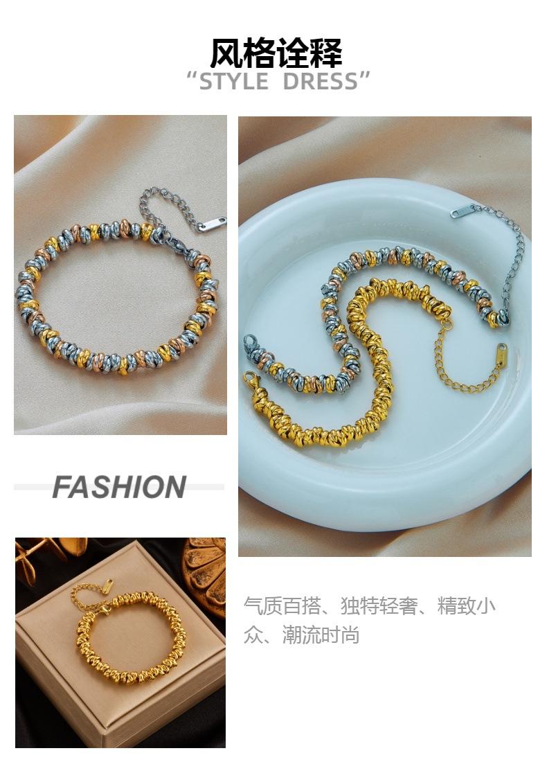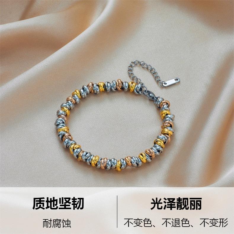Pulsera europea y americana de moda transfronteriza, simple, de color contrastante, de metal de acero de titanio, con cuentas circulares tejidas, retro, de personalidad, que combina con todo.
