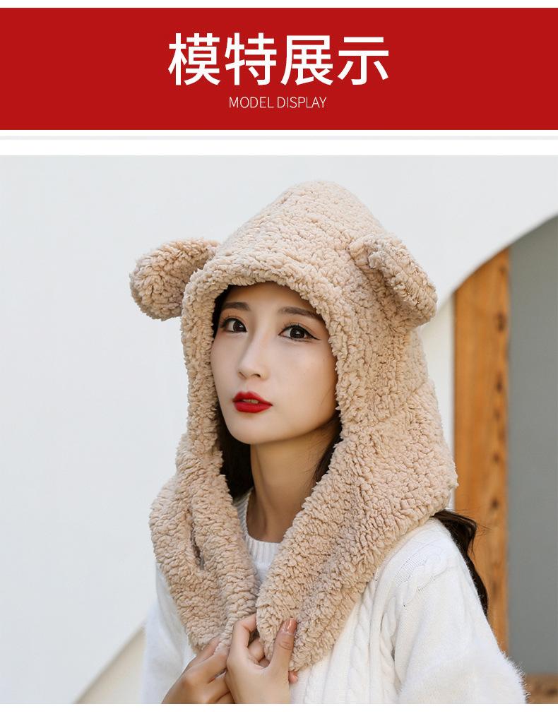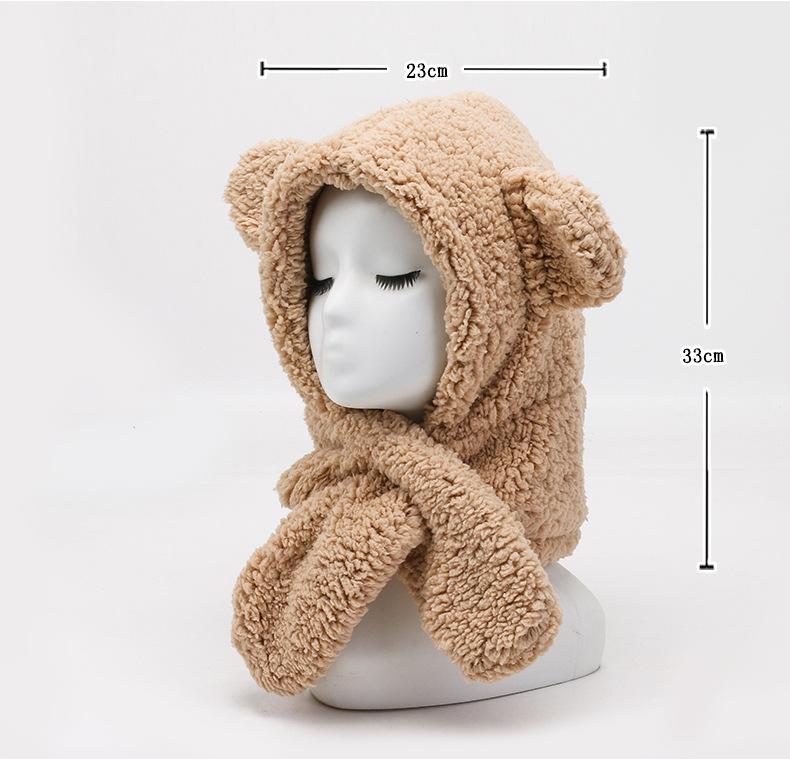 Gorro con protección para las orejas de oso para mujer, otoño e invierno, bonita bufanda de felpa de invierno con capucha, estilo coreano, combina con todo, cálida y a la moda.