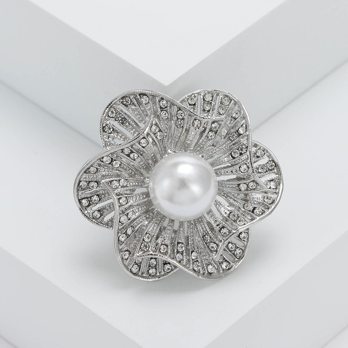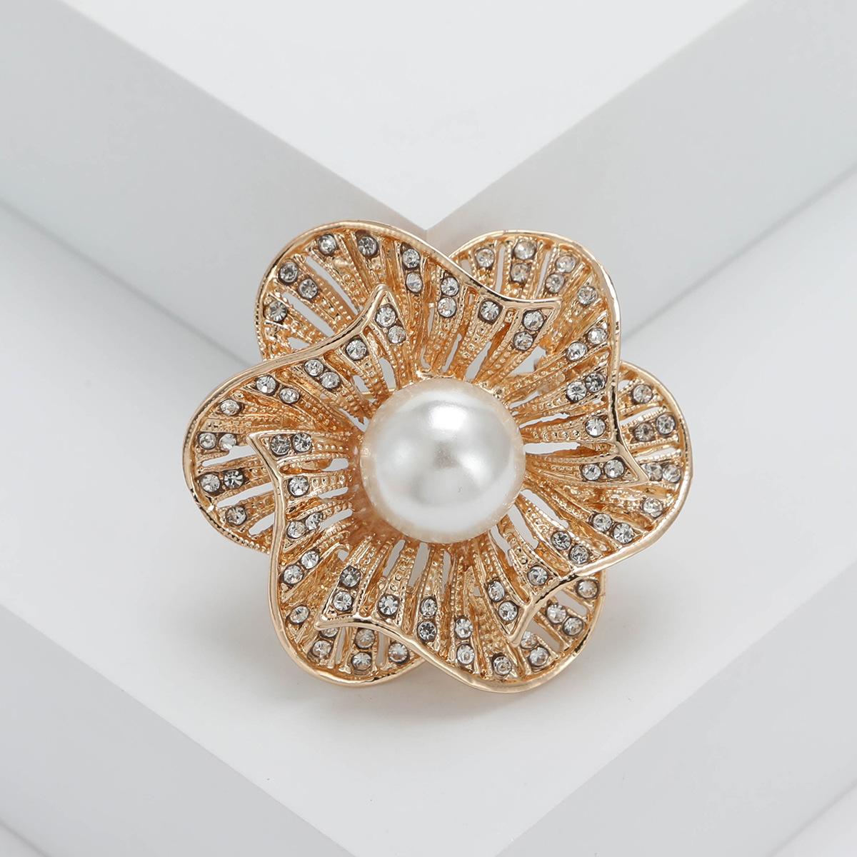 Nuevo broche vintage de flor hueca con perla incrustada de diamantes, elegante accesorio de abrigo europeo y americano, broche para cárdigan de mujer.