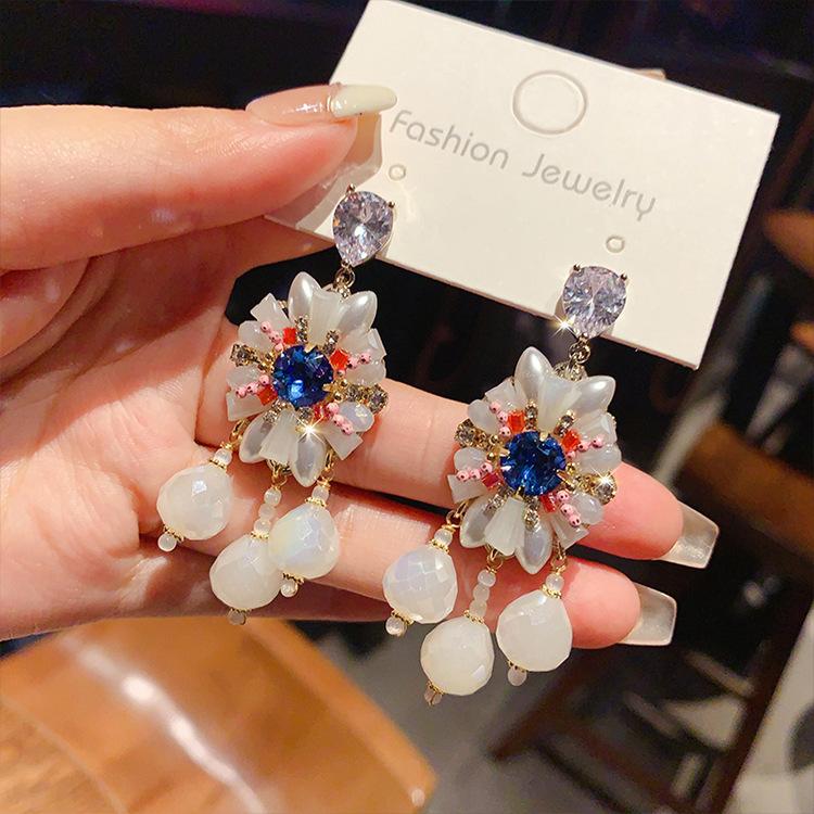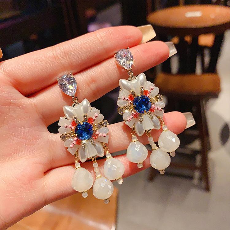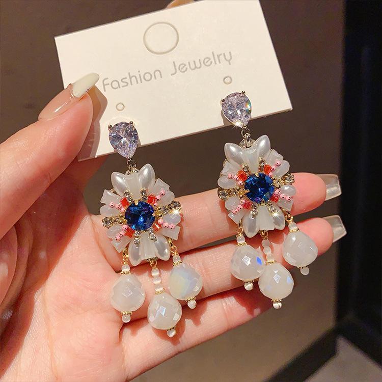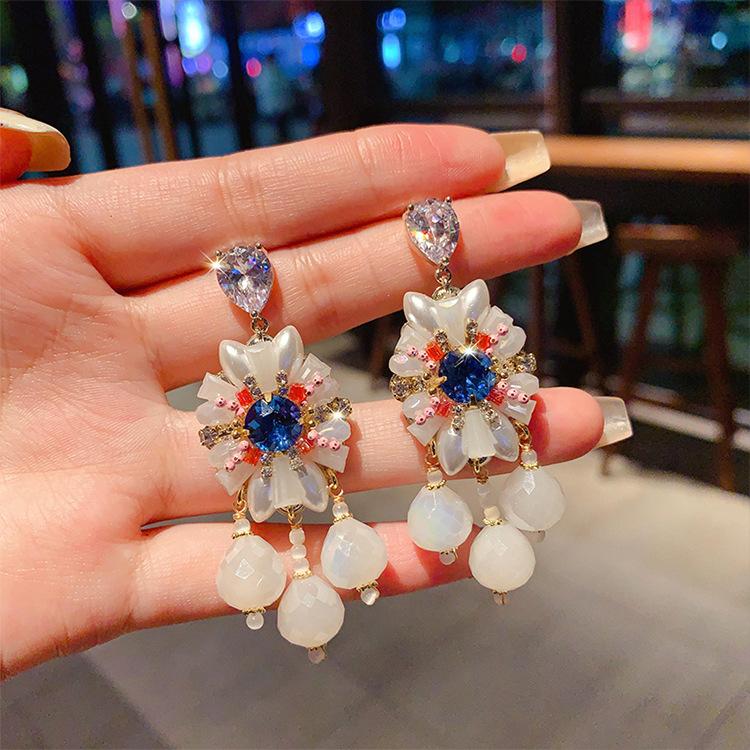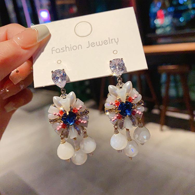 Pendientes de borla de cristal con diamantes de imitación Super Flash estilo palacio retro para mujer, estilo francés, ligeros, de lujo, de alta calidad, con temperamento.