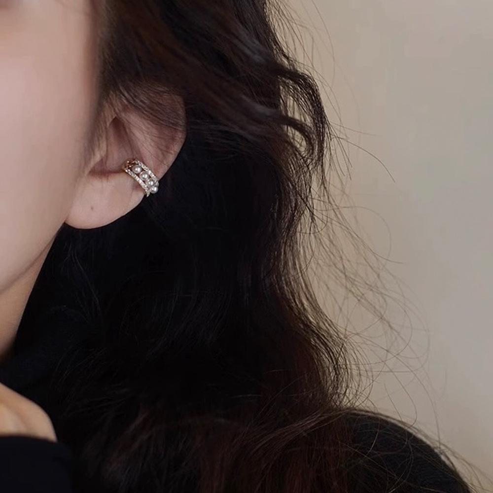 Aretes de Perlas Nicho de Alta Gama Clip para la Oreja Sin Agujero Diseño Nicho Exquisitos Pequeños Clips para la Oreja Aretes Vintage Franceses