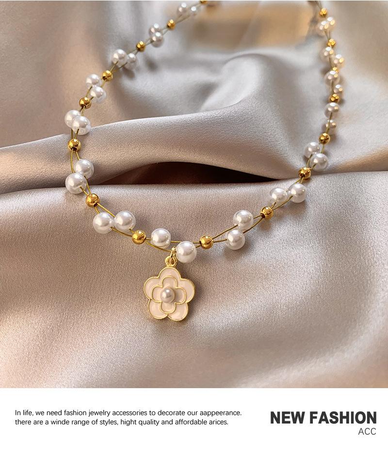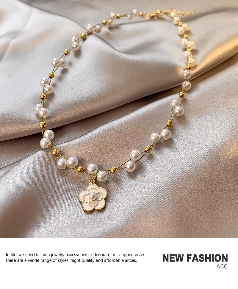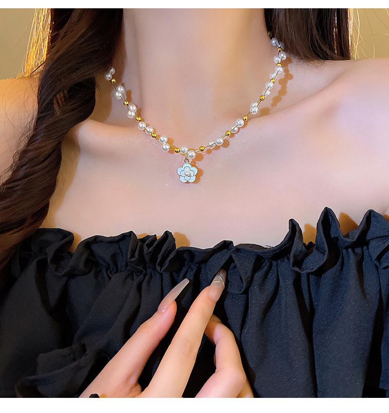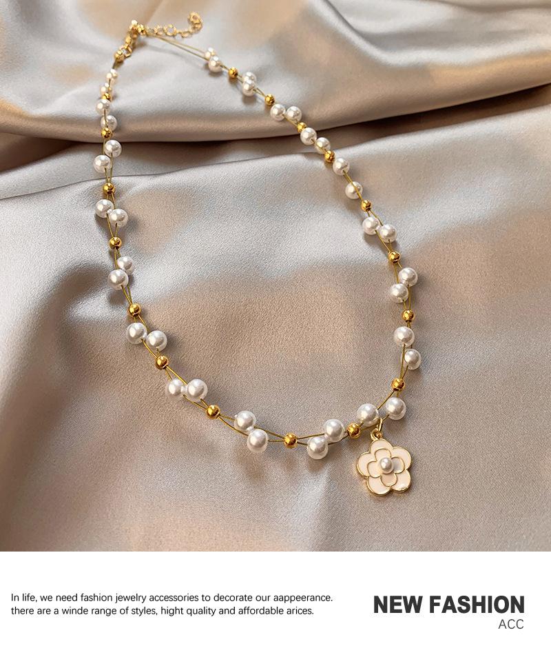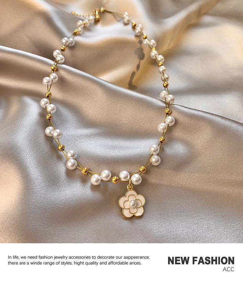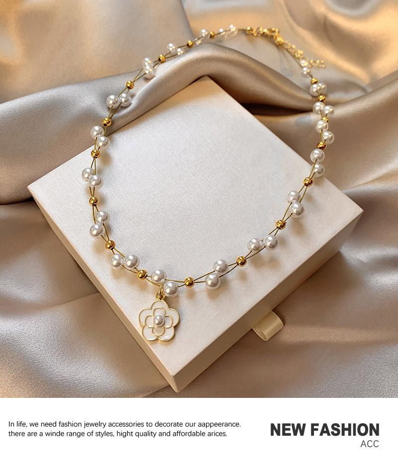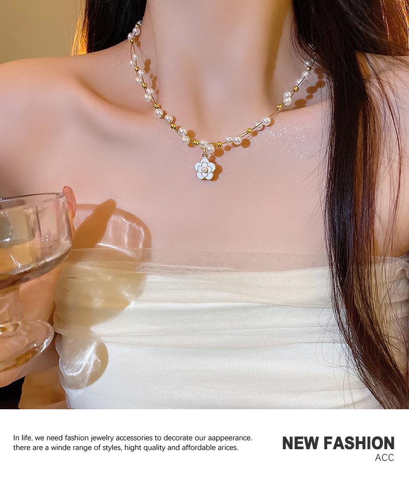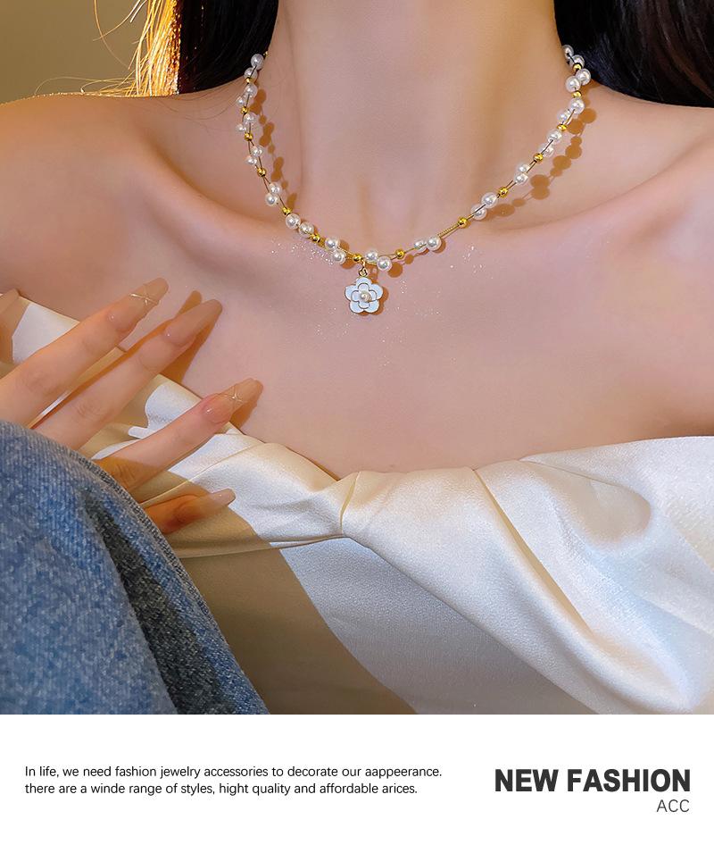 Collar elegante de perlas de camelia de estilo francés para mujer, cadena de clavícula de lujo ligera y de alta gama, nuevo collar de moda 2024