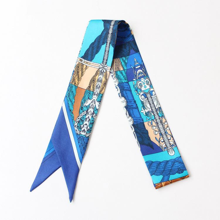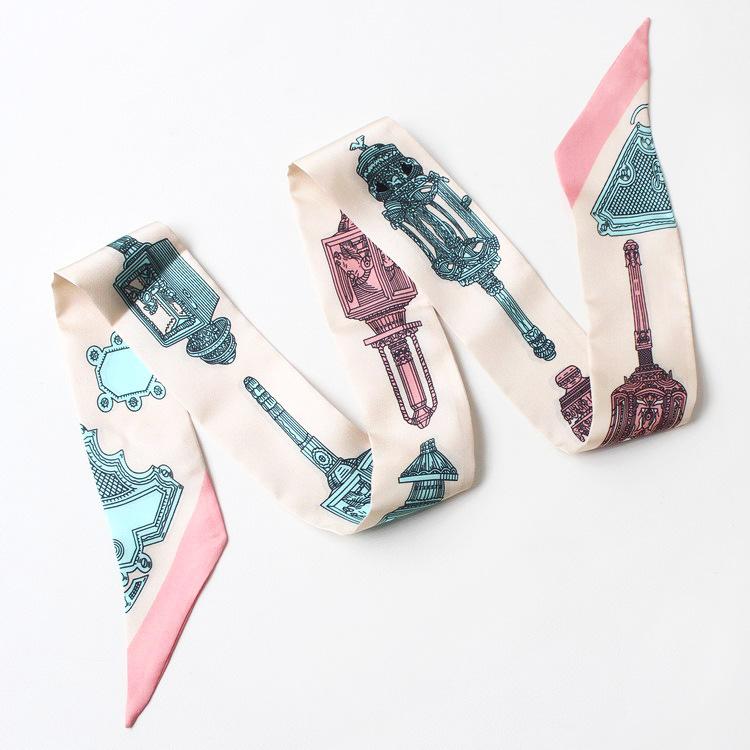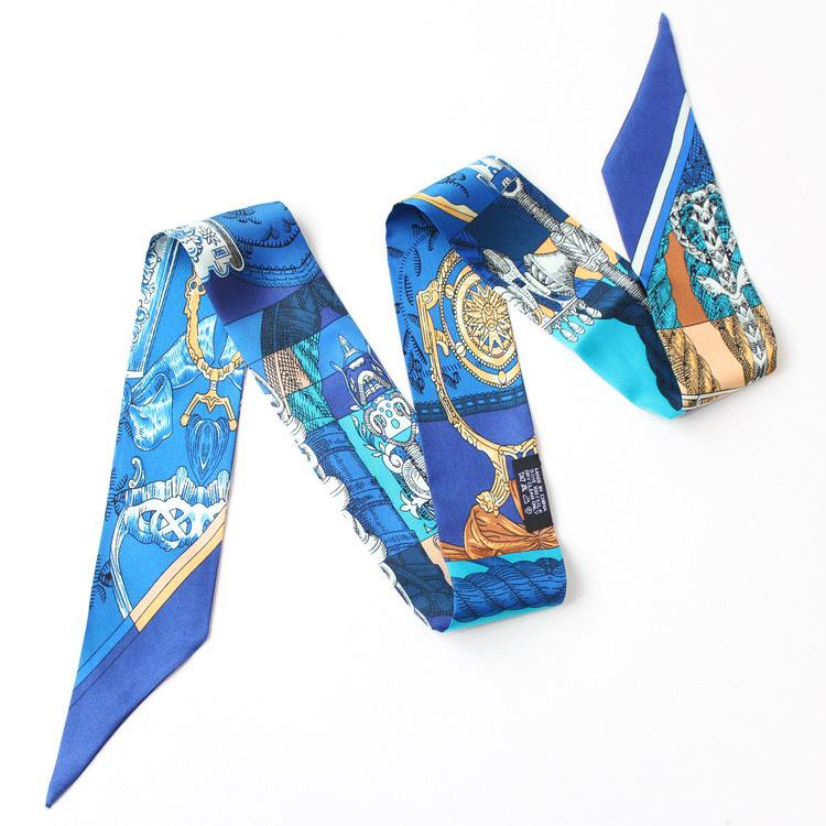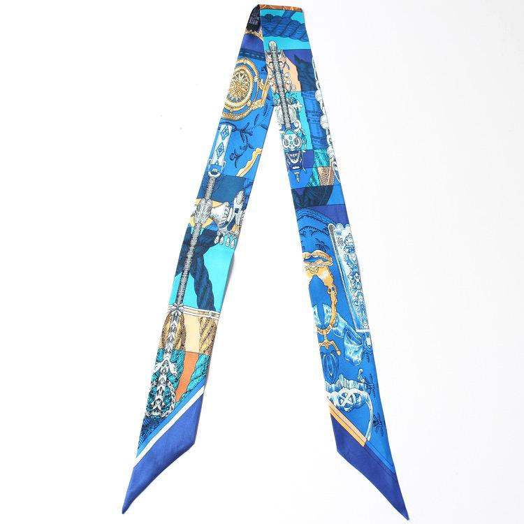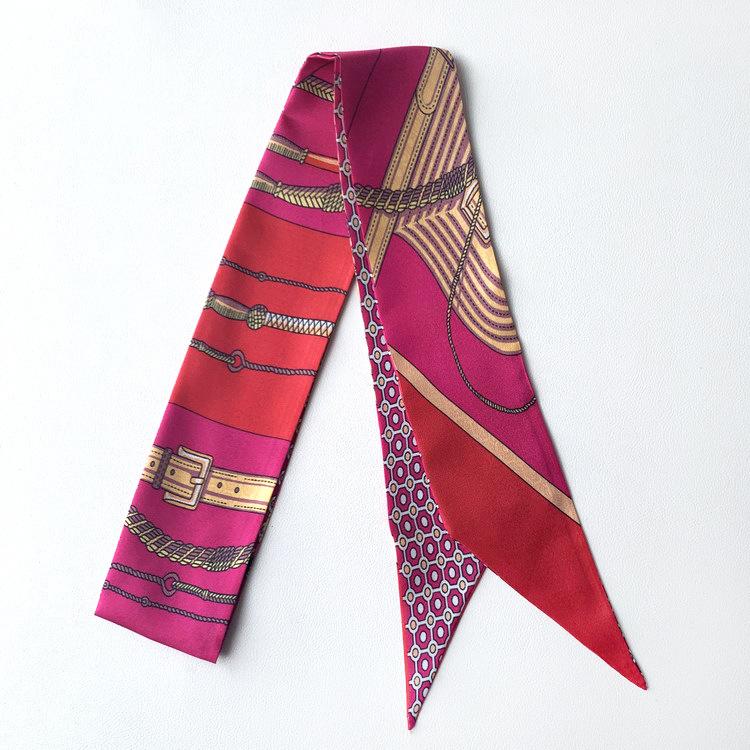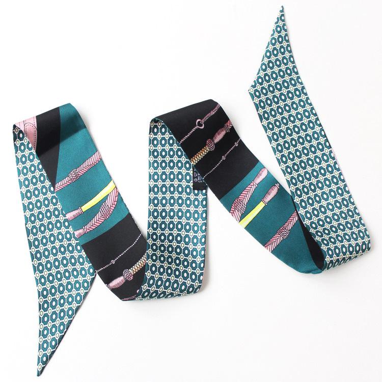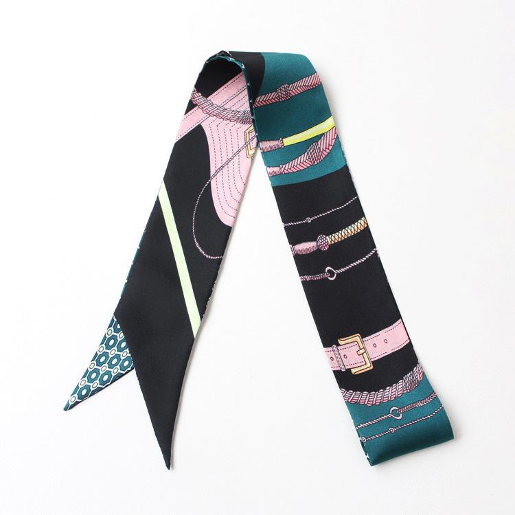 Nueva serie de patrones clásicos europeos y americanos, bolso de primavera y verano, asa de corbata, bufanda larga de seda, bufanda pequeña decorativa, cinturón de cinta para mujer