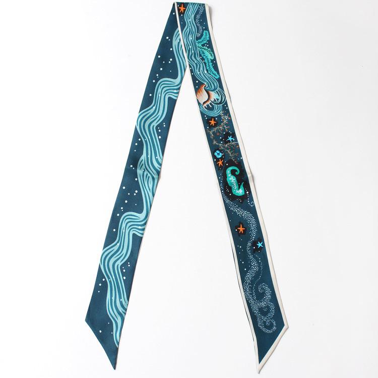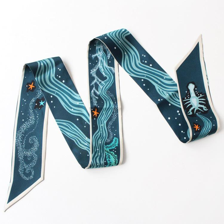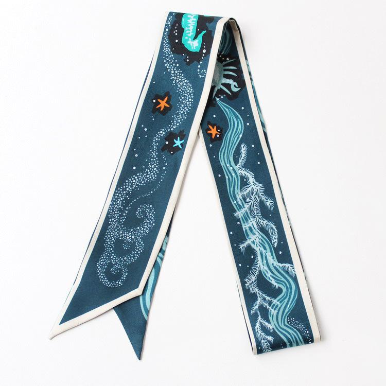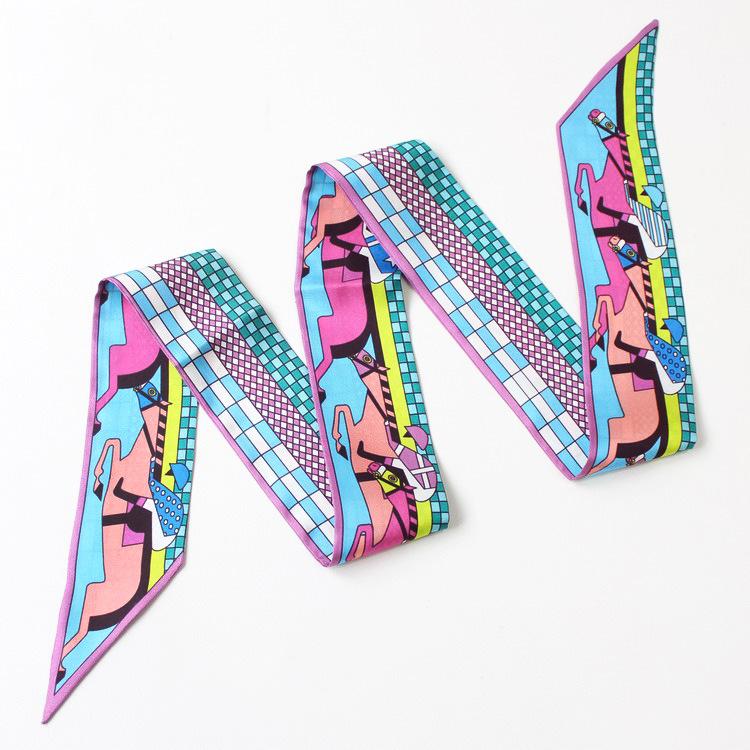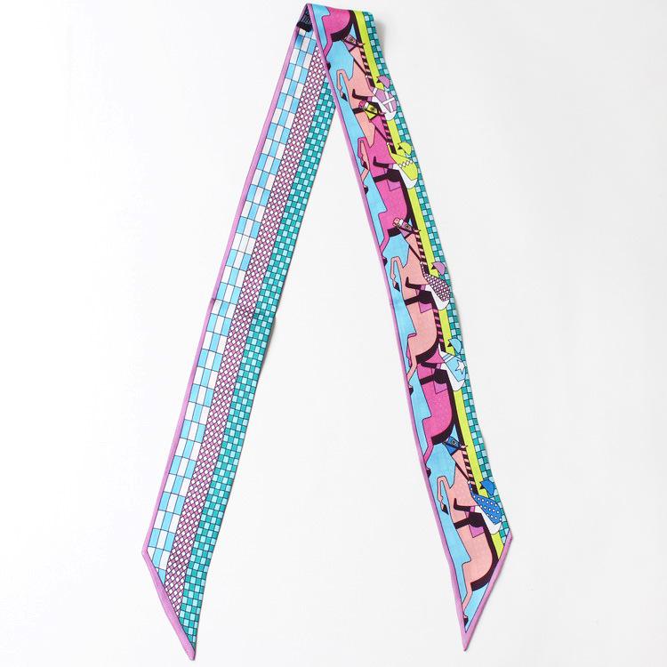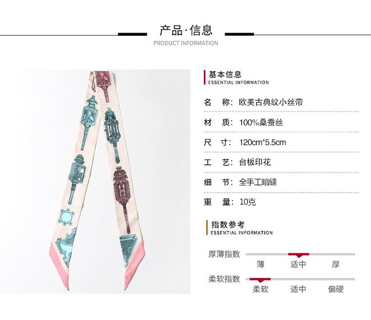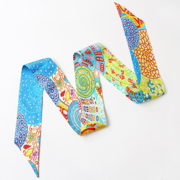 Nueva serie de patrones clásicos europeos y americanos, bolso de primavera y verano, asa de corbata, bufanda larga de seda, bufanda pequeña decorativa, cinturón de cinta para mujer