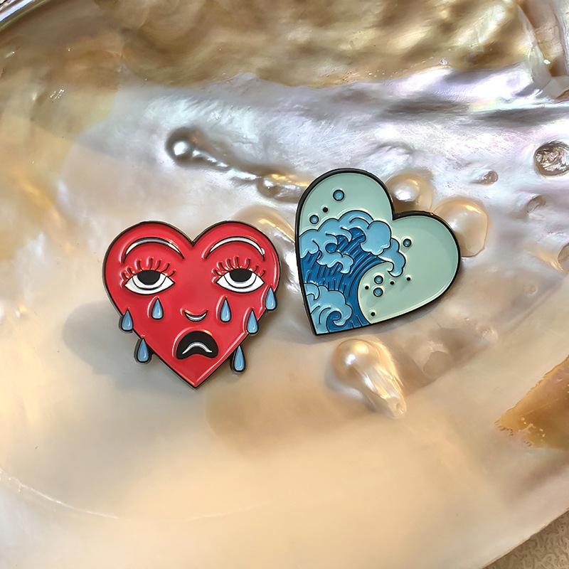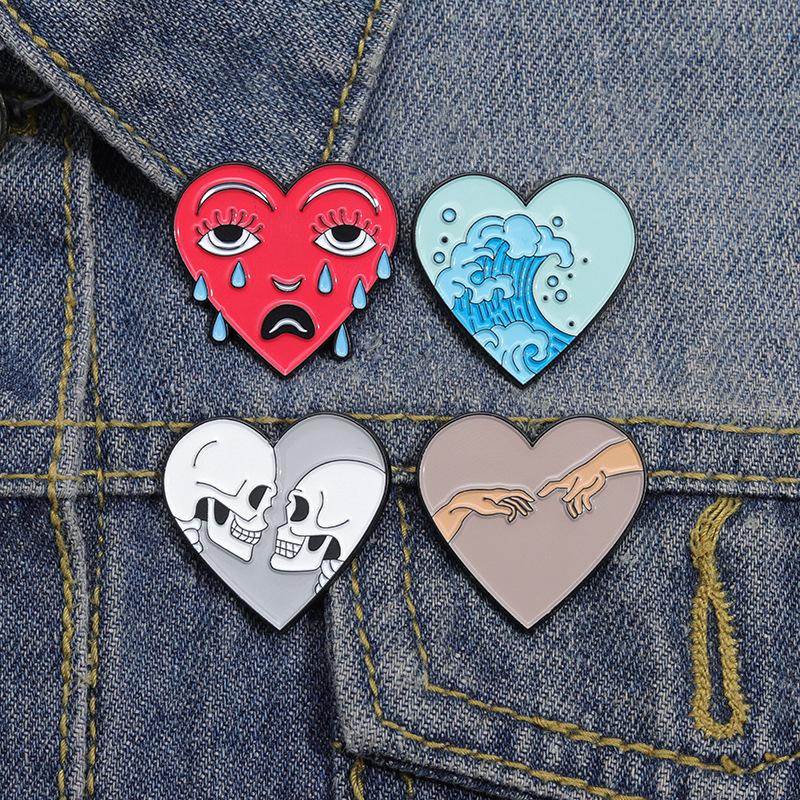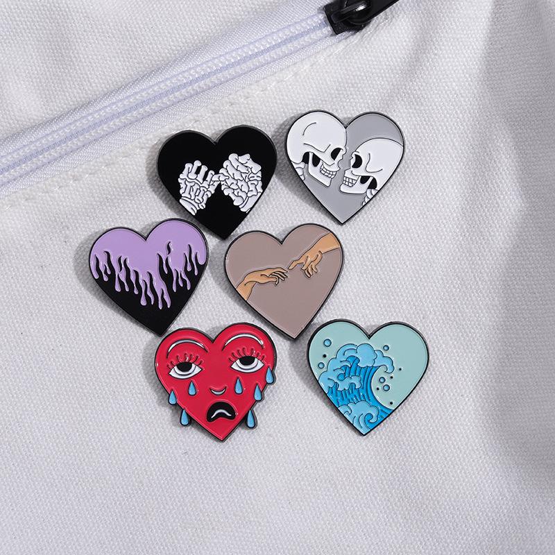 Insignia de Imagen de Amor Creativa Nueva Transfronteriza Dibujos Animados Llamas Olas Calavera Diseño Nicho Broche de Metal