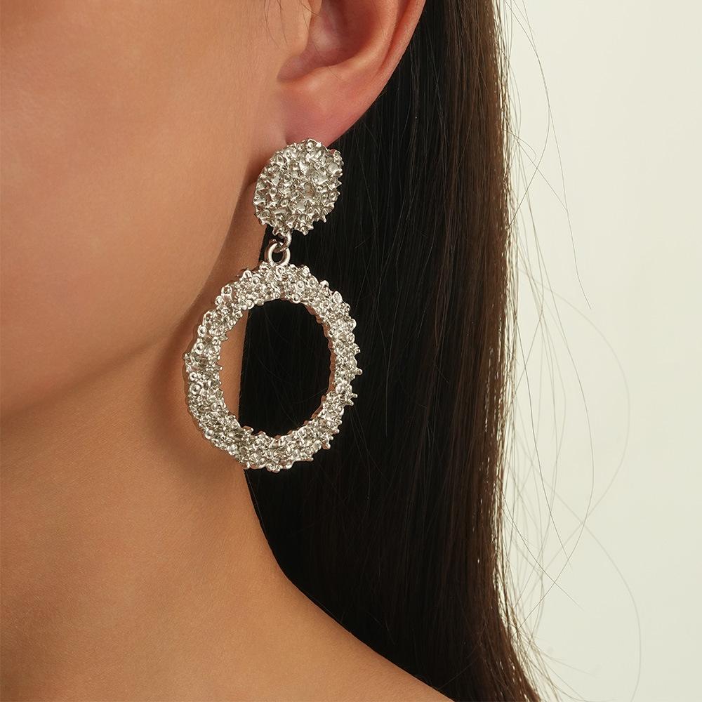 Pendientes grandes con personalidad europea y americana, de moda, exagerados, de oro, de gran círculo, no lisos, al por mayor
