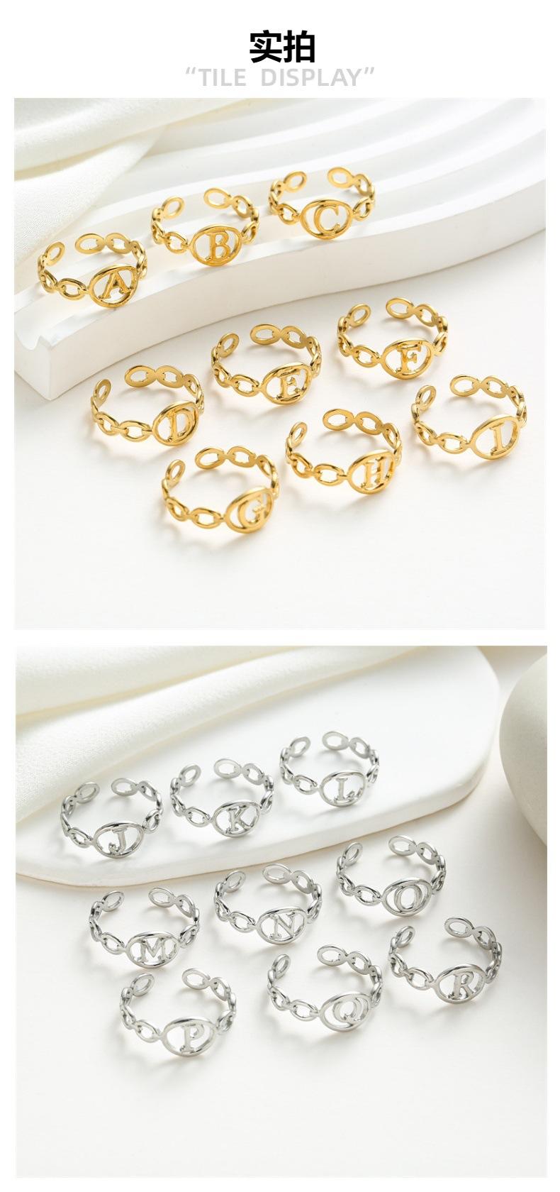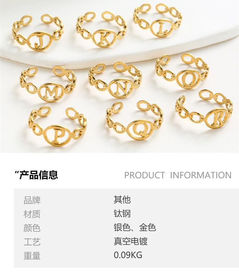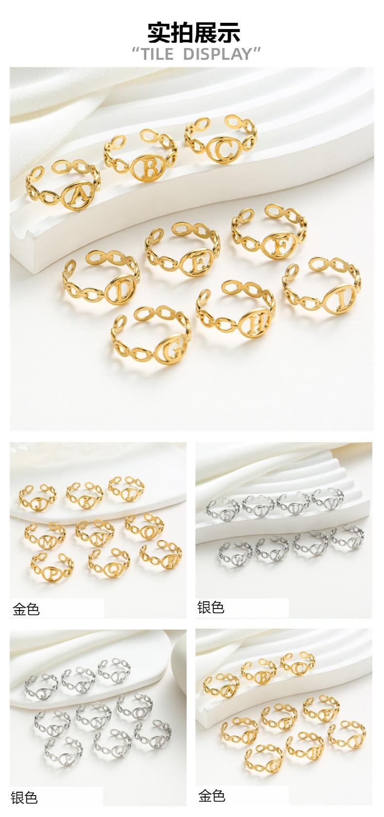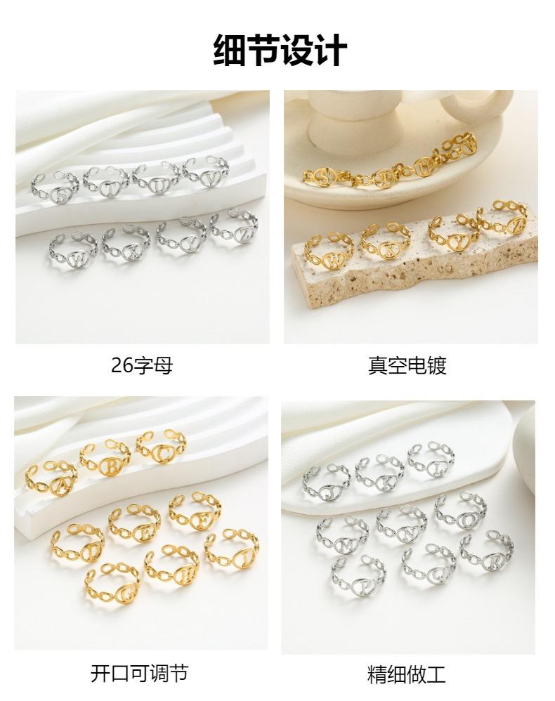 Anillo de acero inoxidable de titanio de 18 quilates con 26 letras en inglés, estilo transfronterizo europeo y americano, con apertura ajustable para mujer.