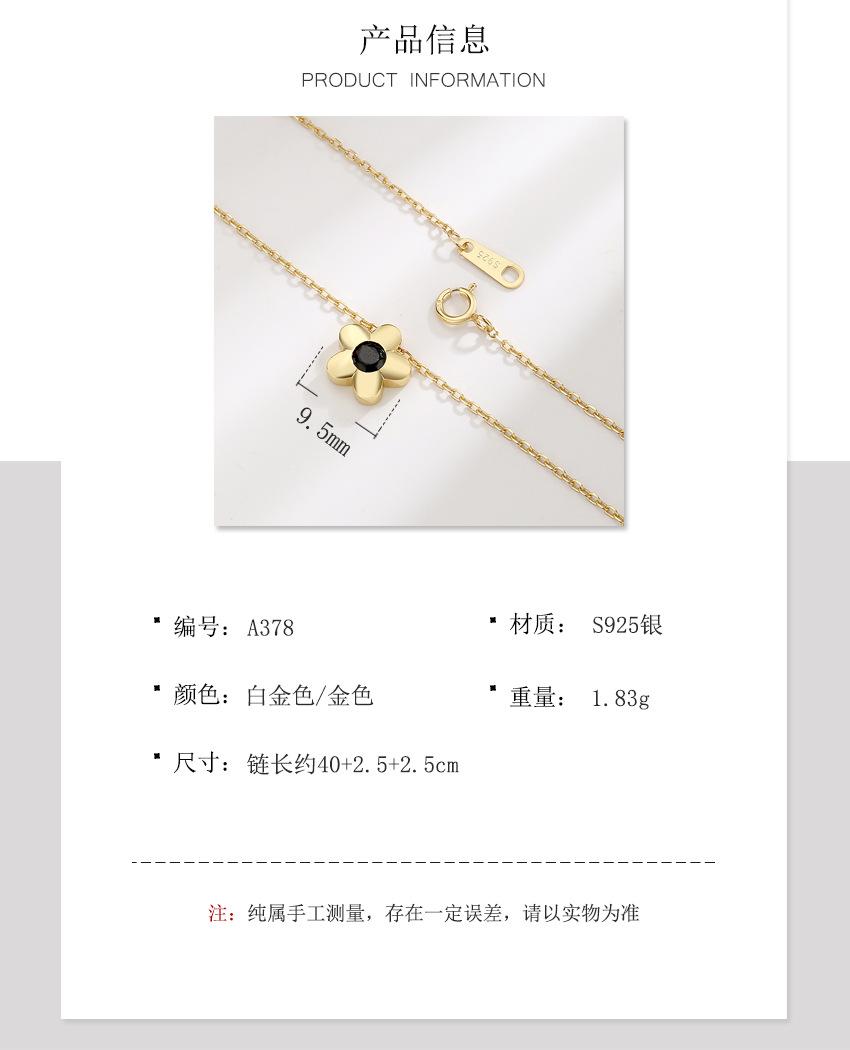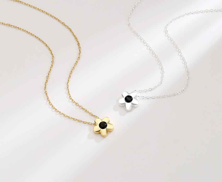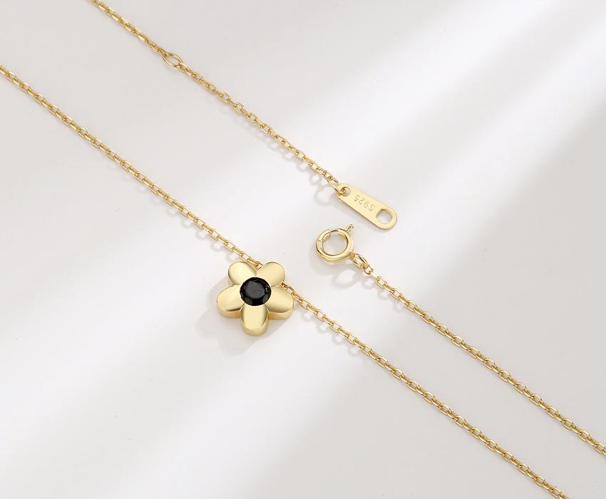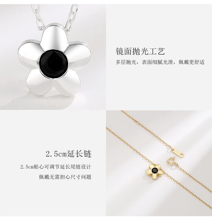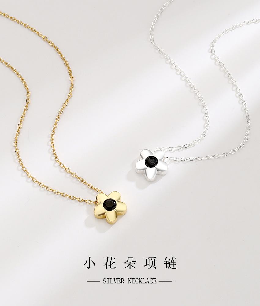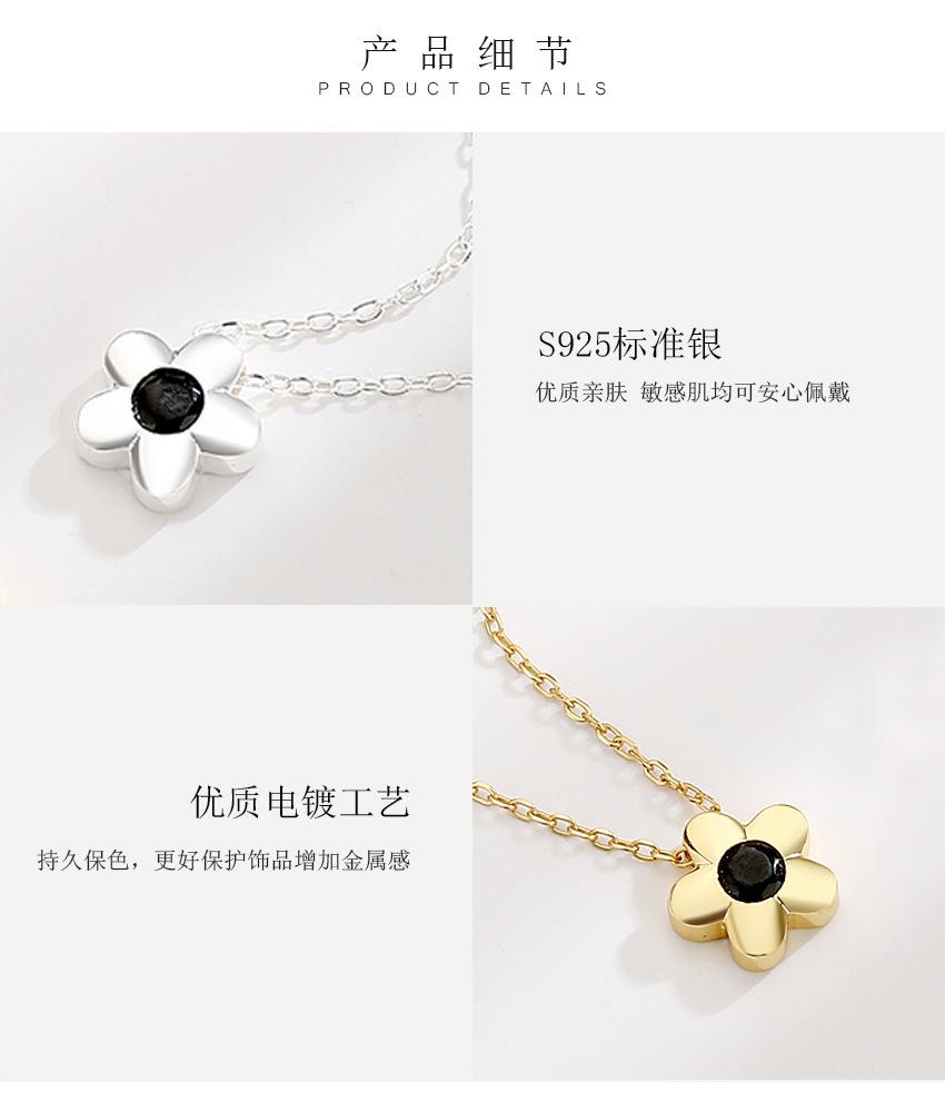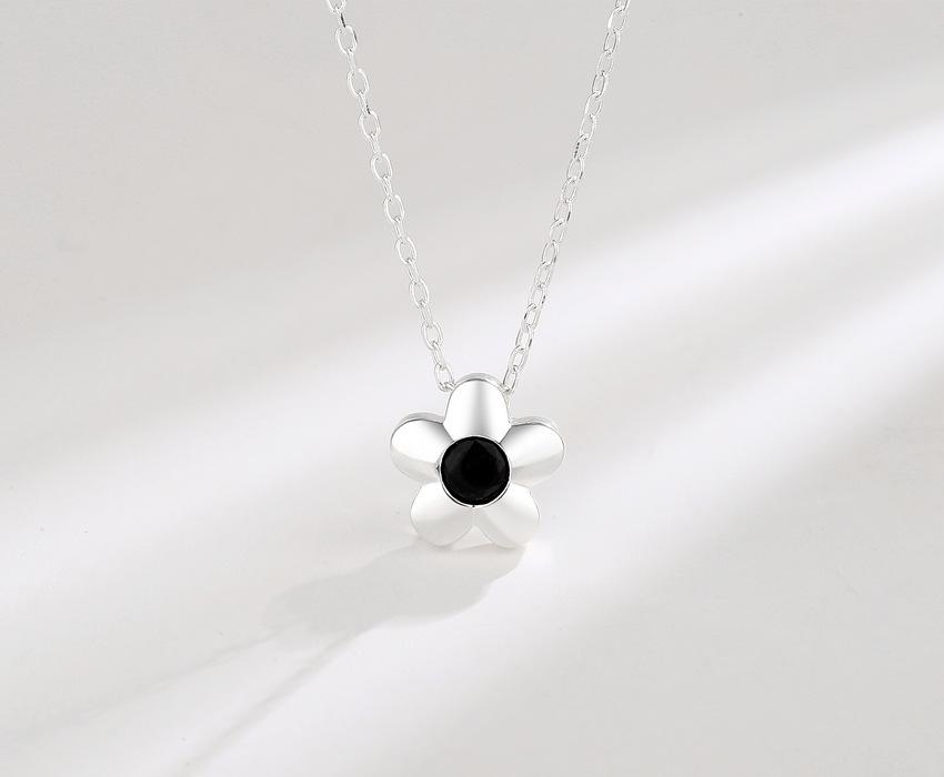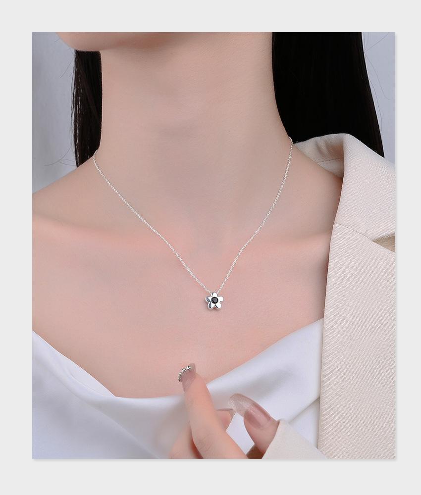 Collar de flor de diamante simple negro de plata esterlina S925 para mujer, estilo elegante, cadena de clavícula para niña, dulce y fresco collar de flor de cinco pétalos
