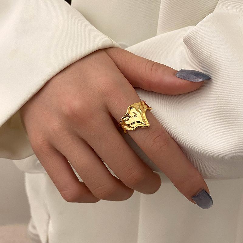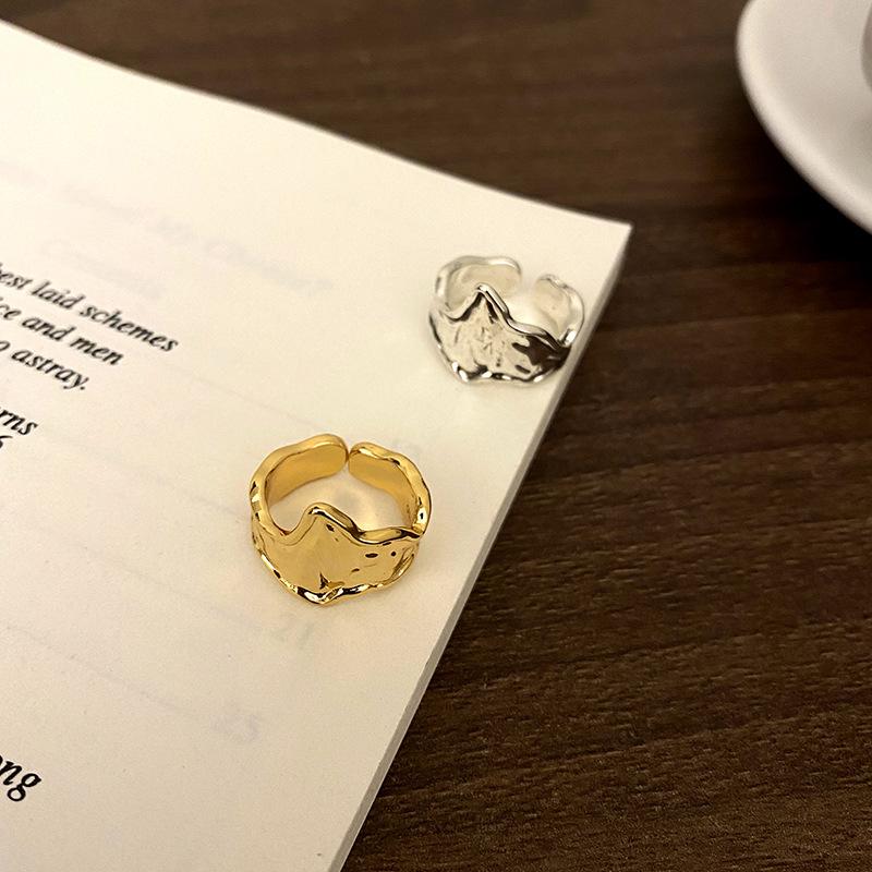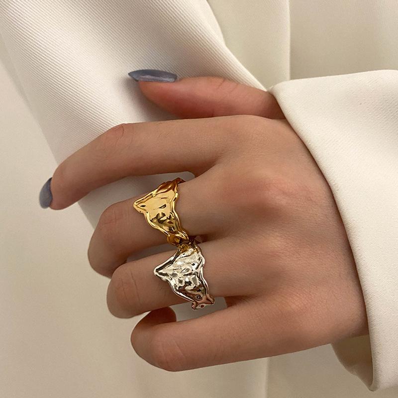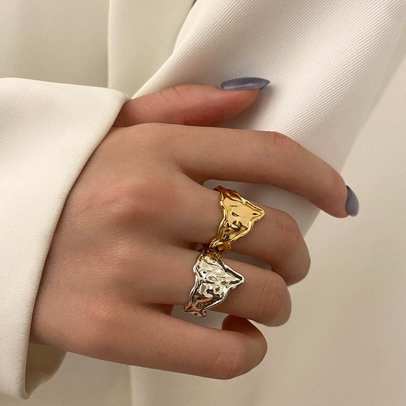 Compra Anillo abierto de estilo europeo y americano con textura de metal simple y temperamento irregular para chicas. al por mayor en Joom.pro