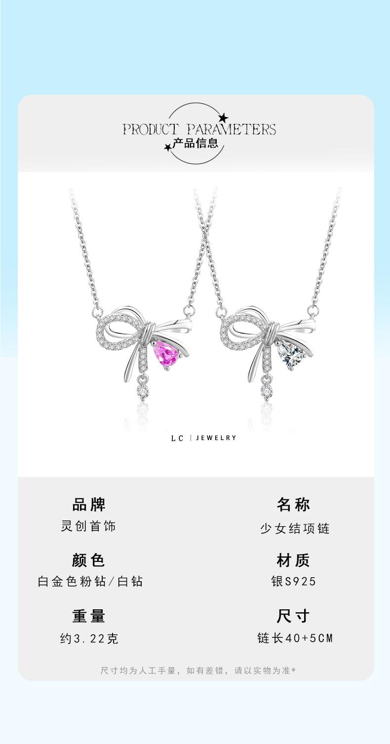 XL0142 girl knot necklace (white stone), XL0142 girl knot necklace (pink stone)