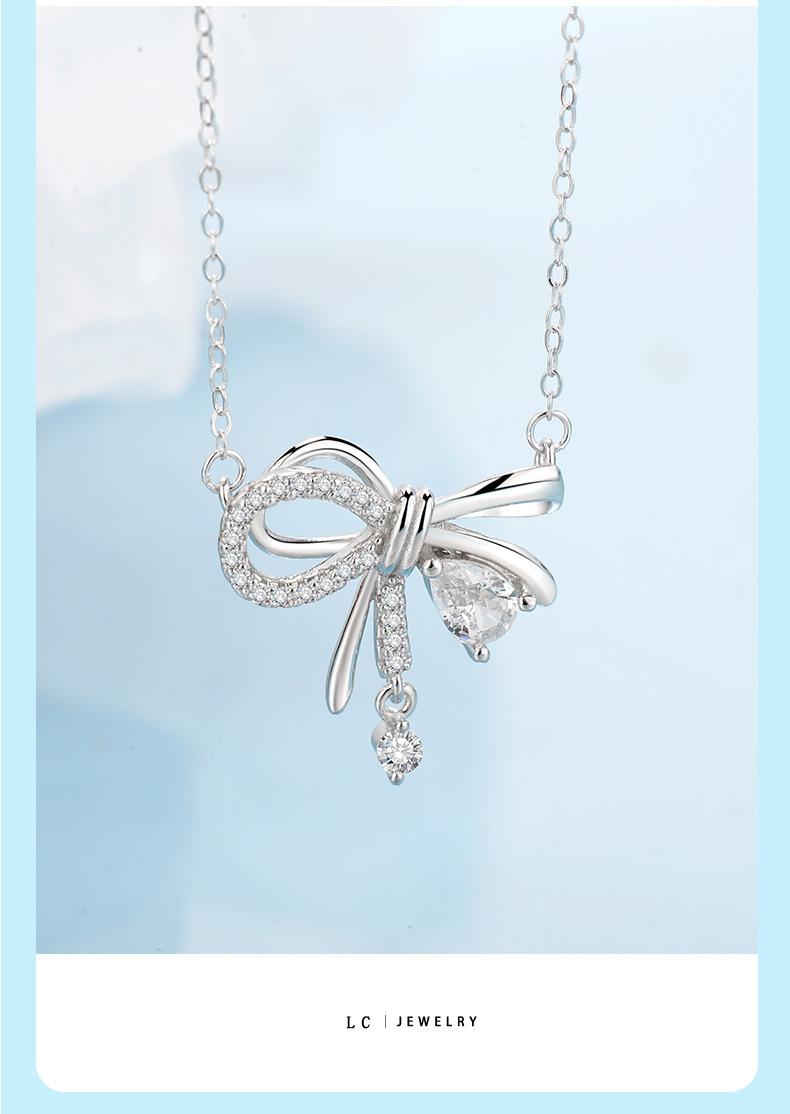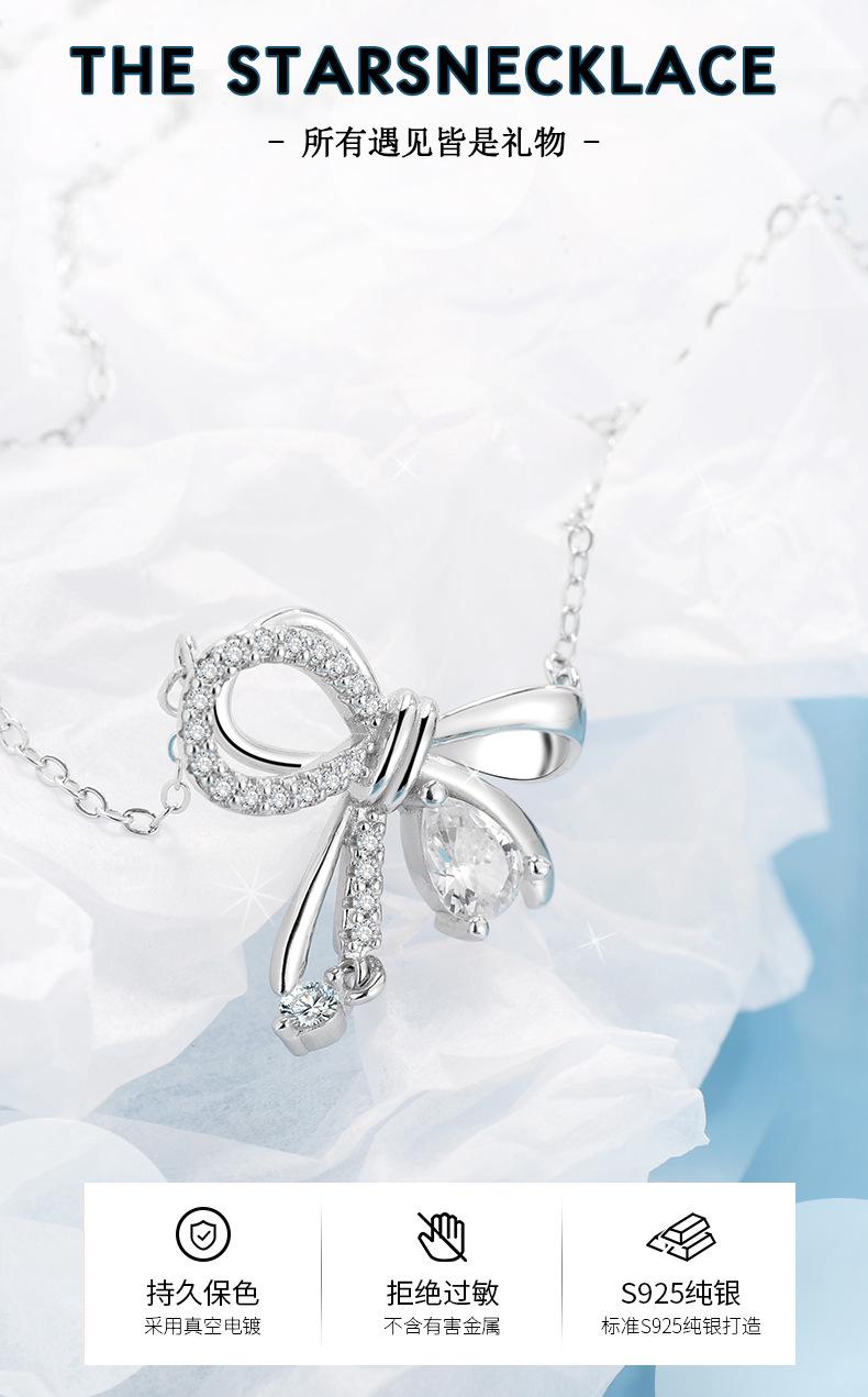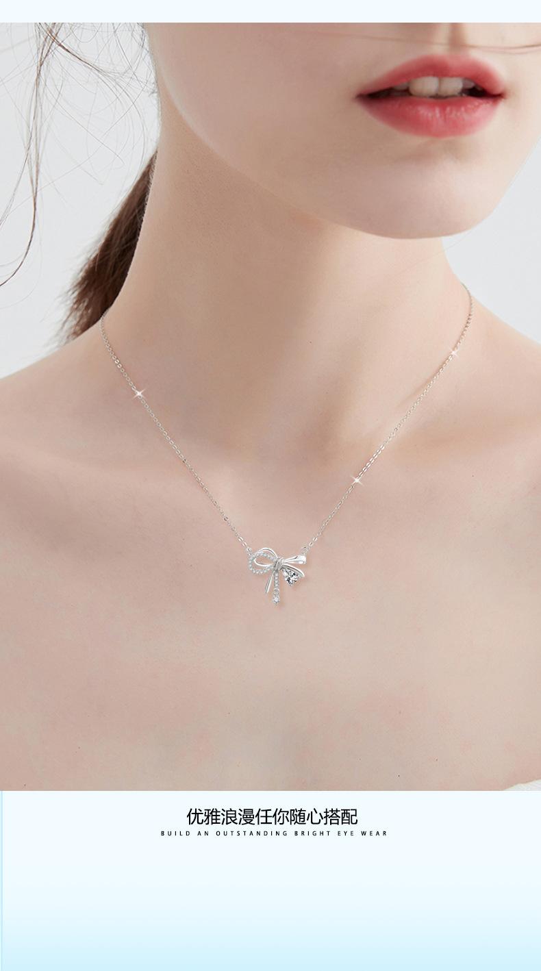 Collar de nudo para niña de plata esterlina S925, para mujer, combina con todo, moda al por mayor, diseño de nicho simple, ligero y de lujo, cadena de clavícula con lazo