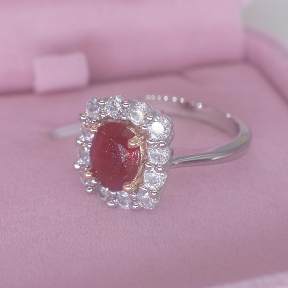 Joyería de gran venta en Europa y América, anillo noble de rubí, comercio electrónico transfronterizo, suministro de joyas de plata al por mayor.
