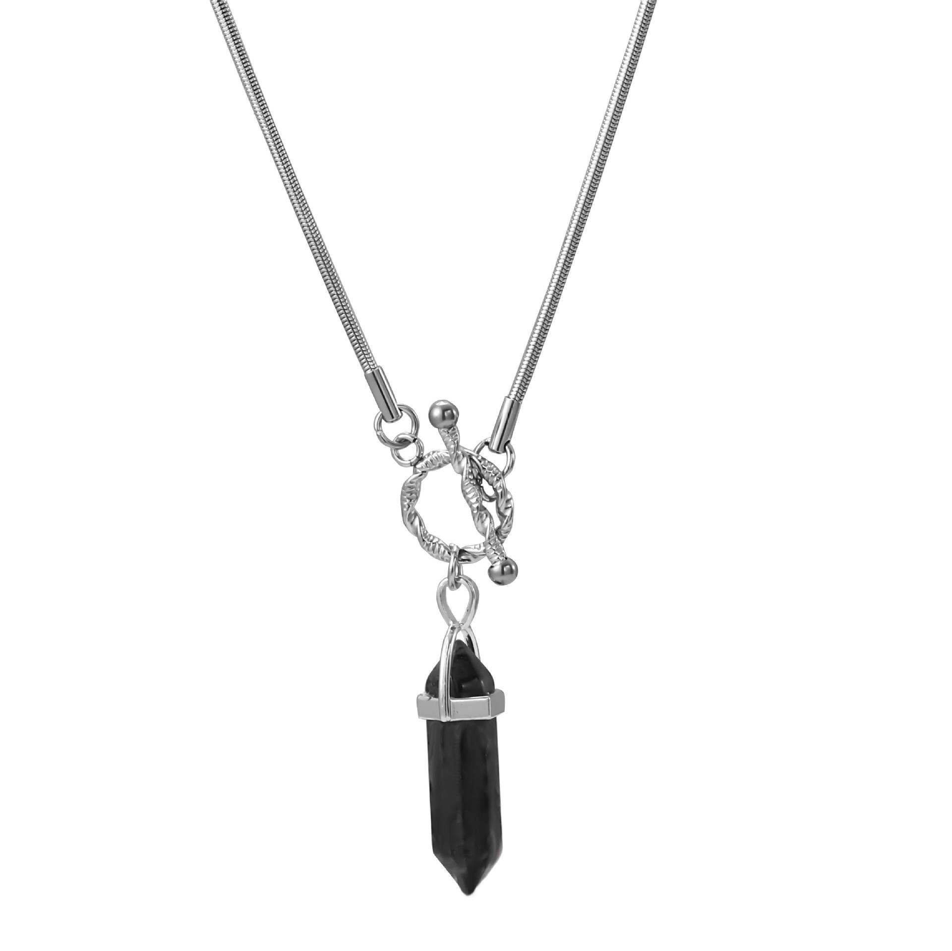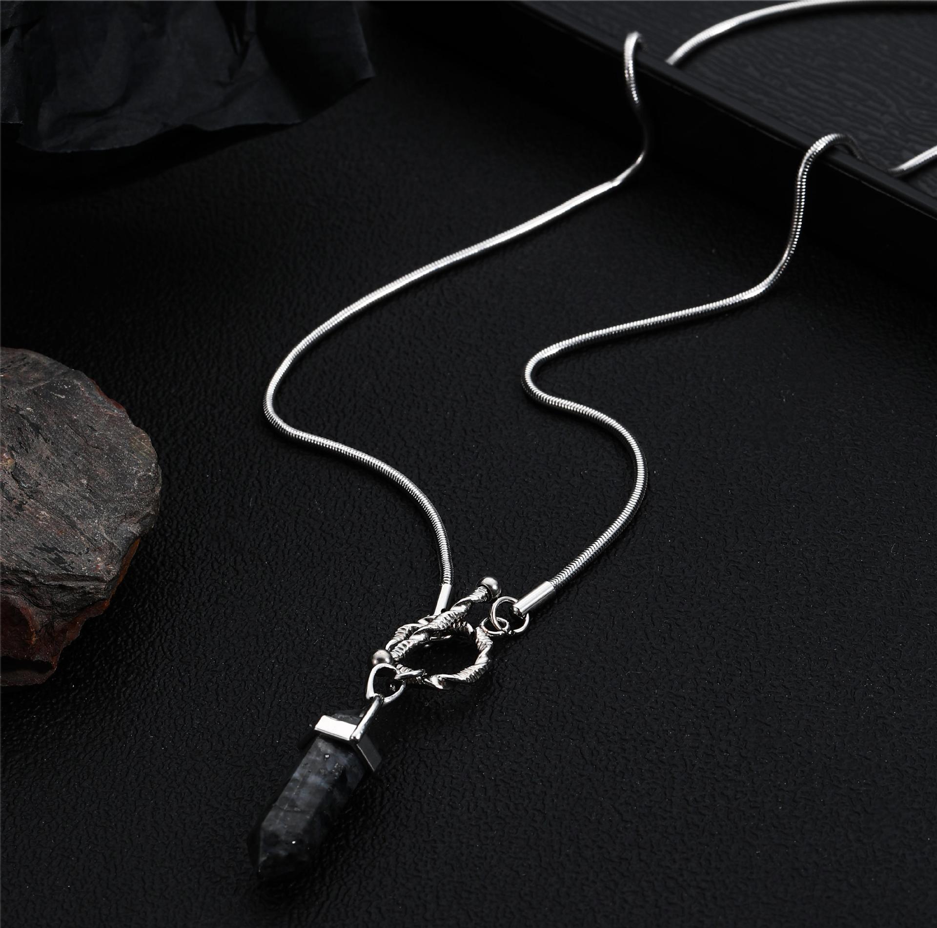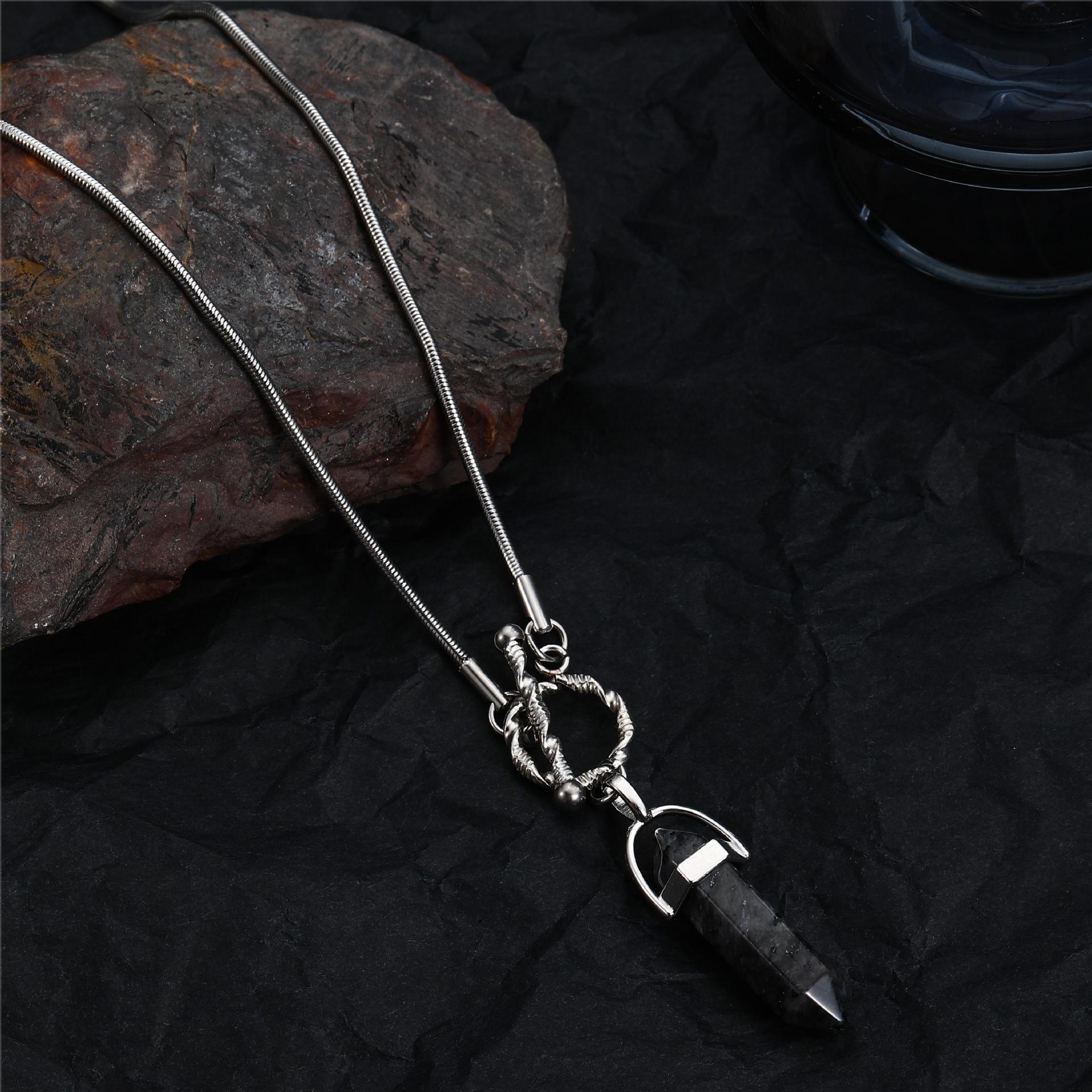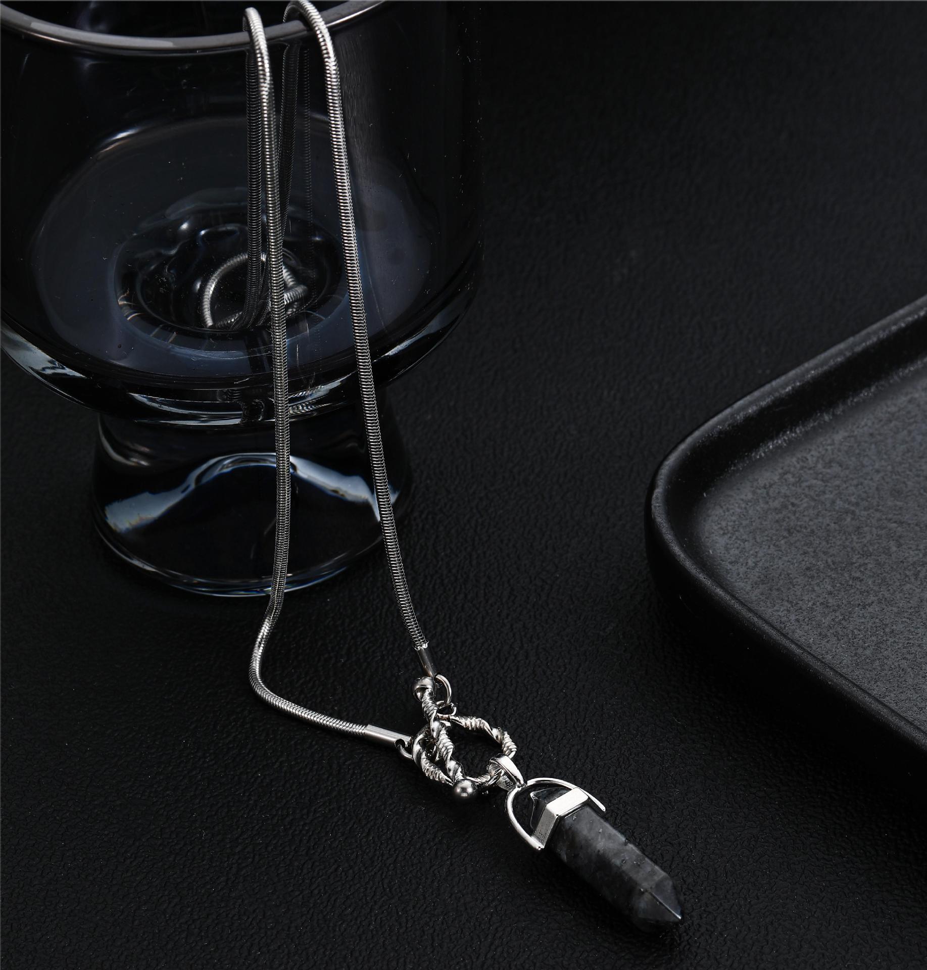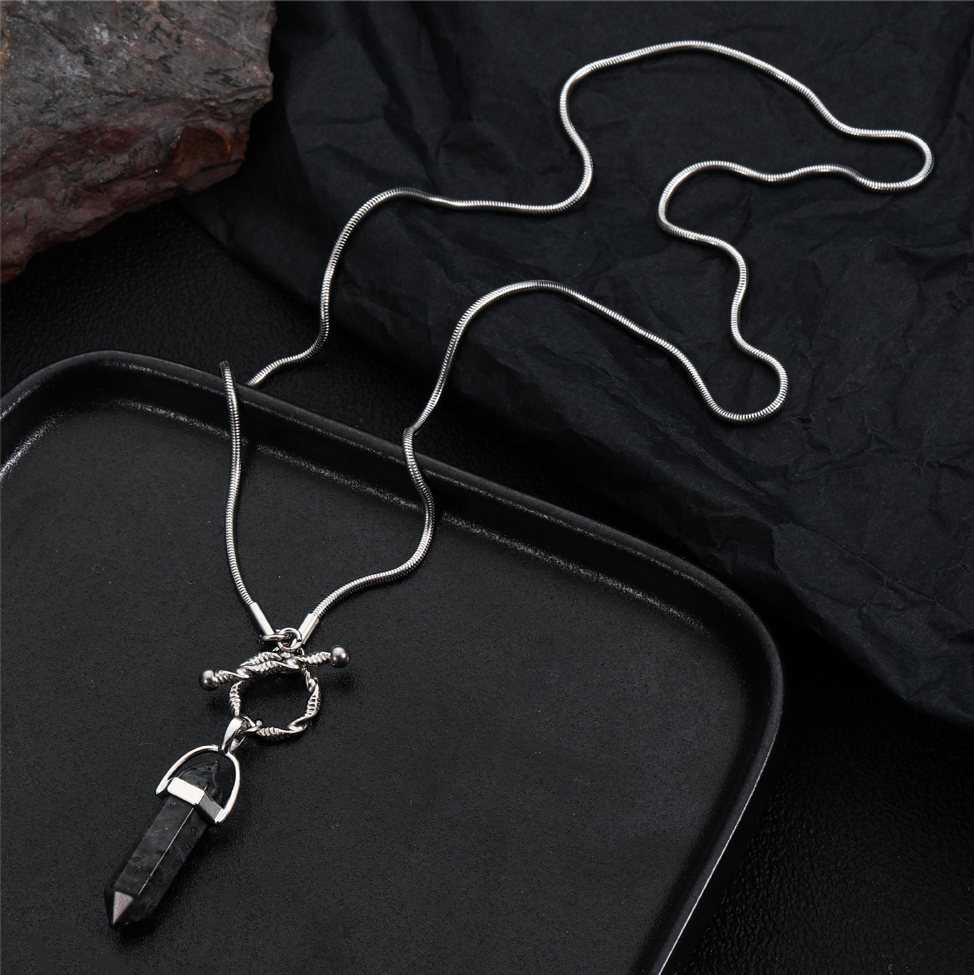Collar de acero de titanio [seis columnas de roca] Diseño de moda versátil Colgante hexagonal Cadena de hueso de serpiente Collar Joyería Cadena de suéter para hombres